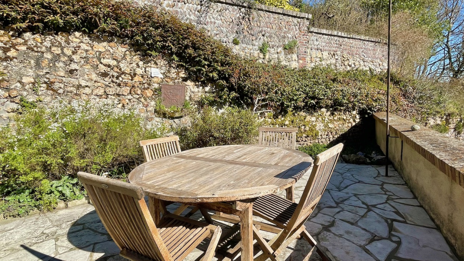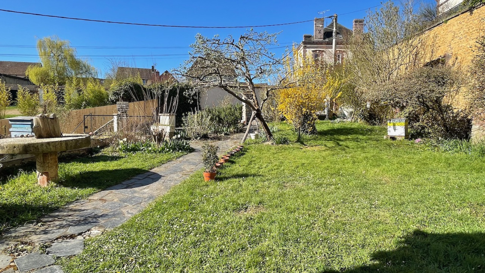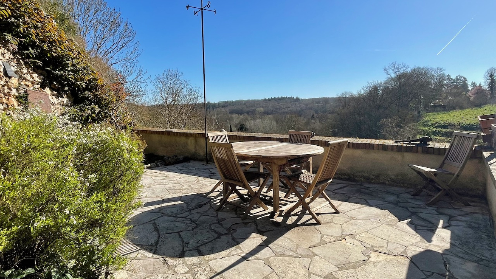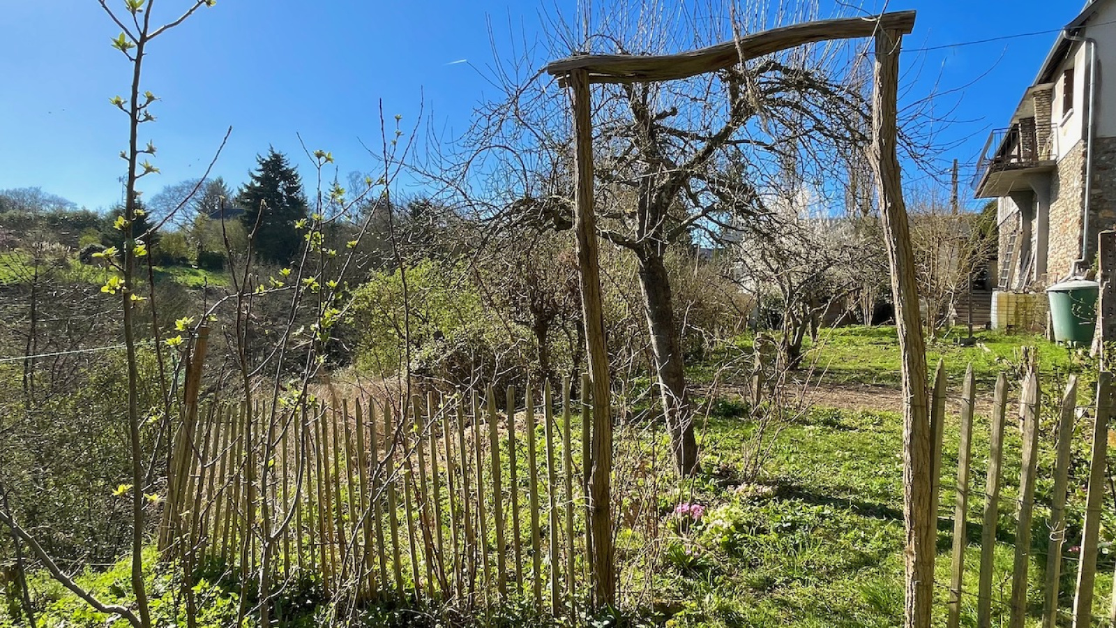 Le terrain sur 3 paliers, abrite une terrasse surplombant la vallée, une partie verger en contrebas et une partie jardin sur l'avant. Chauffage central gaz de ville et insert bois. Double vitrage PVC. Assainissement individuel. Tous commerces et gare à pied (axe PARIS St Lazare - CAEN).