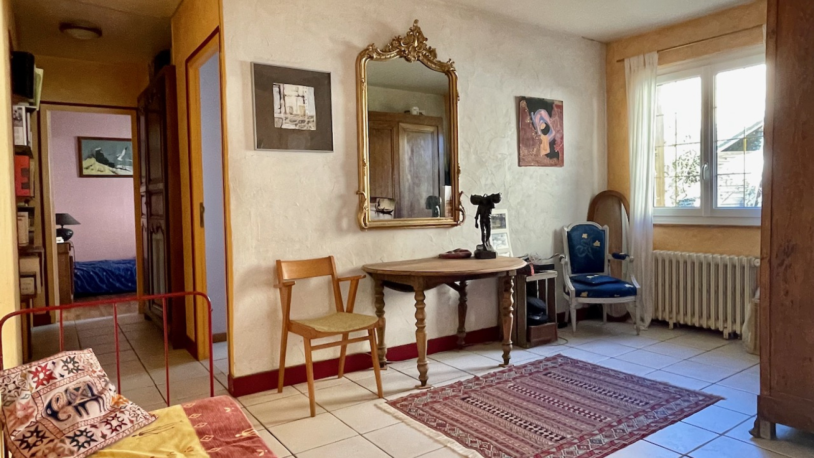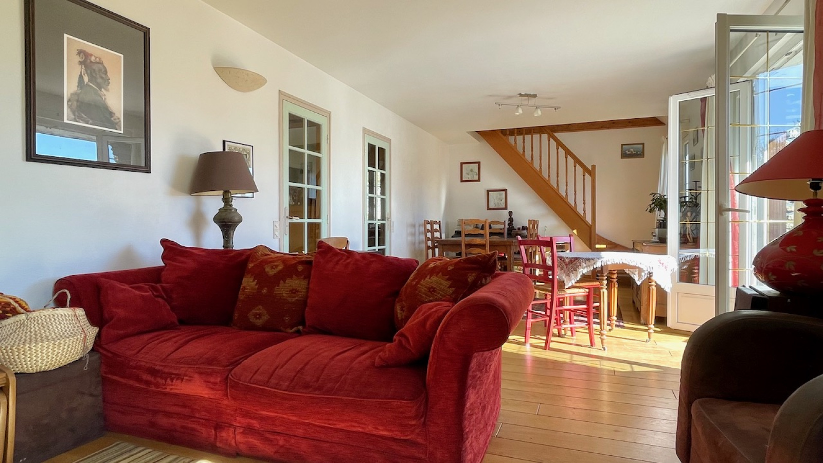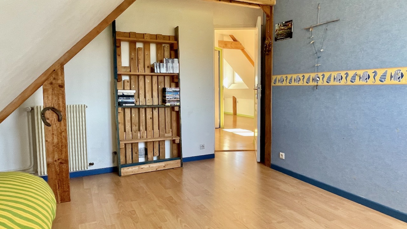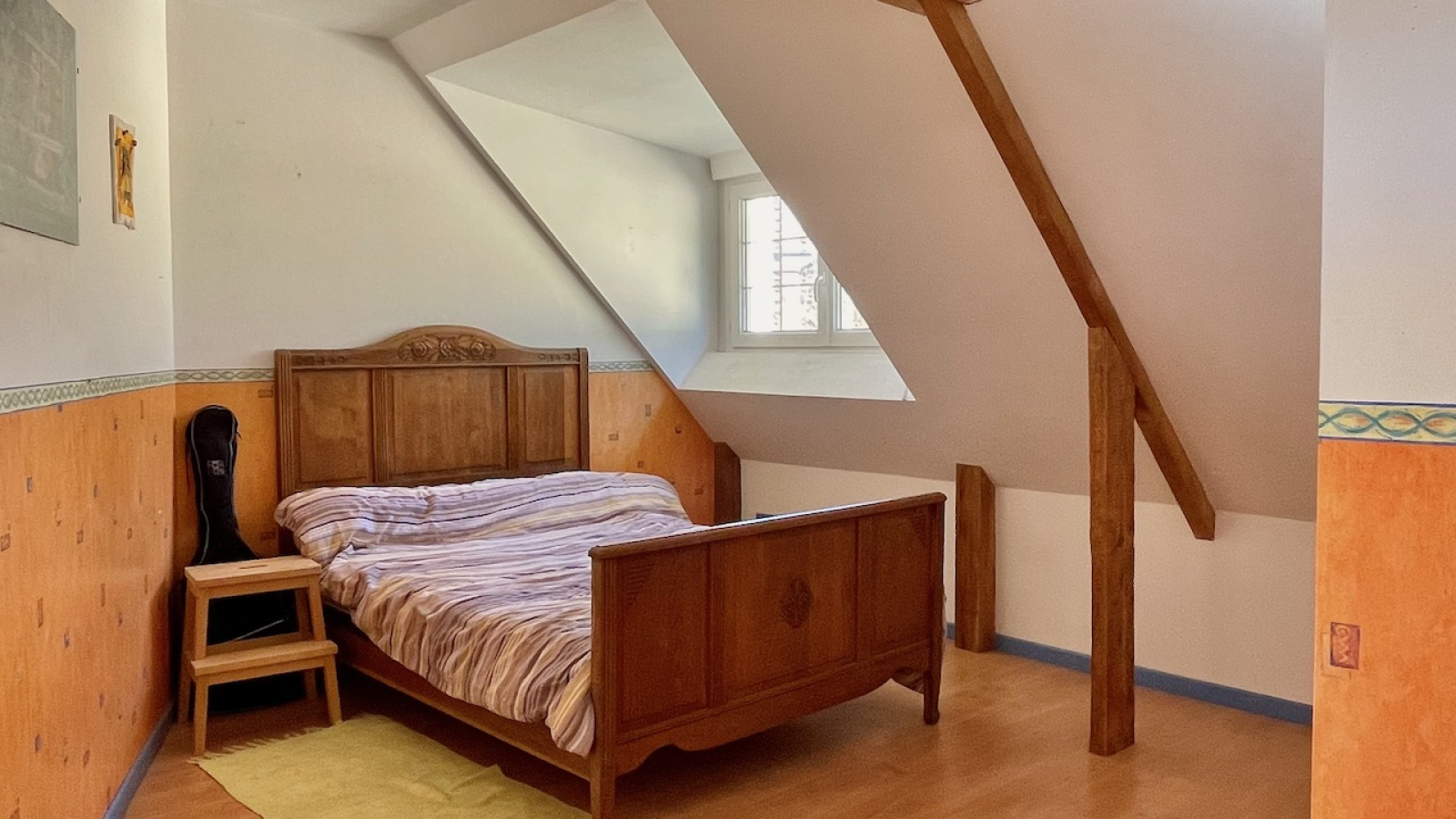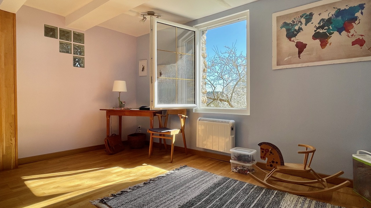 A l'étage, une vaste pièce palière dessert trois chambres et une salle d'eau avec WC.
