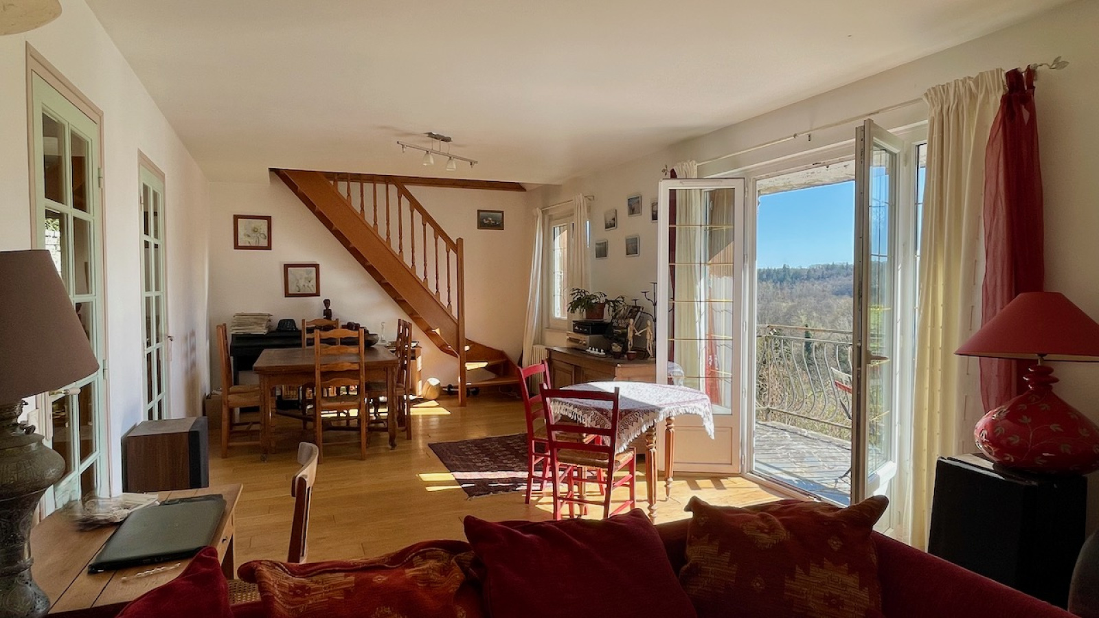 Vivable de plain pied, fonctionnelle et très lumineuse, la maison se compose au rdc d'une entrée distribuant une cuisine dinatoire avec arrière cuisine, une pièce de vie avec insert et un balcon exposé sud-est donnant sur la vallée, un couloir desservant deux belles chambres sur parquet et une salle de bains avec douche, baignoire et WC séparé.