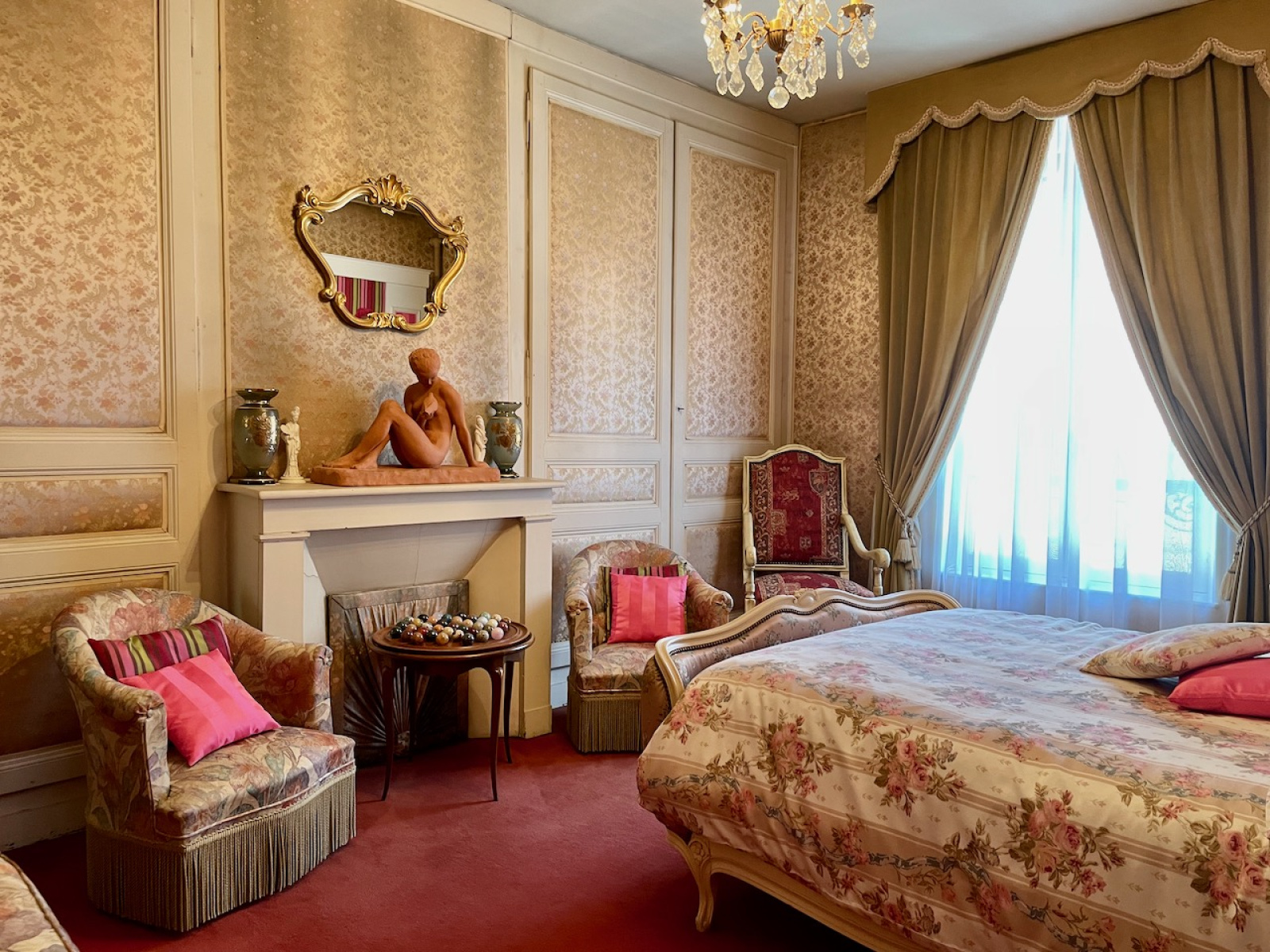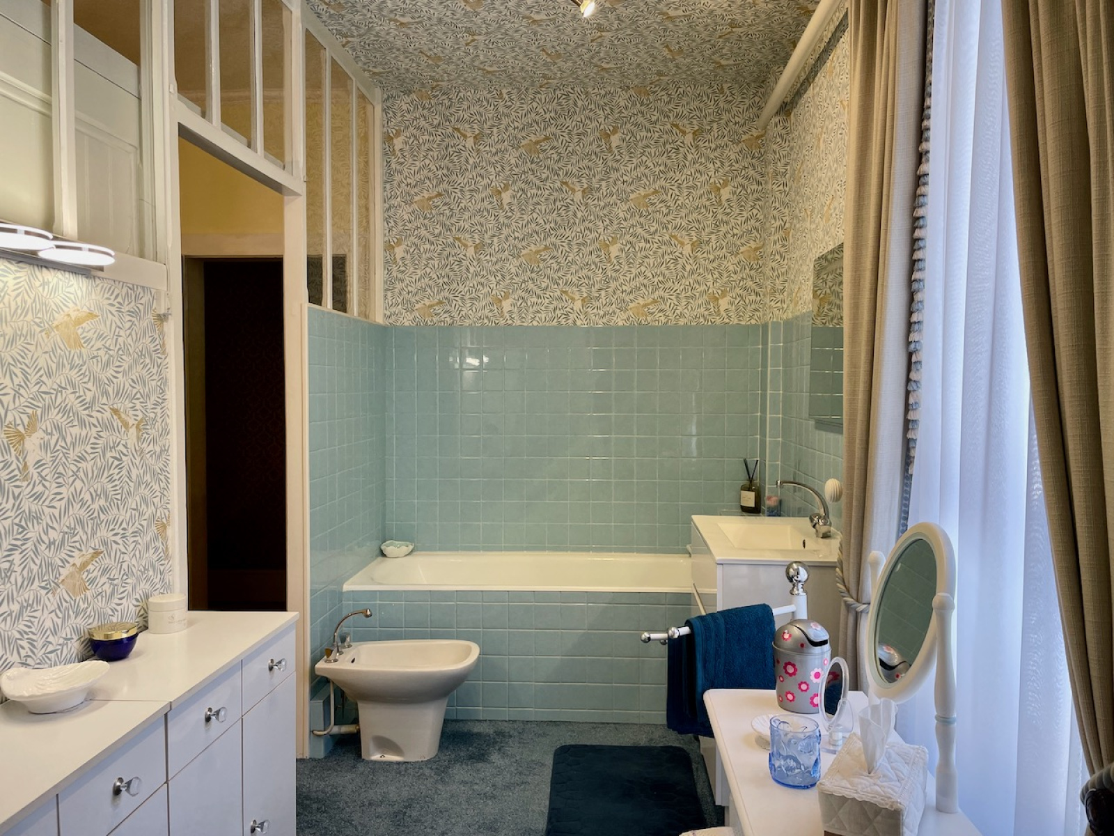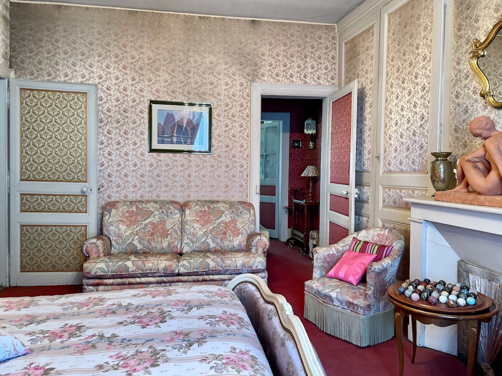 La partie habitation présente une surface d'environ 170 m2. Elle se compose d'un patio vitré donnant sur la cour et desservant cuisine et salon. A l'étage : 5 chambres avec boiseries et parquet, une salle de bains, un bureau, wc.