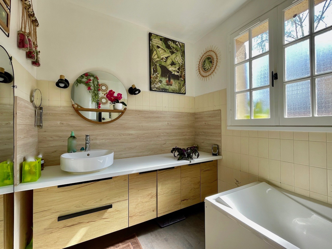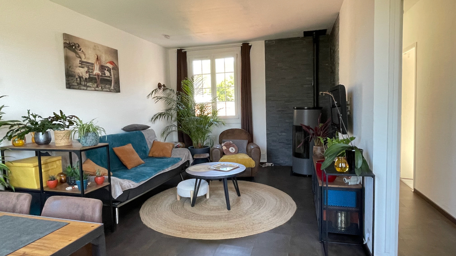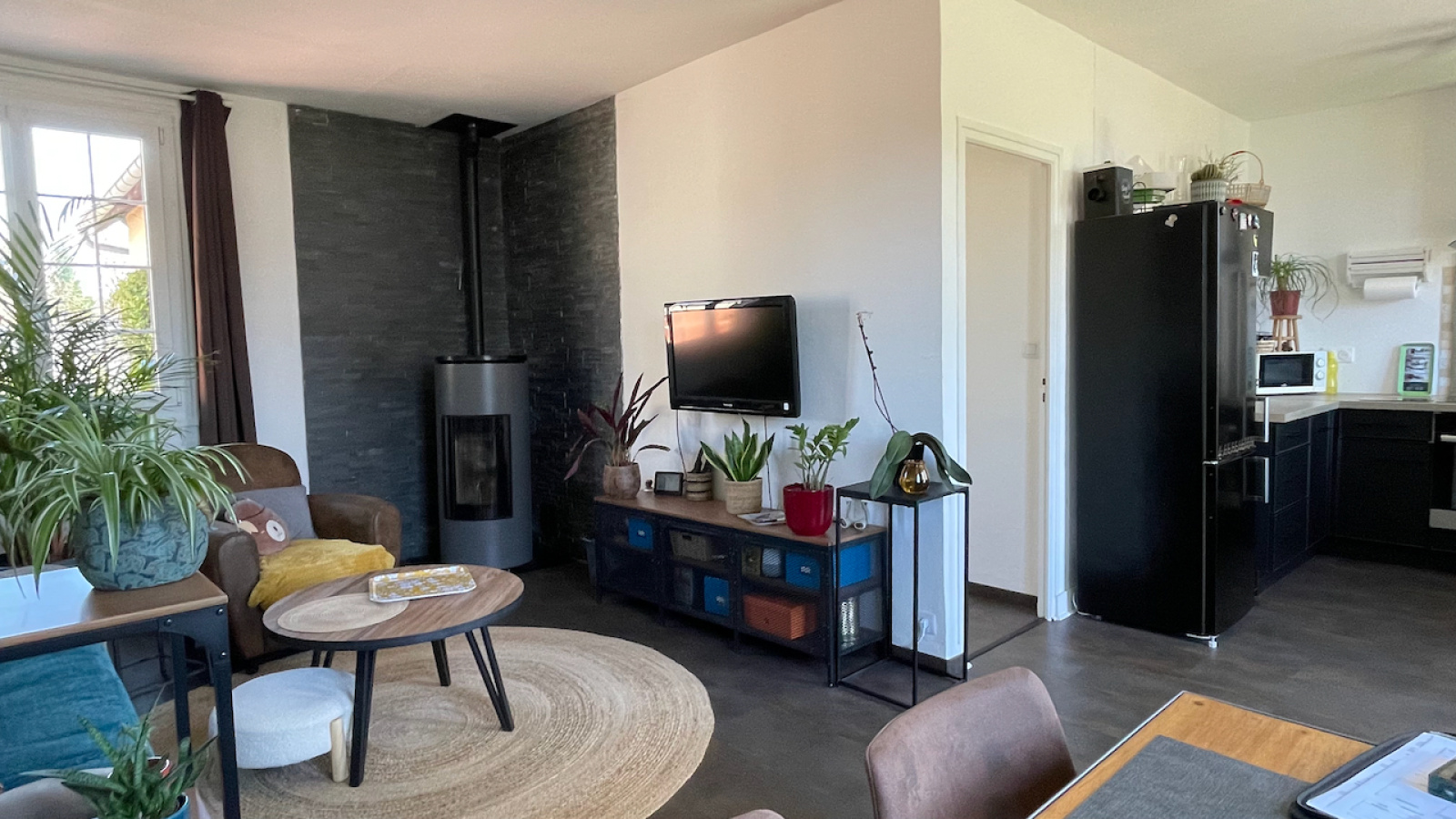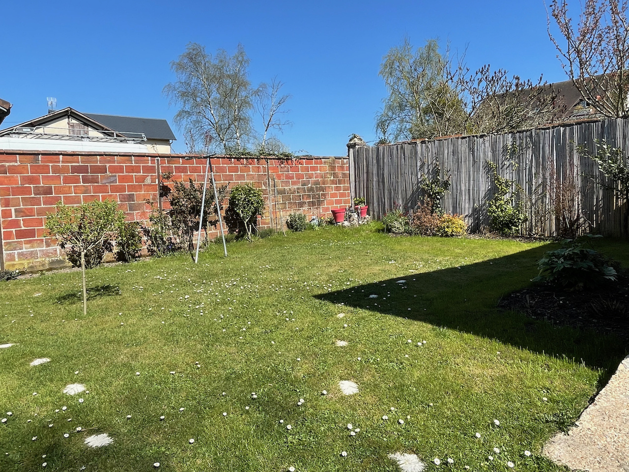 Conches-en-Ouche (27190)COUP DE COEUR. Dans un quartier calme, à pied du centre ville de Conches et des écoles, charmante maison de plain pied lumineuse et rénovée sur un terrain clos de murs et planté de 332 m2 avec un garage indépendant. La maison se compose d'un salon doté d'un poêle à granulés et une cuisine équipée ouverte, un couloir distribuant une chambre, un bureau avec placards pouvant faire chambre d'enfant, une salle de bains et un Wc séparé. Accessible par l'extérieur : une cave partielle. Et sur le terrain, un garage indépendant complète le bien (toiture neuve). Chauffage par poôle à granulés et radiateurs électriques. Raccordement au tout à l'égout. Fibre installée.