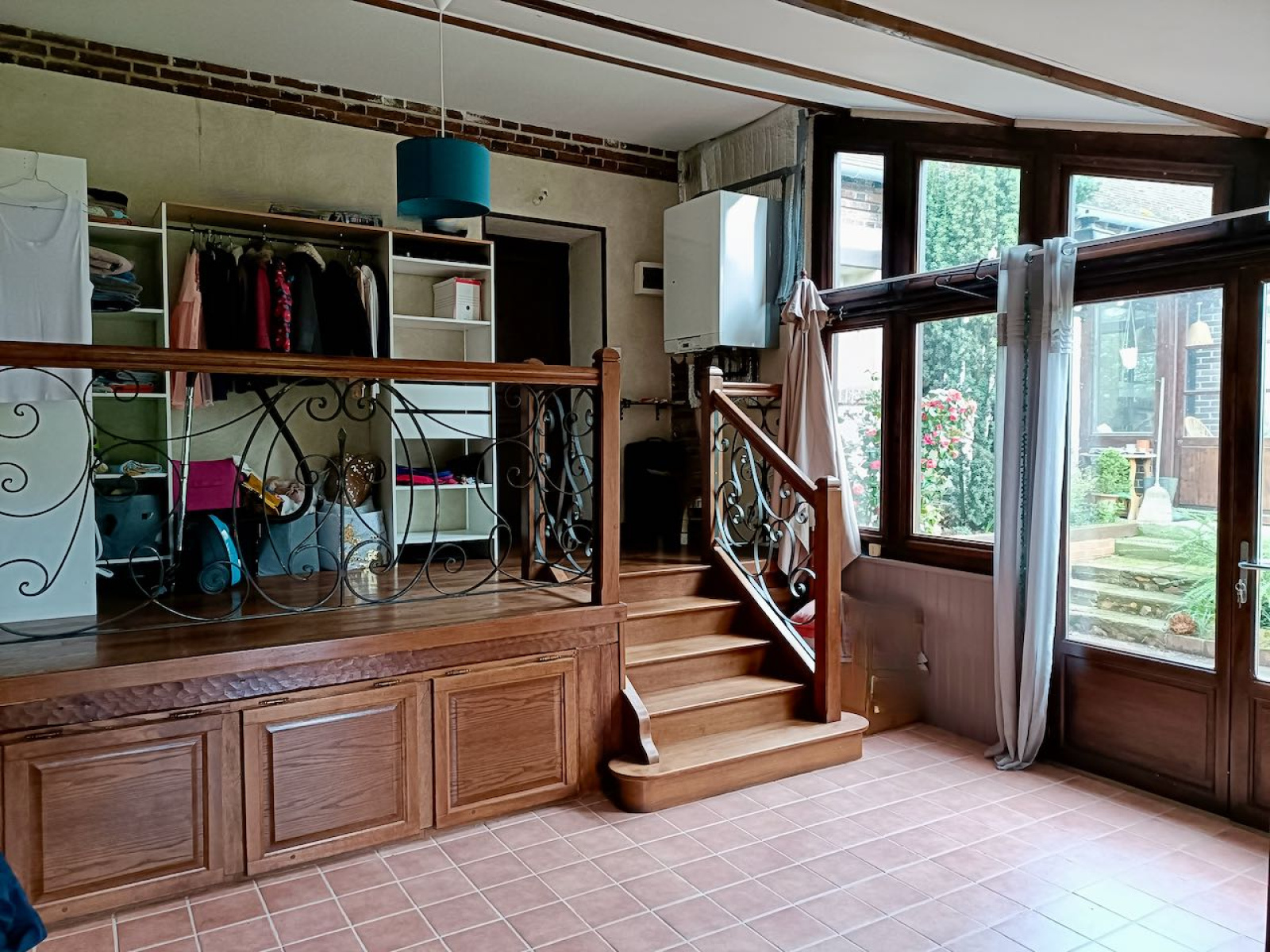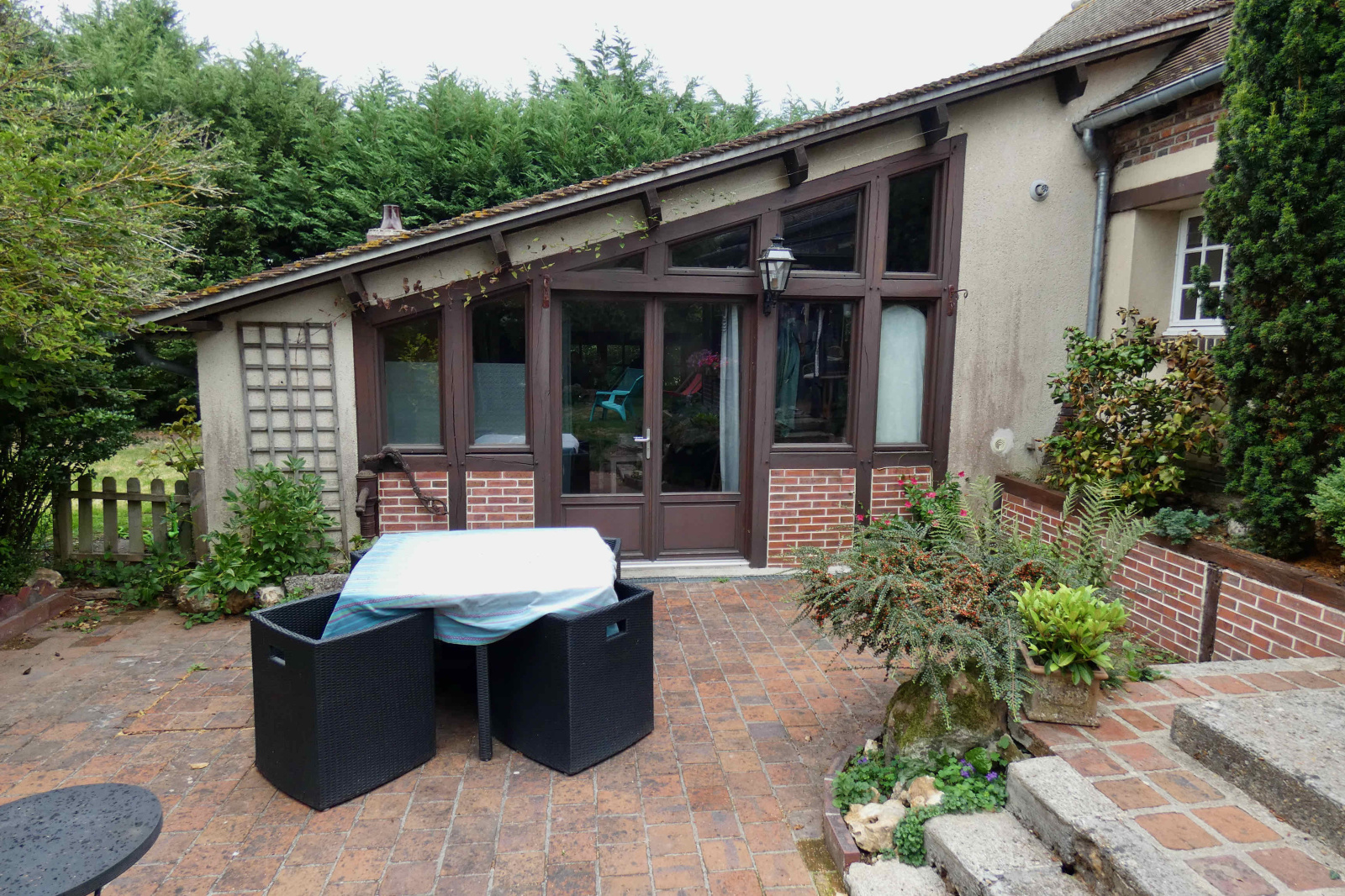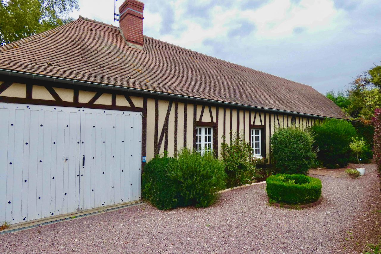Conches-en-Ouche (27190)A 1h 30 de Paris et 10mn de la gare de Conches, cette charmante maison normande vous offre au rdc: Entrée, cuisine équipée, séjour double avec cheminée, petite véranda, une chambre, salle d' eau, wc. Dans son prolongement une vaste pièce avec mezzanine donnant sur la terrasse, un cabinet de toilette. A l'étage: pièce palière, une chambre et grenier. Une piéce attenant à la maison peut permettre l'aménagement d'une chambre supplémentaire. Dépendances: 2 cabanons en bois. Chauffage central au gaz. Le tout sur un terrain arboré de 1912 m2.