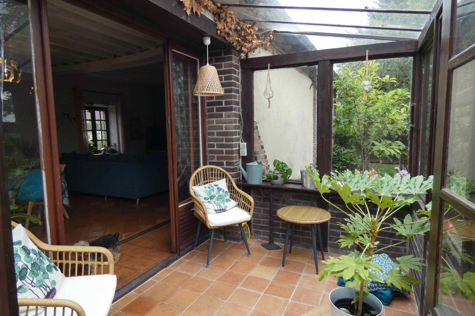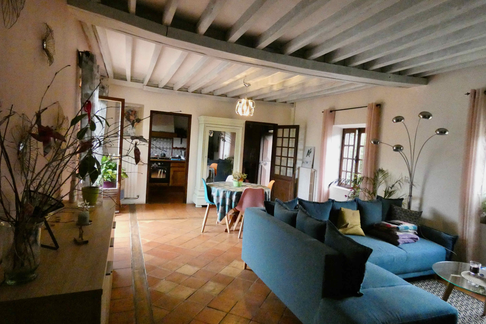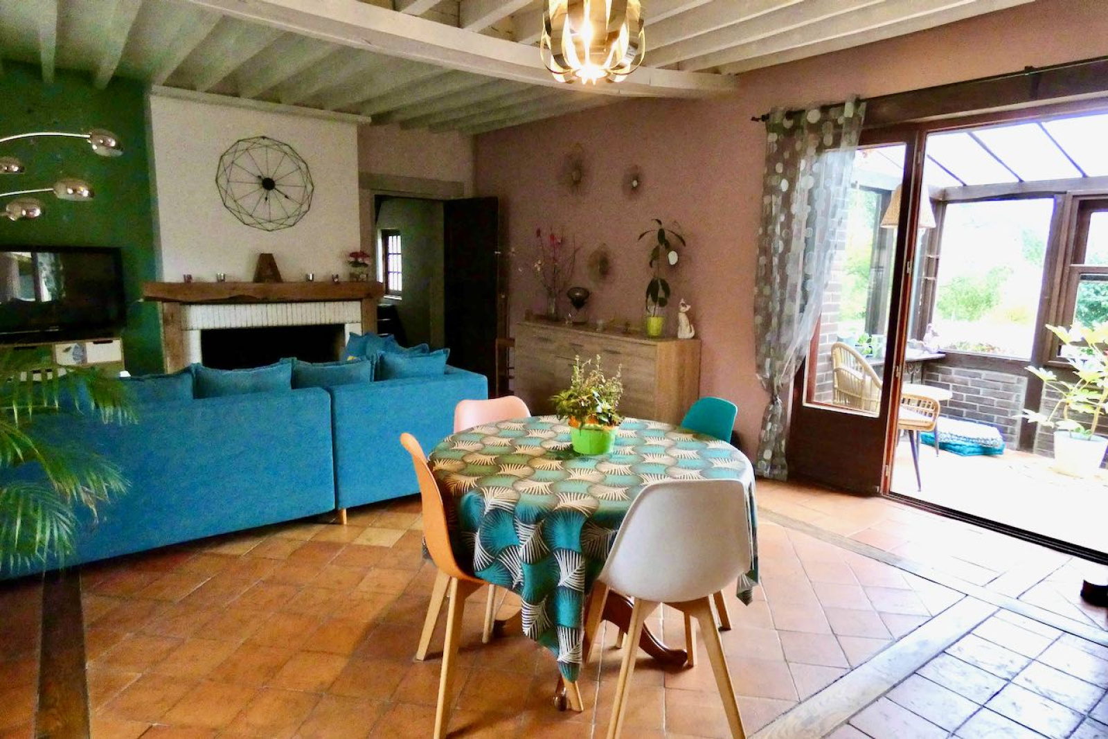 Conches-en-Ouche (27190)A 1h 30 de Paris et 10mn de la gare de Conches, cette charmante maison normande vous offre au rdc: Entrée, cuisine équipée, séjour double avec cheminée, petite véranda, une chambre, salle d' eau, wc. Dans son prolongement une vaste pièce avec mezzanine donnant sur la terrasse, un cabinet de toilette. A l'étage: pièce palière, une chambre et grenier. Une piéce attenant à la maison peut permettre l'aménagement d'une chambre supplémentaire. Dépendances: 2 cabanons en bois. Chauffage central au gaz. Le tout sur un terrain arboré de 1912 m2.