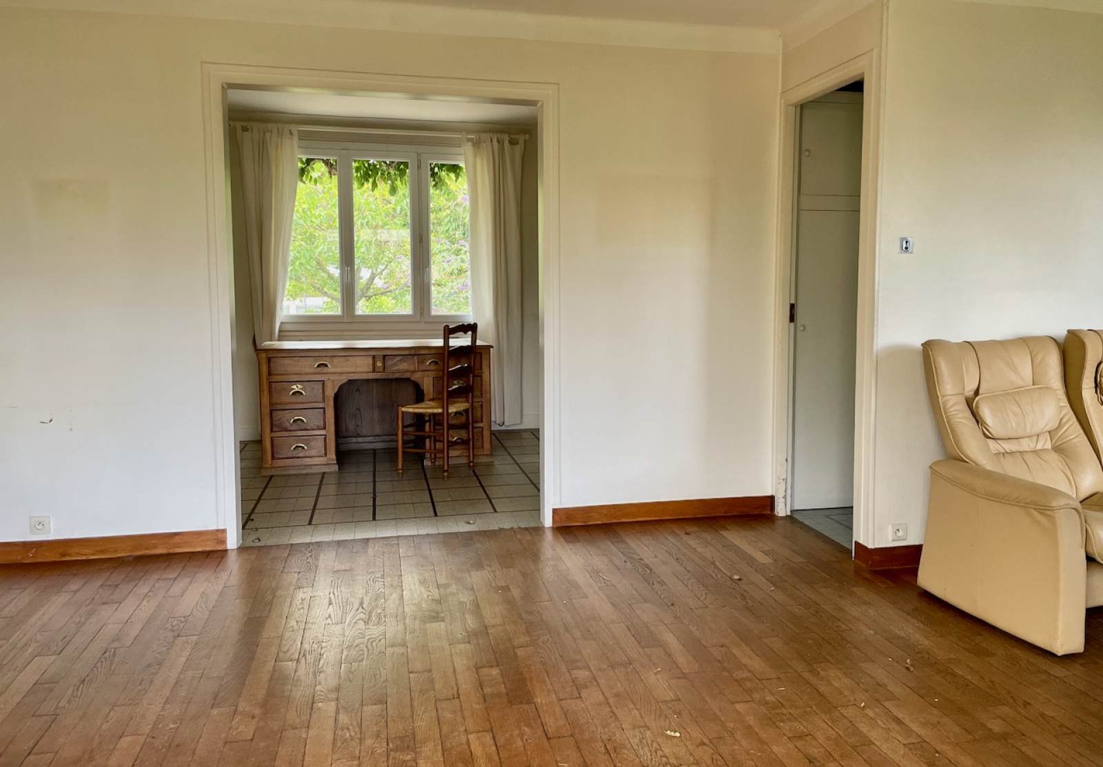 Exposée Est-Ouest, la maison vivable de plain pied se compose au rdc d'une entrée, une cuisine séparée lumineuse, un double séjour parqueté avec insert et accès terrasse plein ouest, un couloir distribuant deux chambres sur parquet, une salle d'eau, WC séparé et accès au sous sol. A l'étage, deux chambres, une salle d'eau avec WC et grenier. Sous-sol total dont une partie garage. Chauffage par PAC air/eau. Isolation des murs par l'extérieur récente. Raccordée au tout à l'égout. Fibre déployée. Travaux de rafraichissement à prévoir.