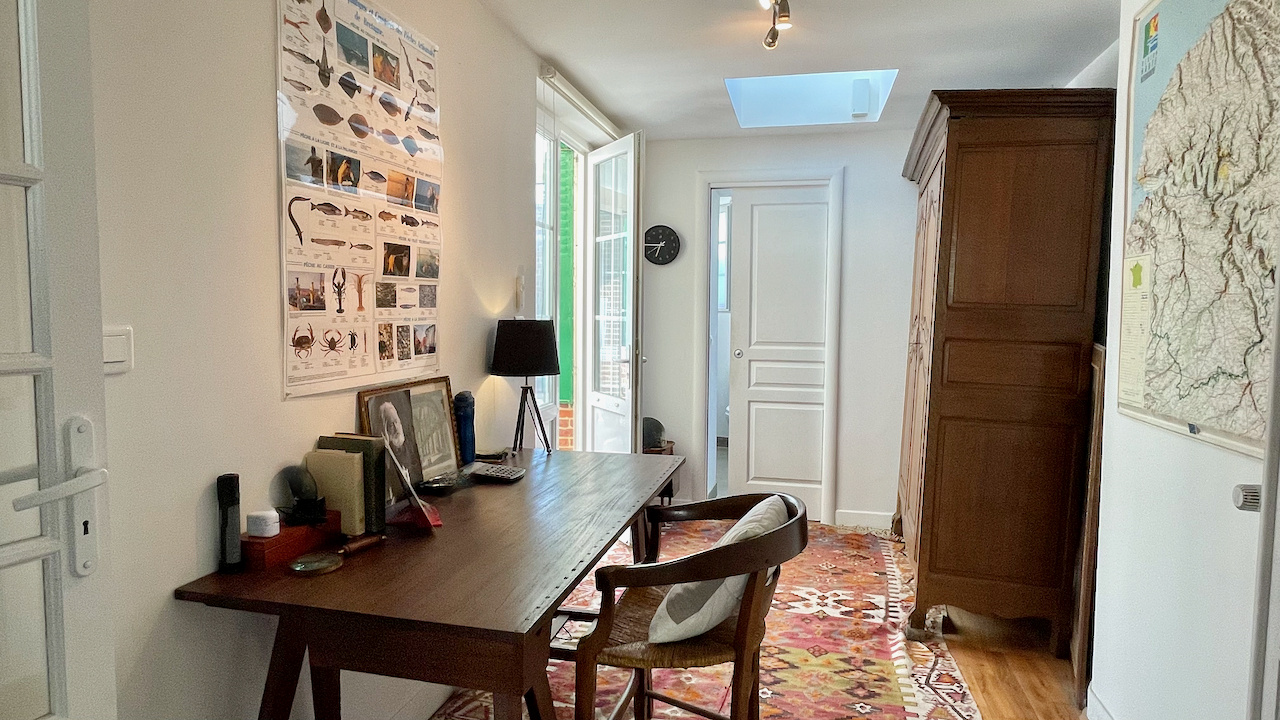 La maison se compose de 6 pièces pour une surface de 125 m2 et un grenier isolé offrant un beau potentiel d'agrandissement. Au rdc l'entrée distribue un séjour avec cheminées, une cuisine équipée et arrière cuisine, un salon, un bureau et une salle d'eau avec WC. L'accès au jardin se fait par une véranda. Au 1er étage sur tommettes et parquet se trouvent deux chambres, un bureau pouvant servir de chambre d'amis, une salle de bain et WC séparé. Au 2e étage, un grenier isolé sur parquet et charpente apparente complète le bien.