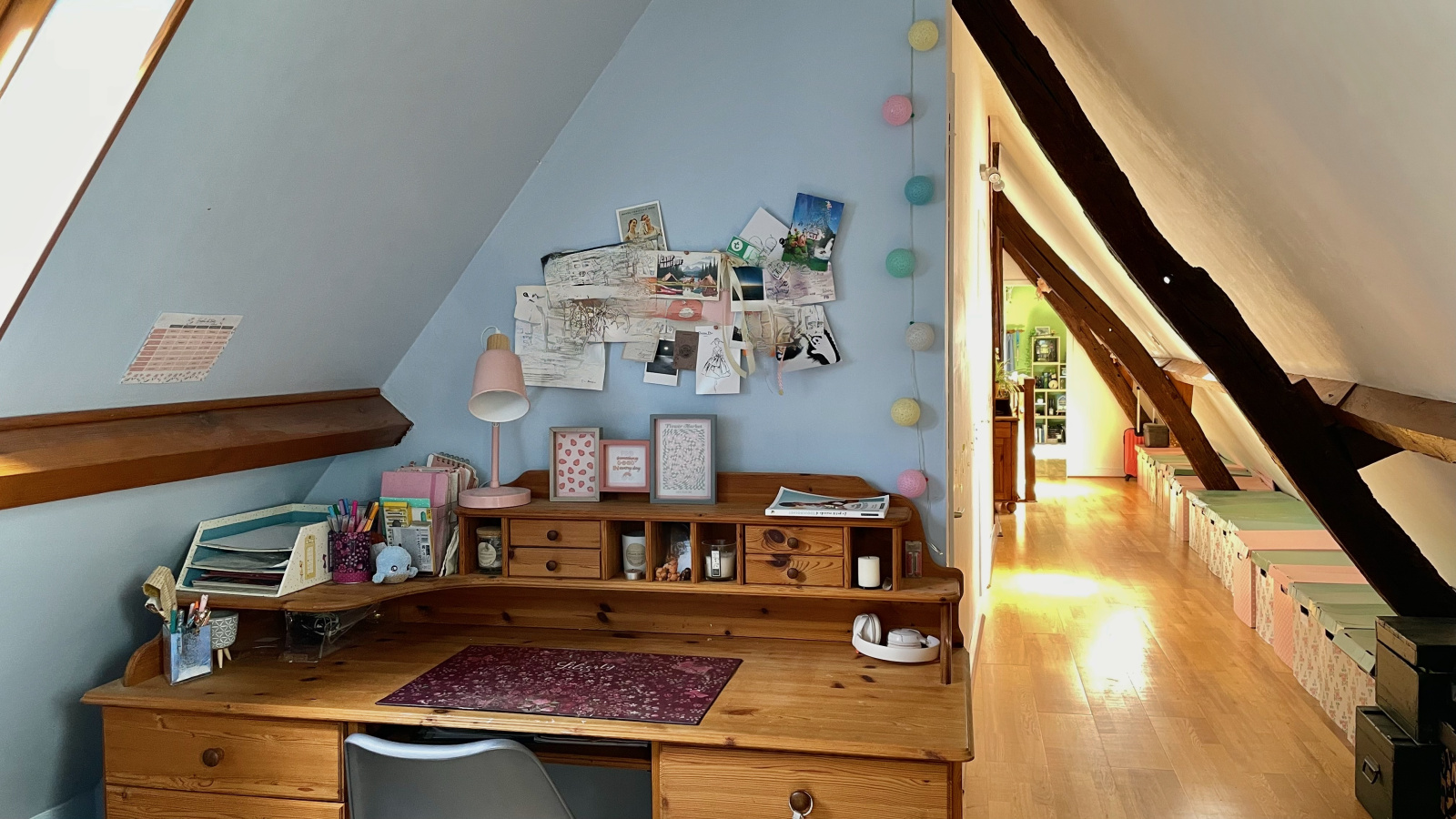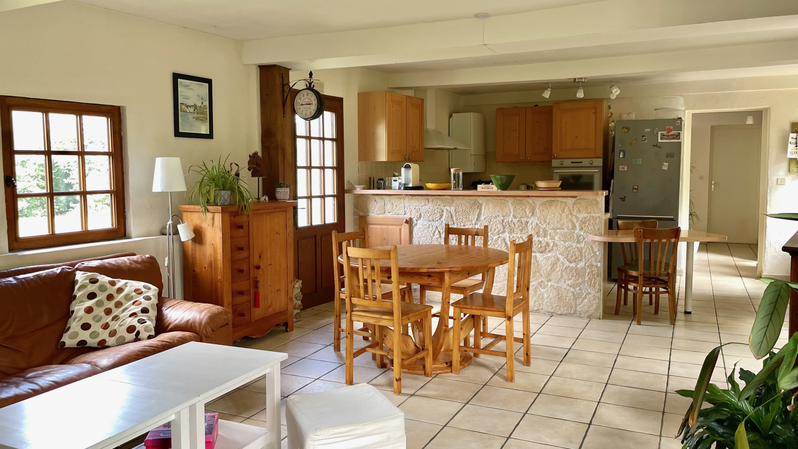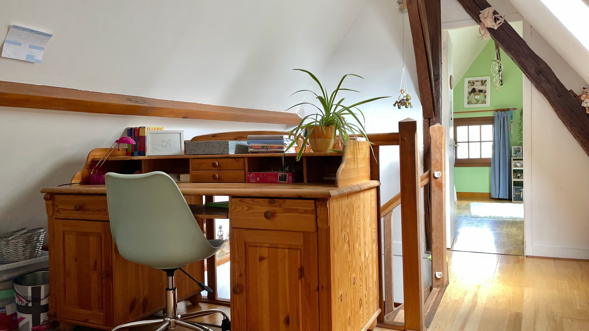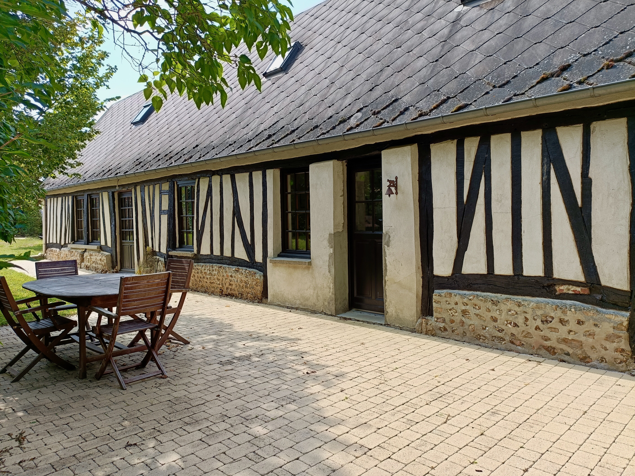Conches-en-Ouche (27190)Rare dans Conches: Longère normande avec vie de plain pied sur joli terrain arboré, terrasse exposée Sud. La maison s'ouvre sur une entrée. S'ensuit un vaste espace de vie de 42 m2: une cuisine équipée ouverte sur le séjour-salon avec cheminée insert. De plain pied, vous disposerez de deux chambres (15 m2 et 20 m2) et une salle d'eau avec wc. A l'étage, sous combles: une mezzanine, un bureau (pouvant servir de chambre) puis un dégagement distribuant salle d'eau et wc séparé. Enfin une chambre avec espace bureau. Chauffage gaz de ville, adoucisseur d'eau, tout à l'égout. Les fenêtres sont en bois double-vitrage. Maison raccordée à la fibre. Sur le terrain de 1519 m2, en partie clos de murs, se trouvent une dépendance à usage de remise ainsi qu'un abri de jardin. A pied des commerces et écoles.
