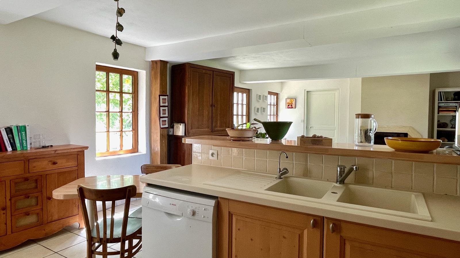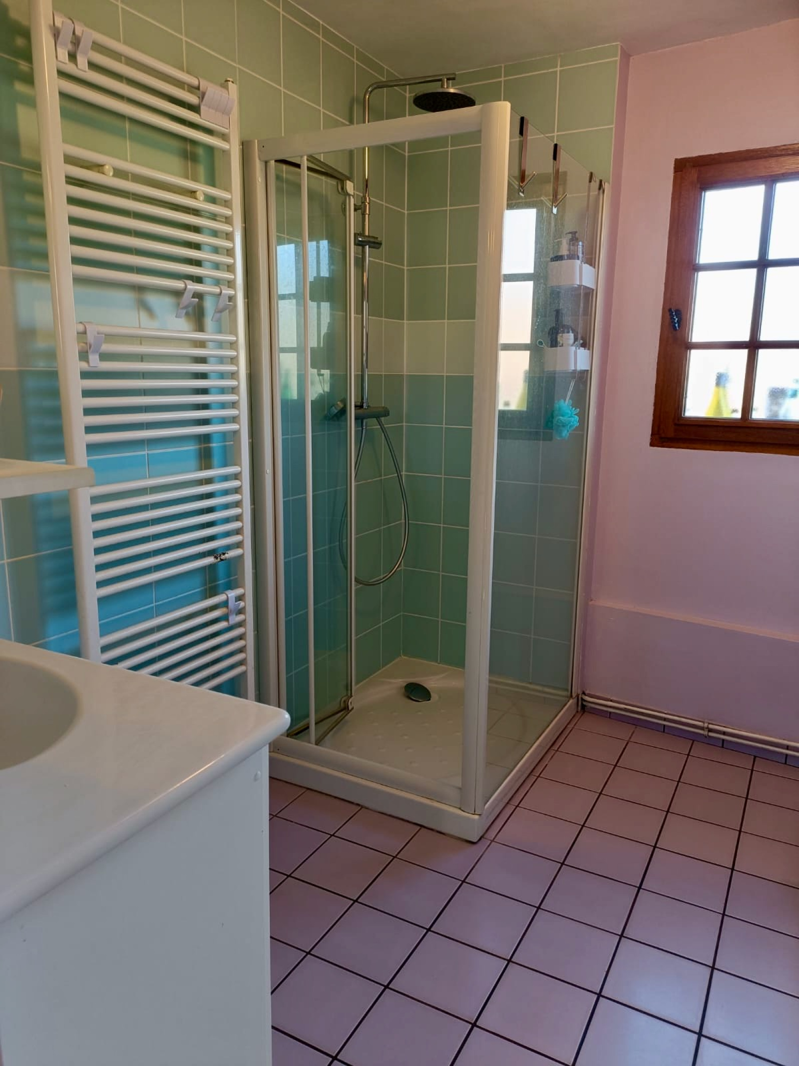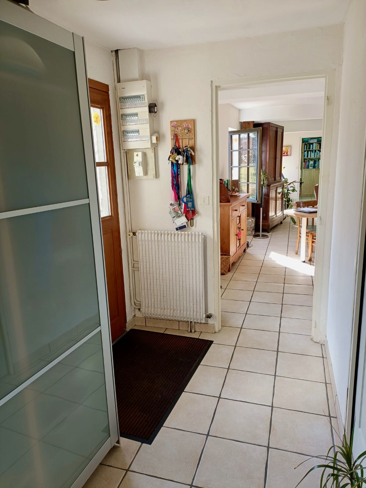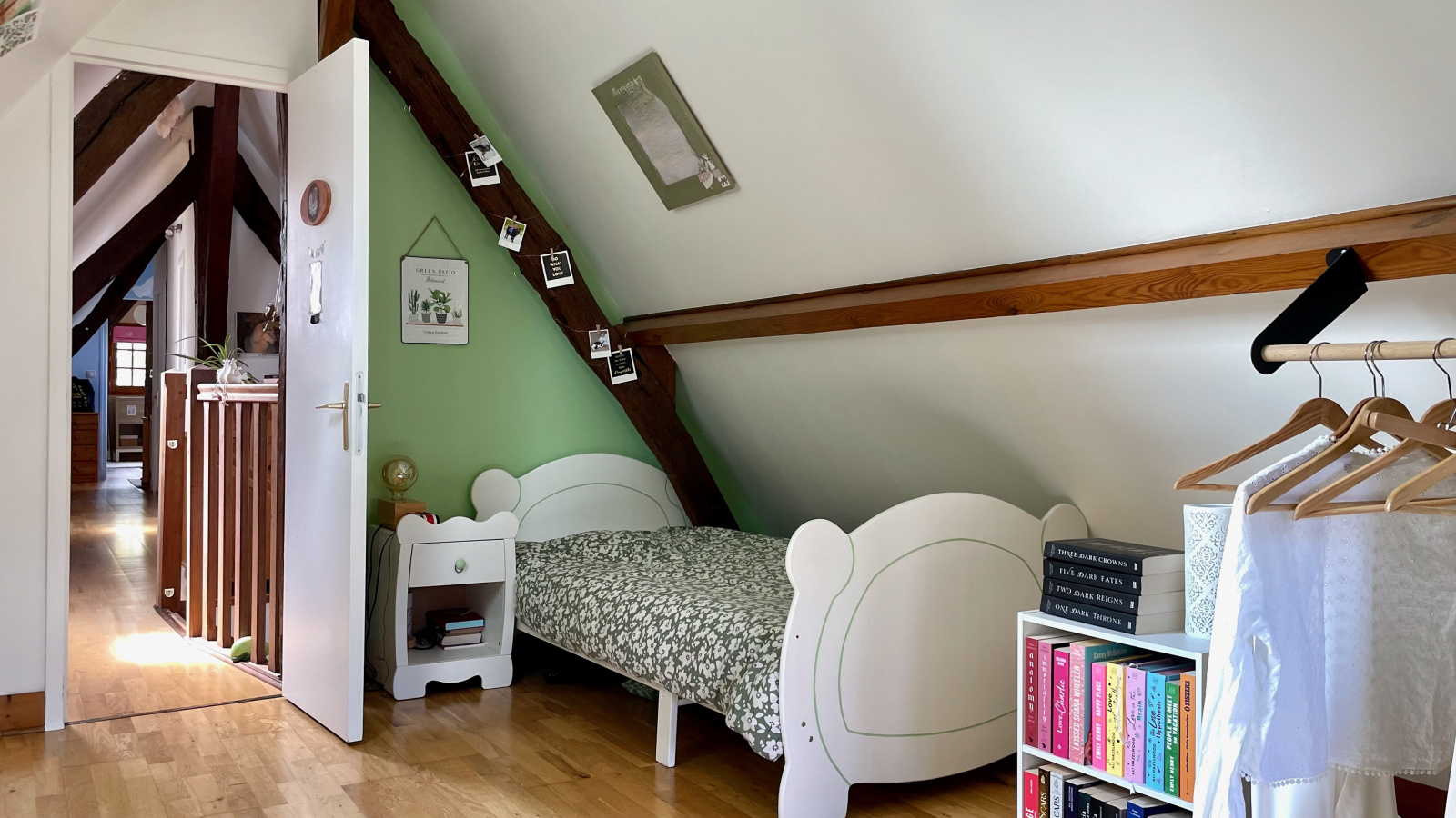 Conches-en-Ouche (27190)Rare dans Conches: Longère normande avec vie de plain pied sur joli terrain arboré, terrasse exposée Sud. La maison s'ouvre sur une entrée. S'ensuit un vaste espace de vie de 42 m2: une cuisine équipée ouverte sur le séjour-salon avec cheminée insert. De plain pied, vous disposerez de deux chambres (15 m2 et 20 m2) et une salle d'eau avec wc. A l'étage, sous combles: une mezzanine, un bureau (pouvant servir de chambre) puis un dégagement distribuant salle d'eau et wc séparé. Enfin une chambre avec espace bureau. Chauffage gaz de ville, adoucisseur d'eau, tout à l'égout. Les fenêtres sont en bois double-vitrage. Maison raccordée à la fibre. Sur le terrain de 1519 m2, en partie clos de murs, se trouvent une dépendance à usage de remise ainsi qu'un abri de jardin. A pied des commerces et écoles.