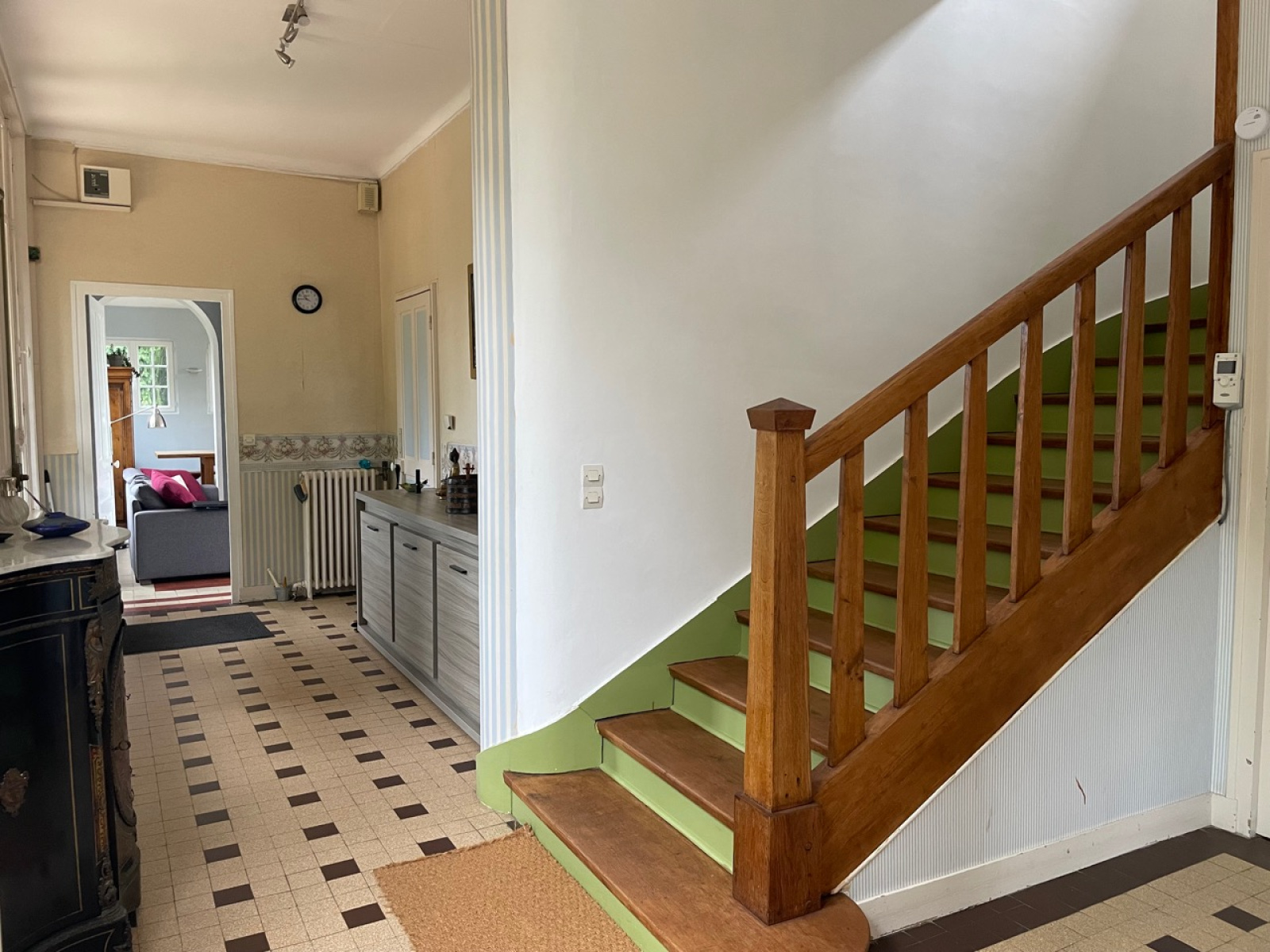 Conches-en-Ouche (27190)Vue unique sur la vallée du Rouloir, à seulement 10 minutes à pied du centre de Conches et de ses commerces. Propriété de 1935 implantée sur un terrain, exceptionnel sur la commune, de 1,6 hectares avec une jolie prairie. La maison offre de beaux volumes pour une surface habitable de 190 m2. Elle se compose au rdc d'une vaste entrée, un séjour double avec cheminée insert donnant sur la terrasse et une cuisine ouverte, un couloir desservant 2 grandes chambres parquetées, une salle de bain, une salle d'eau, un wc séparé. À son étage, le palier donne sur 3 chambres et un grenier aménageable. Cave, garage et buanderie en sous-sol sur la totalité du bien (90m2). Chauffage central au gaz de ville. Assainissement individuel aux normes. Fibre installée. En dépendances sur le terrain : 2 bâtiments bois et un grand box cheval sur la prairie (8mX4m). Gare de conches (Paris St Lazare) à 15 minutes à pied.