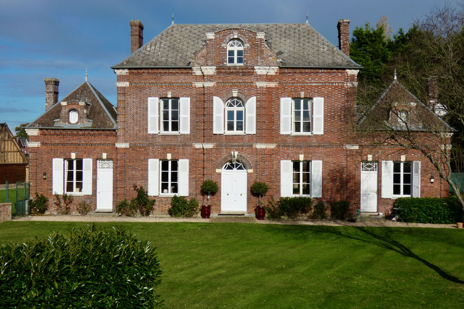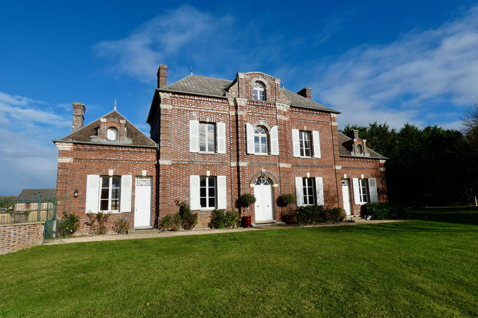 Conches-en-Ouche (27190)REF: 4522. Exclusivité Saint Clair. Belle propriété bourgeoise composée d'une maison de maître, de ses 2 maisons d'amis et ses dépendances. L'ensemble se trouve sur un parc de plus d'un hectare en partie clos de murs. La maison principale se compose d'une entrée, cuisine aménagée, salle à manger avec cheminée, salon, avec cheminée, chambre et wc. Au premier: palier, 2 chambres, une salle de bains, un cabinet de toilette, wc. Au second: palier, 2 chambres. La 1ère maison d'amis offre: cuisine, séjour, jardin d'hiver, vaste dortoir et salle d'eau. La seconde maison d'amis comprend: cuisine, séjour, 2 chambres, salle d'eau. 3 autres dépendances: 2 granges et ancien pressoir.