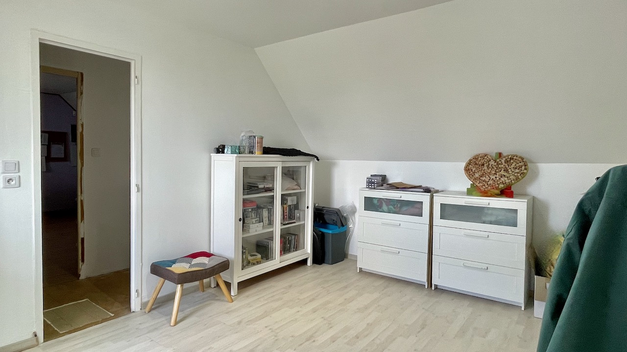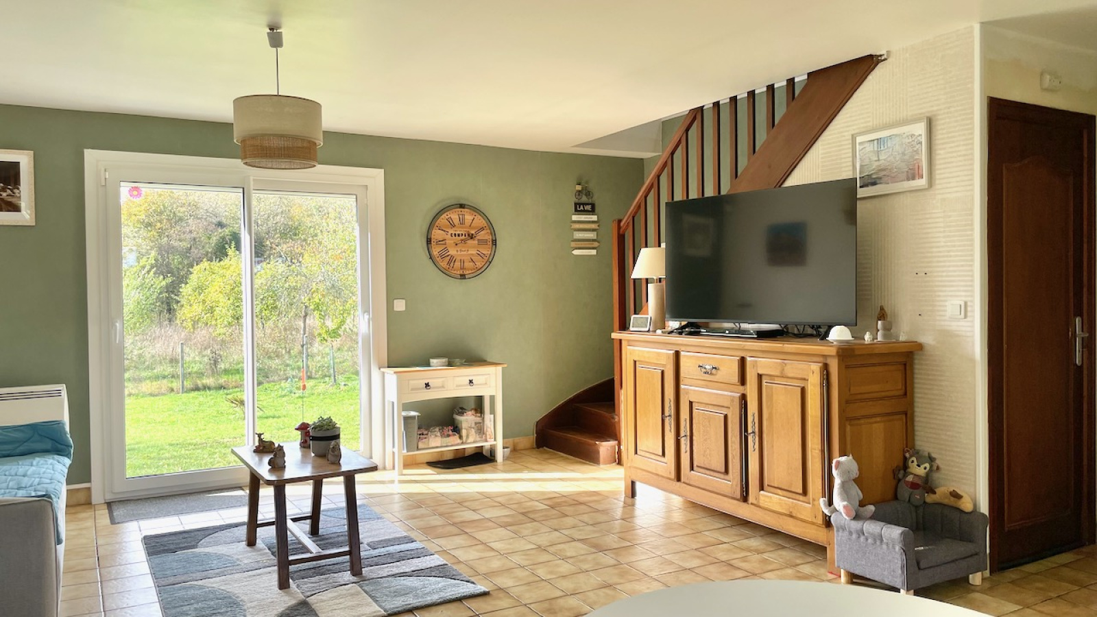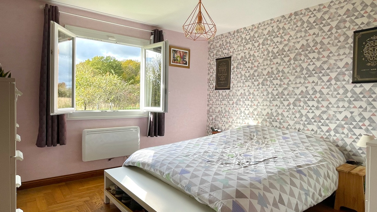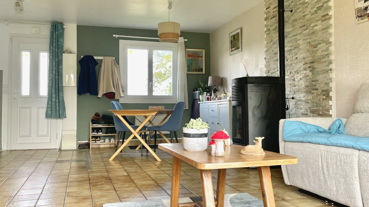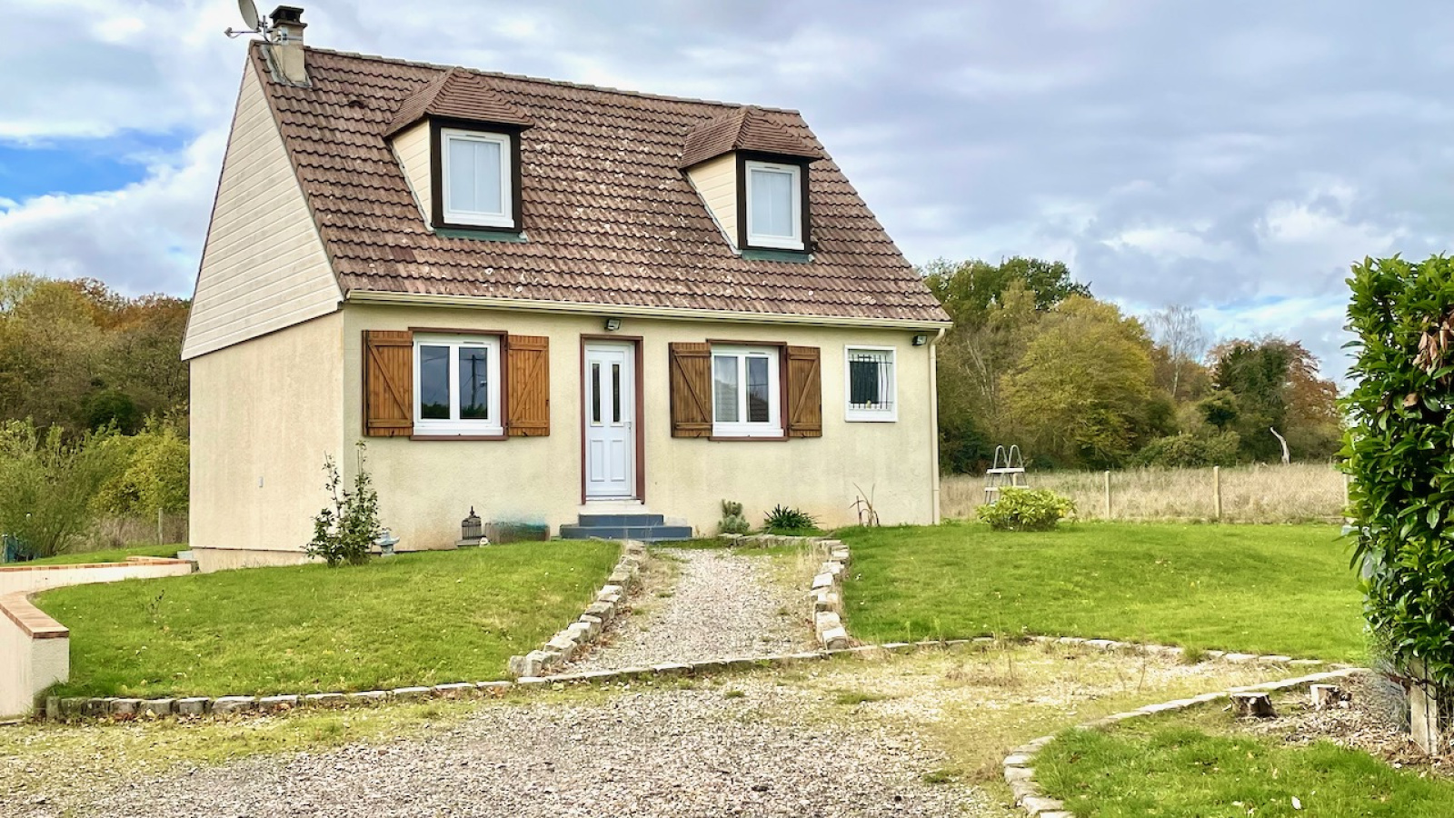 Louversey (27190)À 4 km de Conches, au calme en lisière de forêt sur la commune de Louversey, maison de 4 pièces offrant une vie de plain pied élevée sur sous sol complet. Sur un terrain clos de 2 994 m2 dont une partie verger, la maison se compose au rdc d'une agréable pièce de vie lumineuse avec une cuisine aménagée ouverte, un couloir distribuant une chambre avec vue dégagée sur le jardin et la foret, une salle d'eau (douche à l'italienne), WC et accès au sous sol total. A l'étage un dégagement distribue 2 chambres. Chauffage électrique, poêle à granulés et fenêtres PVC double vitrage récentes. Assainissement individuel. Fibre. Vous apprécierez un environnement immédiat paisible et préservé.