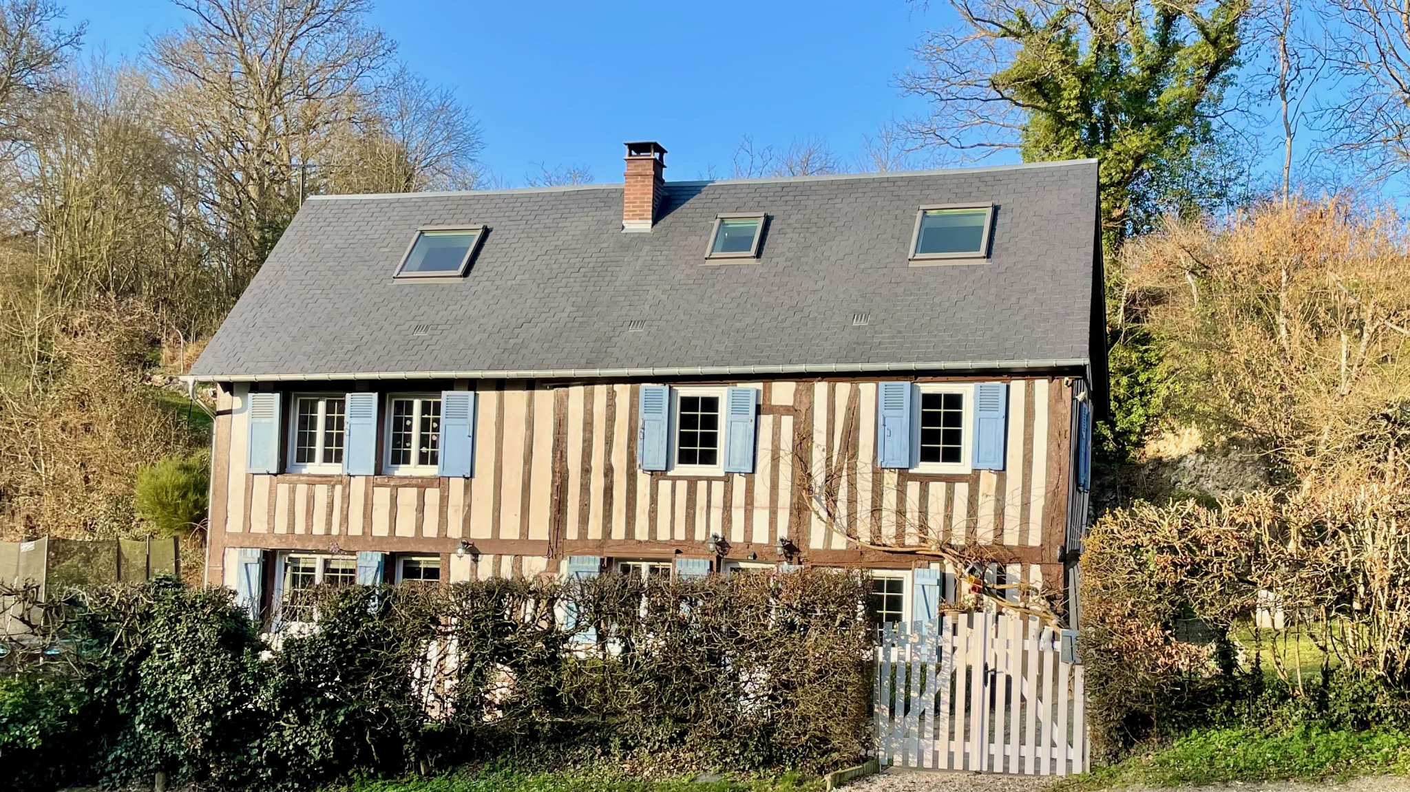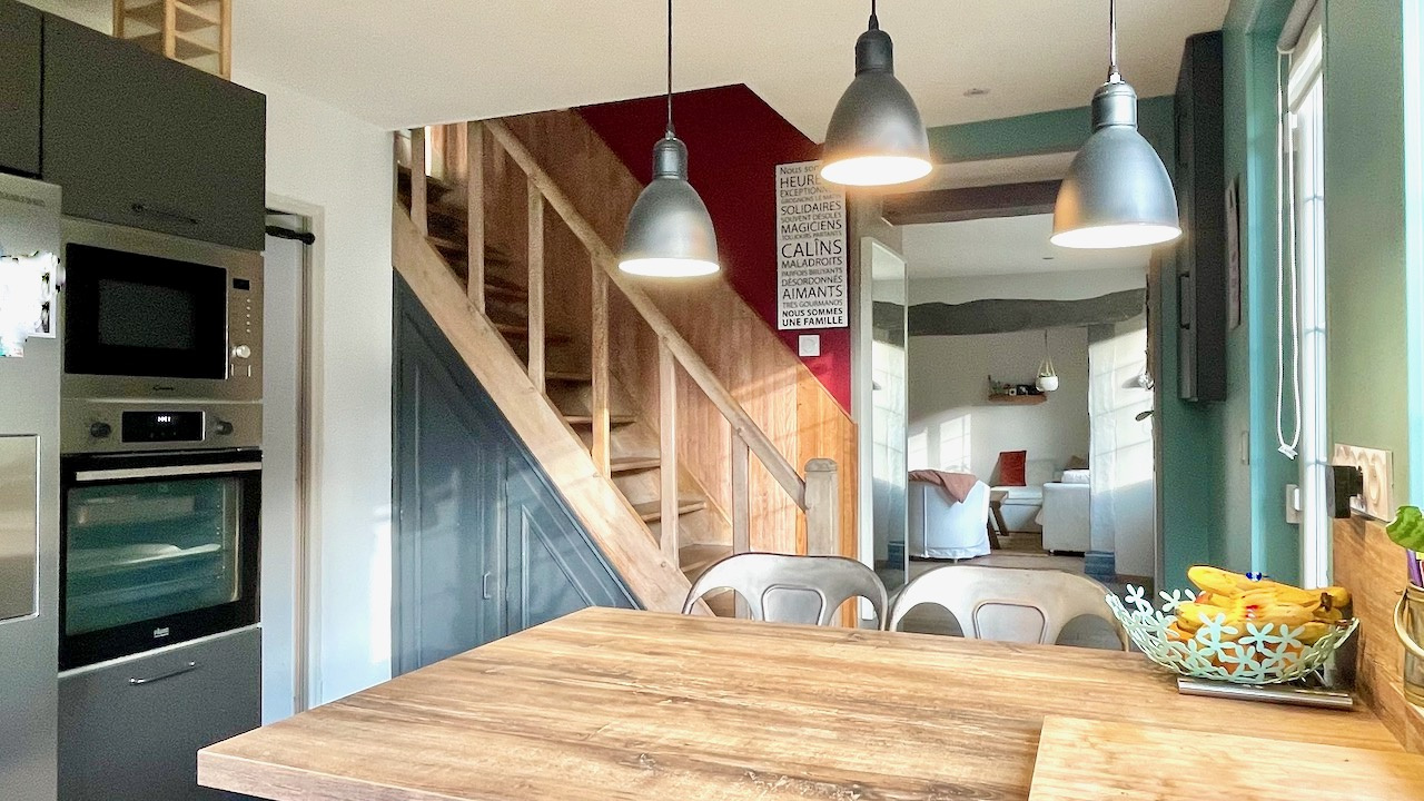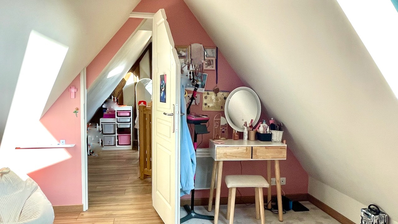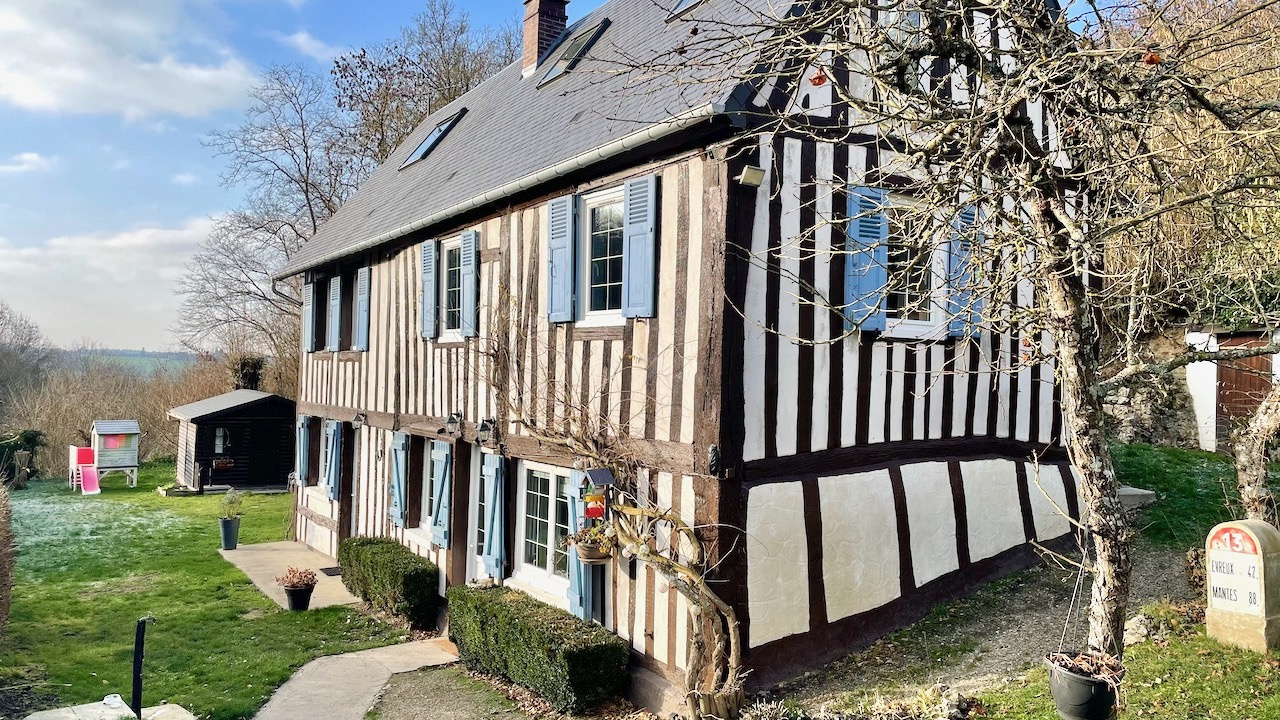 Champignolles (27330)Maison à colombages en parfait état située dans le plus petit village de l'Eure, au coeur de la vallée de la Risle, sans aucun vis à vis. Sur un terrain de 1375 m², la maison très lumineuse et au calme sans être isolée, comprend au rdc : un séjour avec poêle a bois, une cuisine équipée avec ilot central, une buanderie et WC séparé. A l'étage : 2 chambres, un bureau, une salle de bains avec douche, baignoire et WC. Au 2è étage : un palier distribue 2 chambres d'enfants. Aucun travaux à prévoir.