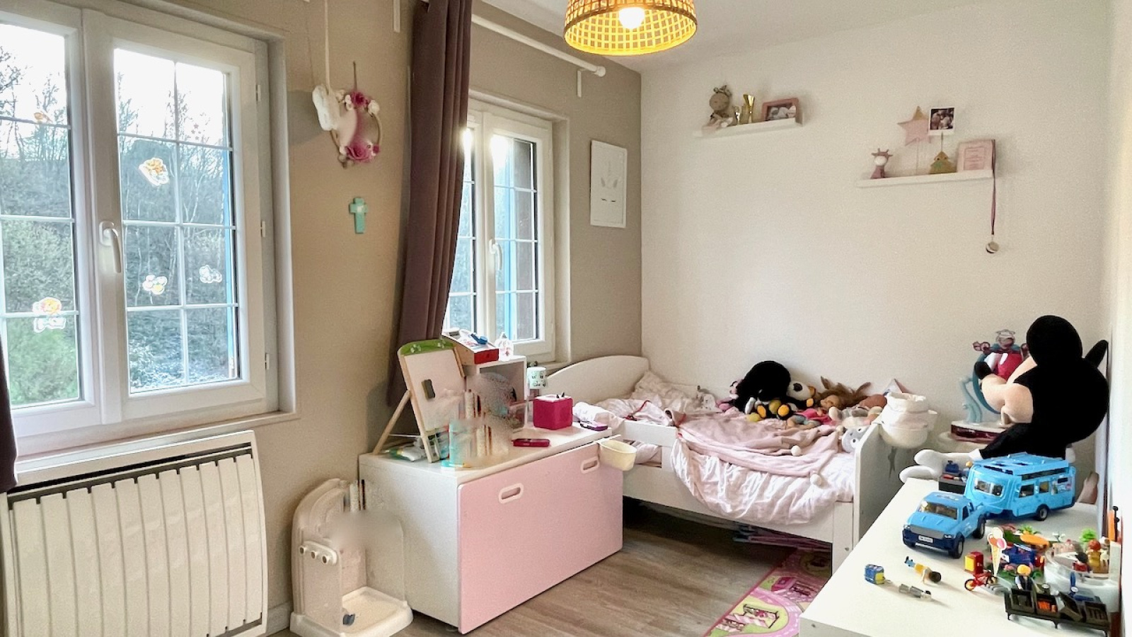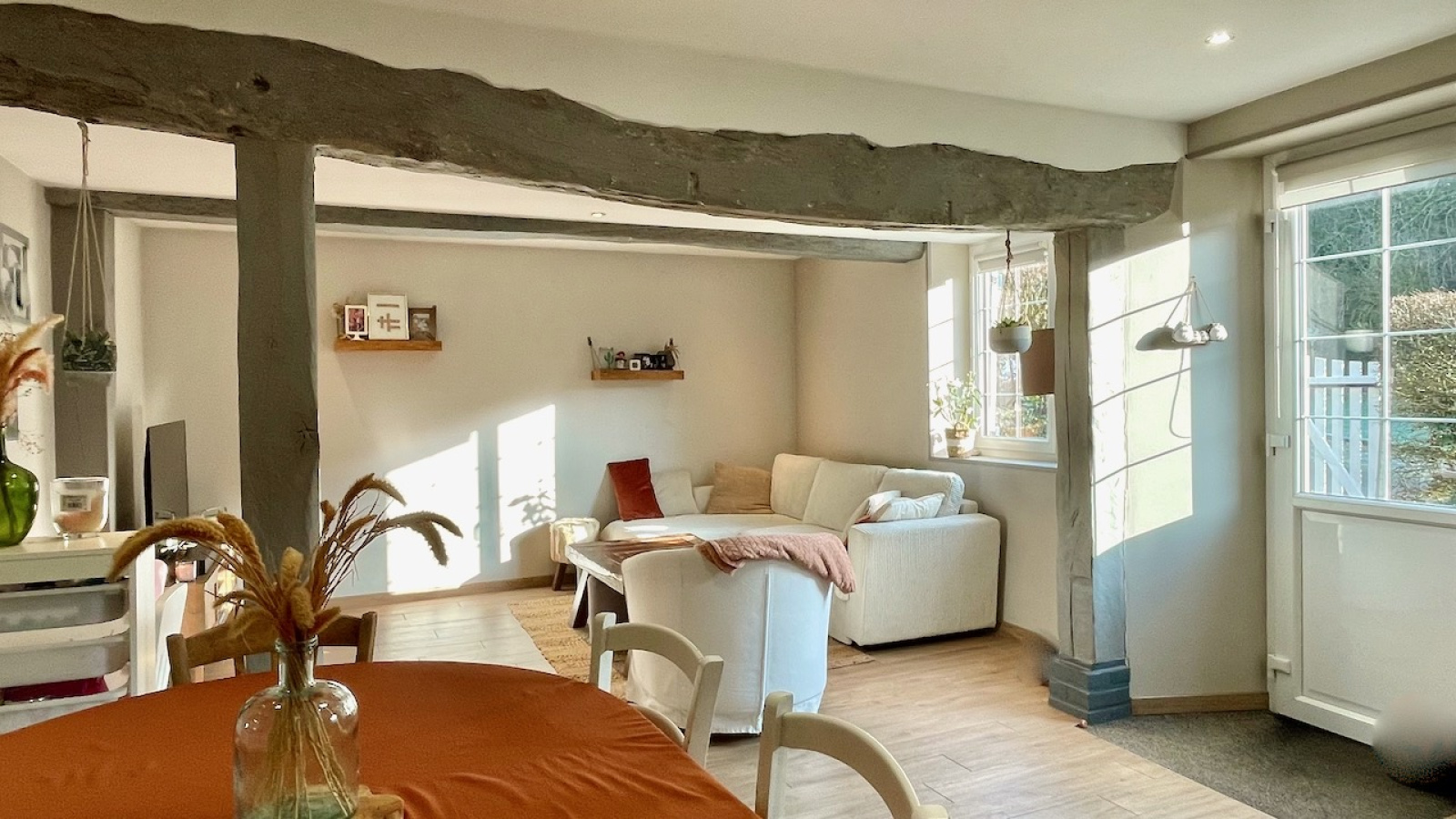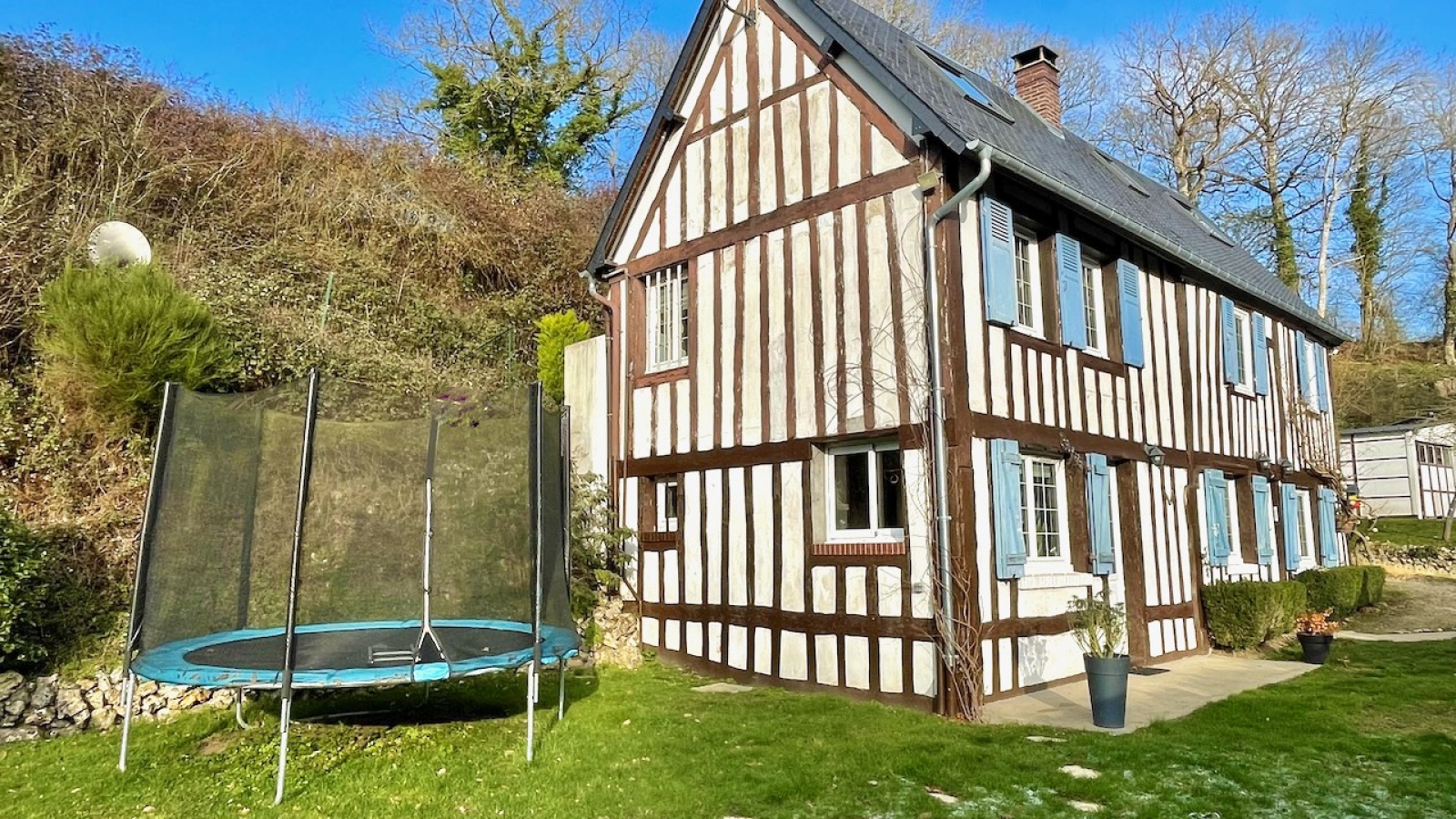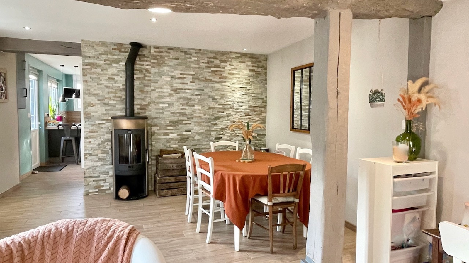 Champignolles (27330)Maison à colombages en parfait état située dans le plus petit village de l'Eure, au coeur de la vallée de la Risle, sans aucun vis à vis. Sur un terrain de 1375 m², la maison très lumineuse et au calme sans être isolée, comprend au rdc : un séjour avec poêle a bois, une cuisine équipée avec ilot central, une buanderie et WC séparé. A l'étage : 2 chambres, un bureau, une salle de bains avec douche, baignoire et WC. Au 2è étage : un palier distribue 2 chambres d'enfants. Aucun travaux à prévoir.