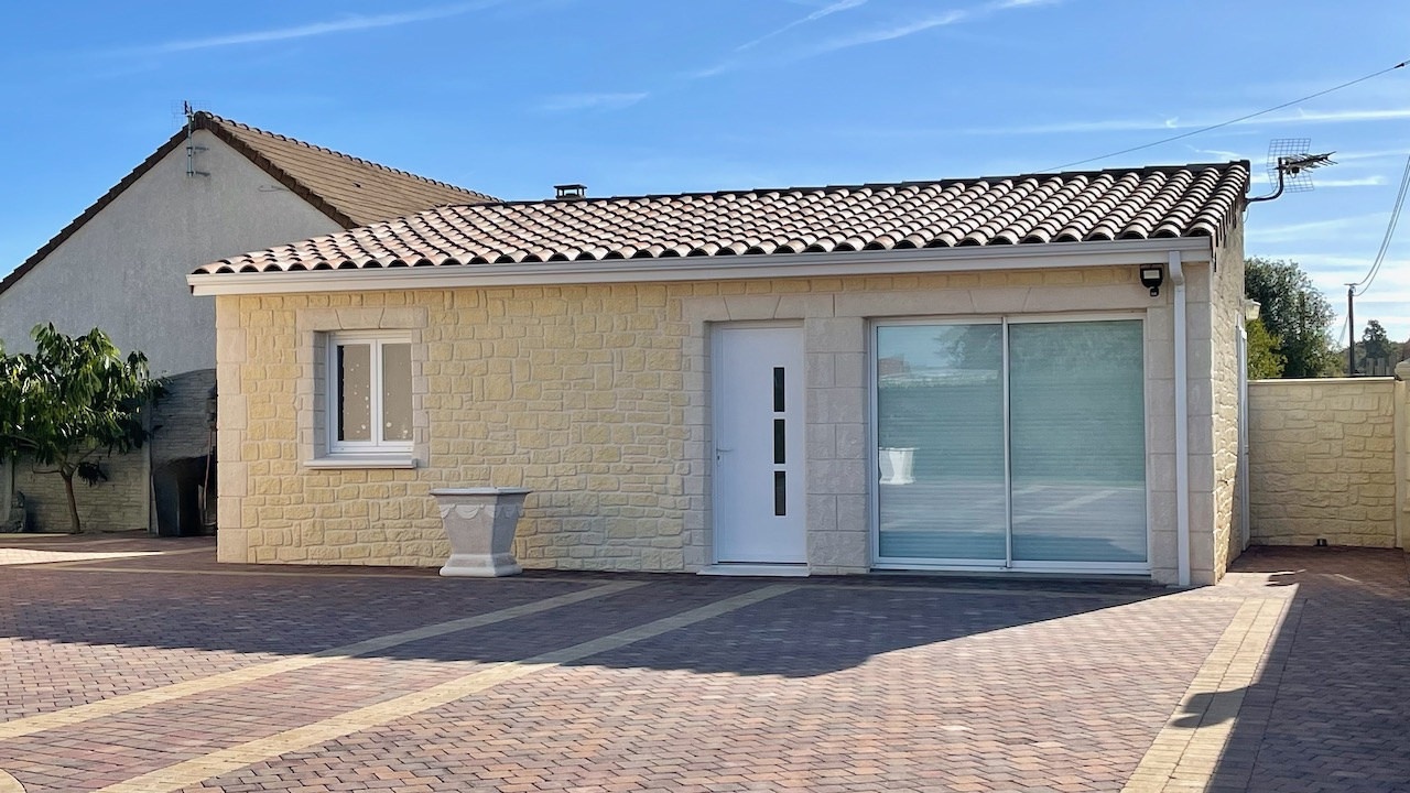 Sur la grande cour pavée, la maison annexe dispose d'une pièce de vie avec cuisine équipée et une salle d'eau. Attenant, le garage carrelé peut être aménagé en chambre. Cette dépendance aménagée est idéale pour accueillir les proches ou une profession libérale.