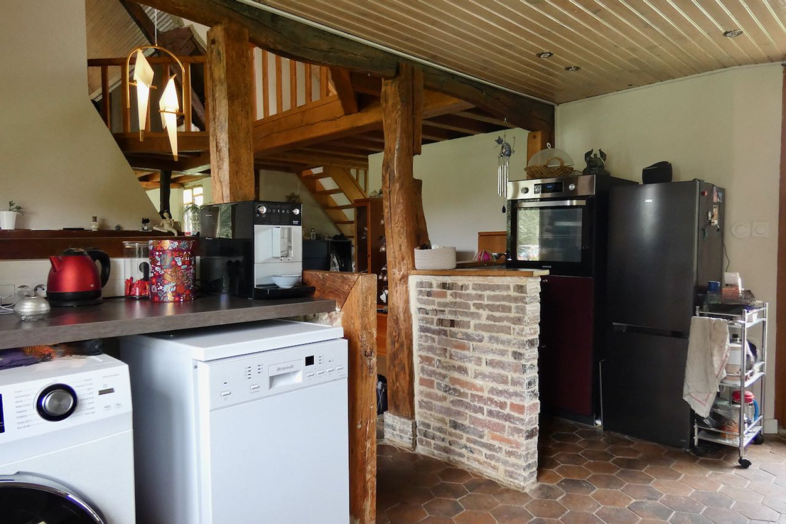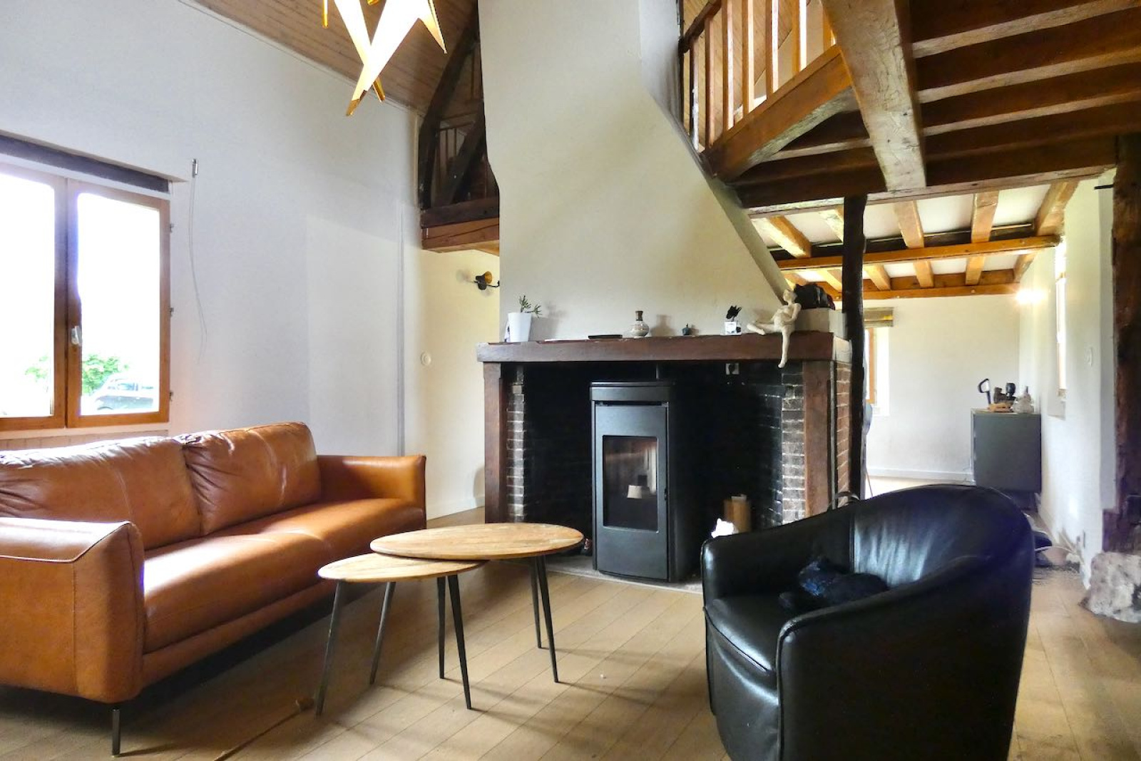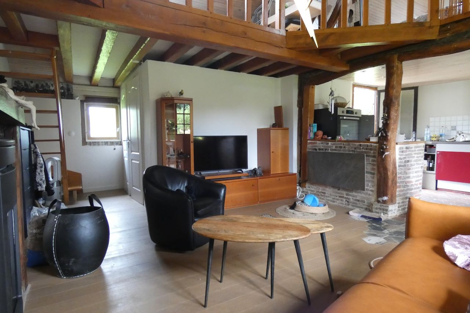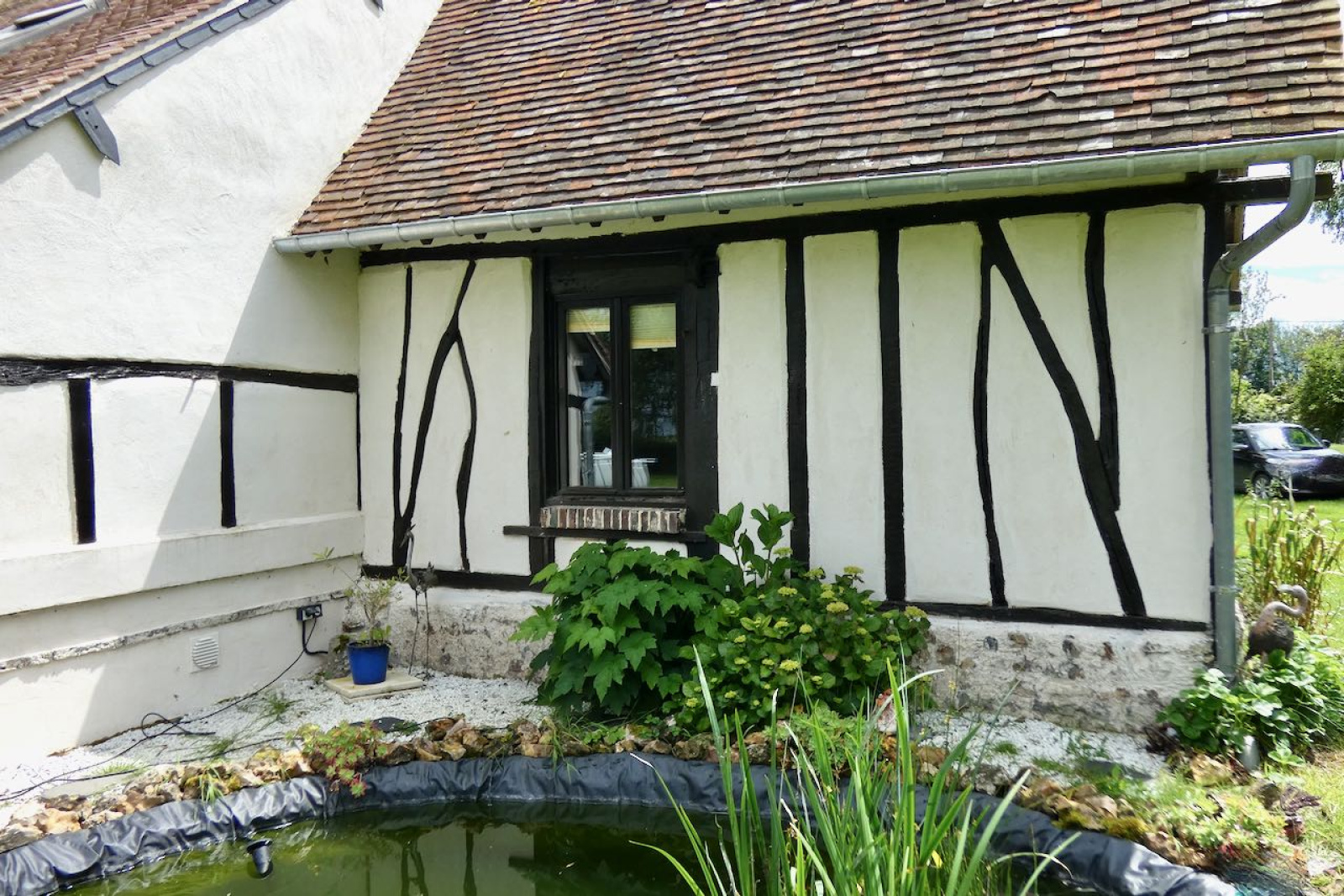 Le Fidelaire (27190)Maison à colombages de charme sur un très beau parc de 8 042 m2 comprenant : cuisine americaine, salon avec poêle à granulés et salle à manger, salle d' eau, wc séparés. A l'étage, 2 chambres ouvertes sur mezzanine. Toiture en tuiles de pays. Double vitrage bois. Assainissement individuel avec tertre. Fibre installée. Sur le terrain clos de haies, un cabanon en bois. Aucun vis à vis, au calme, proche foret. Petits commerces à 3 km et gare de Conches (axe Paris St Lazare) à 14 km.