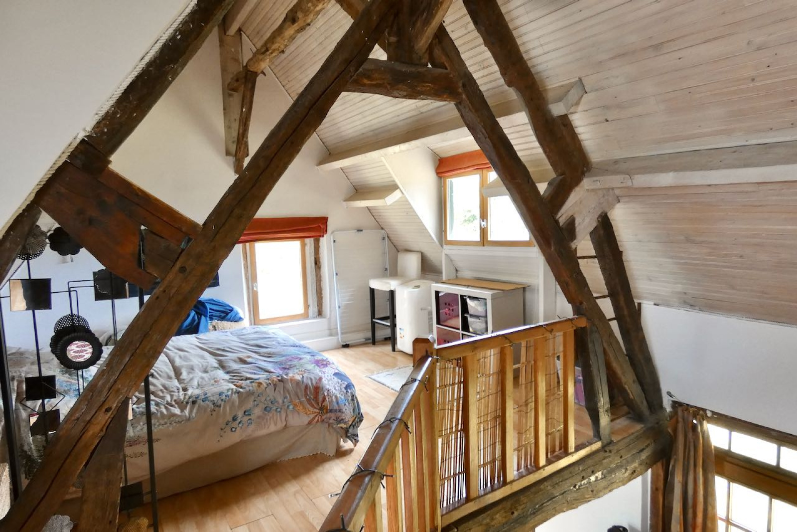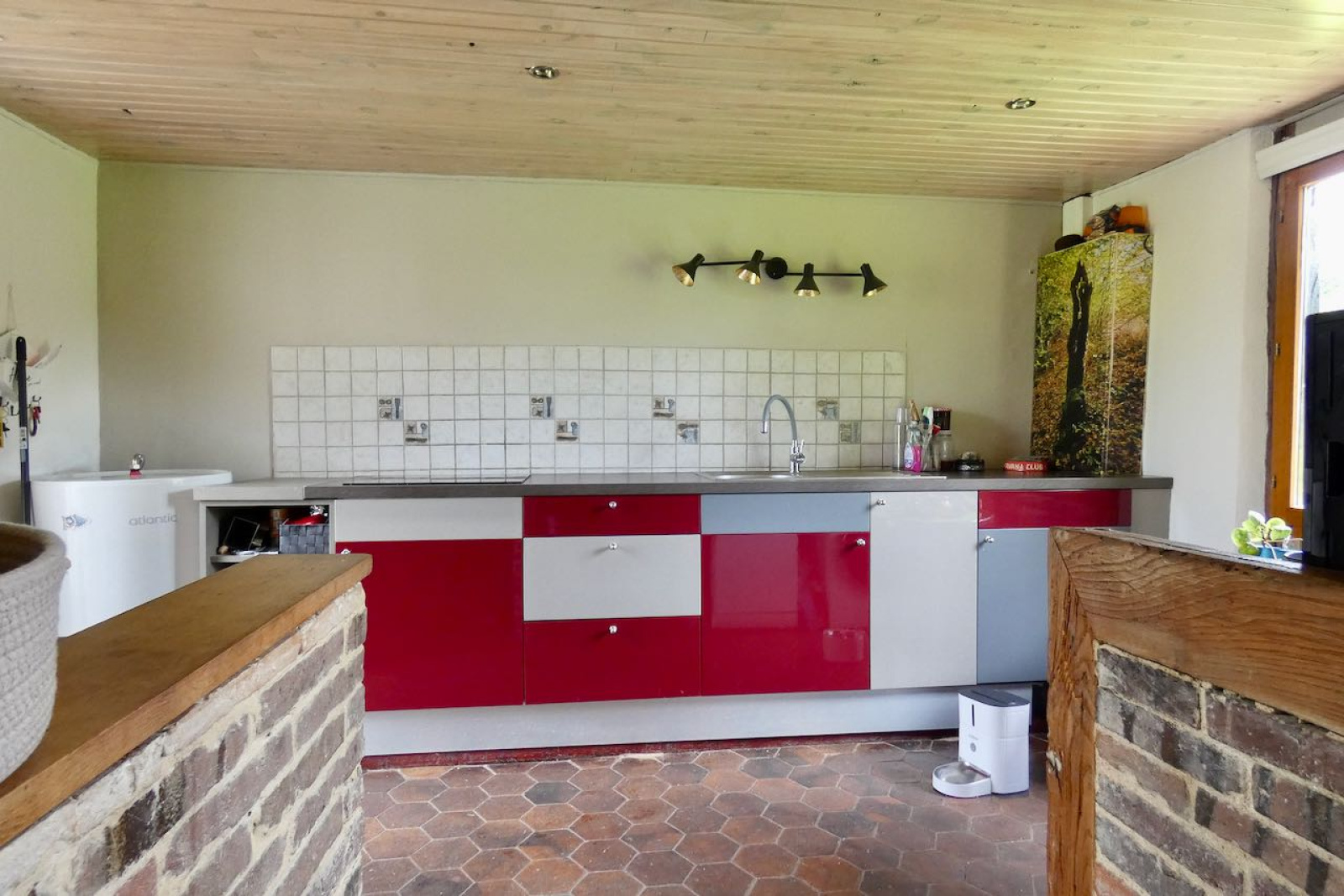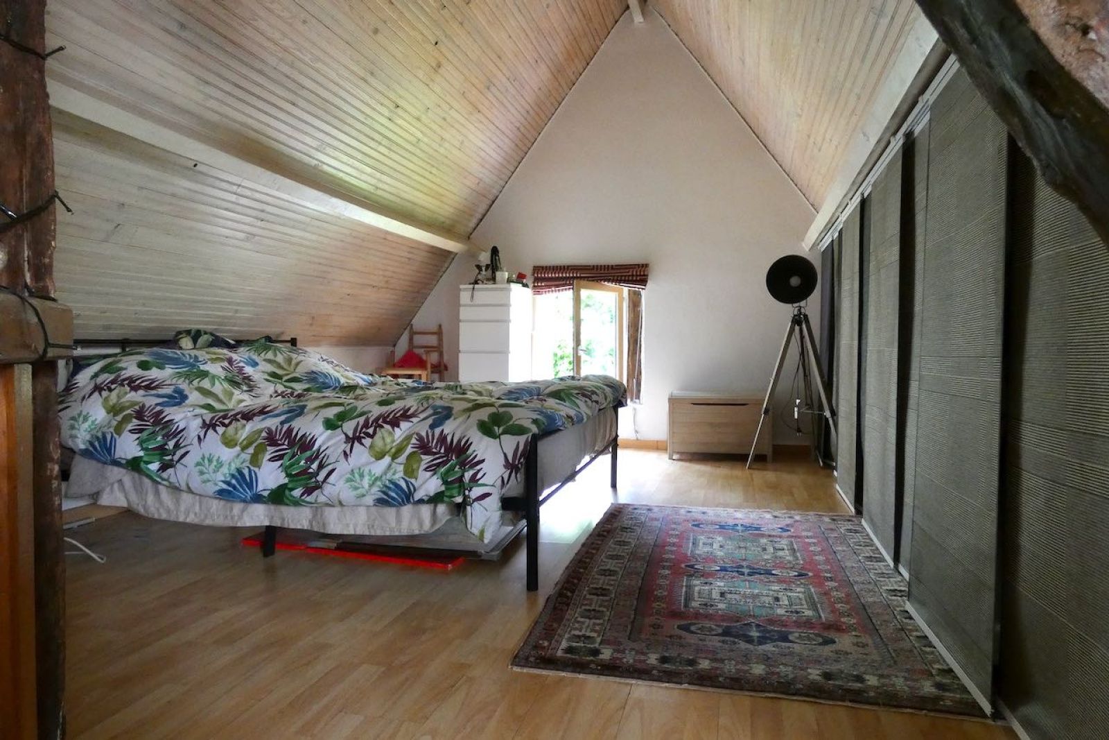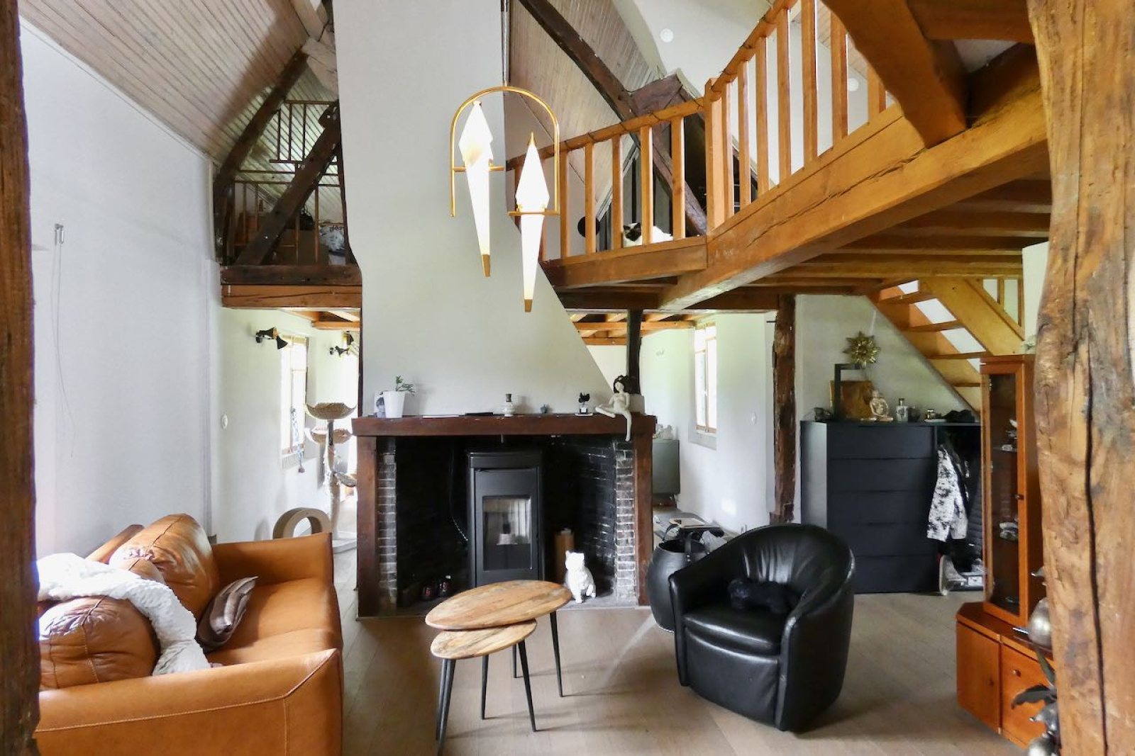 Le Fidelaire (27190)Maison à colombages de charme sur un très beau parc de 8 042 m2 comprenant : cuisine americaine, salon avec poêle à granulés et salle à manger, salle d' eau, wc séparés. A l'étage, 2 chambres ouvertes sur mezzanine. Toiture en tuiles de pays. Double vitrage bois. Assainissement individuel avec tertre. Fibre installée. Sur le terrain clos de haies, un cabanon en bois. Aucun vis à vis, au calme, proche foret. Petits commerces à 3 km et gare de Conches (axe Paris St Lazare) à 14 km.