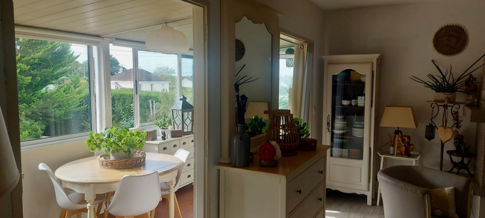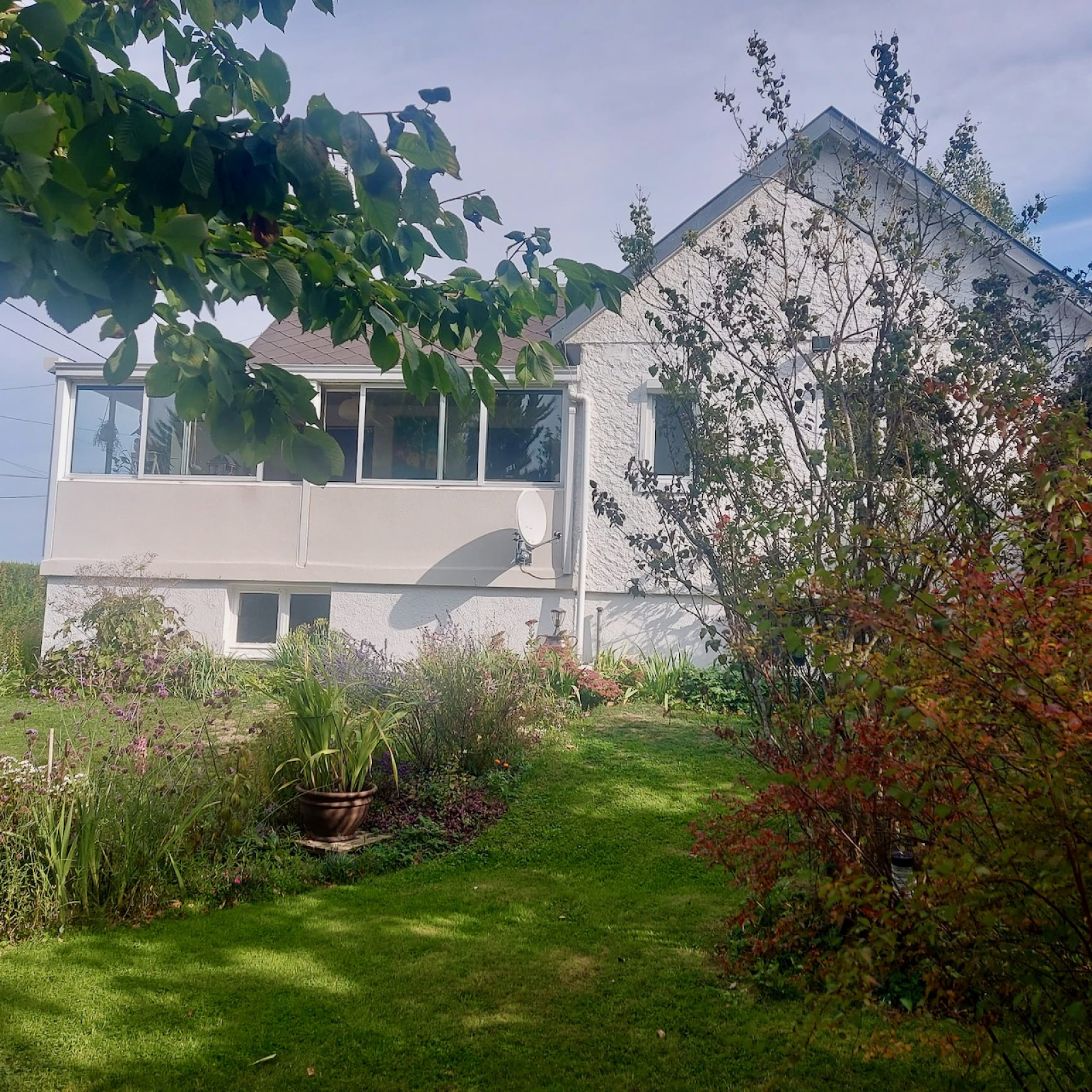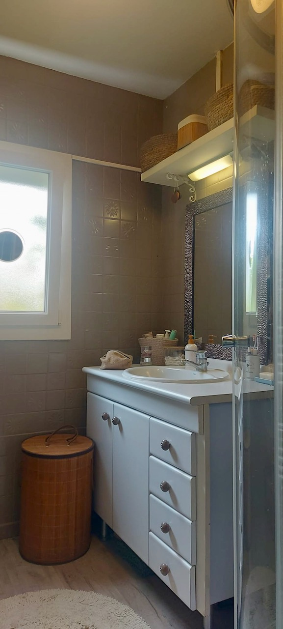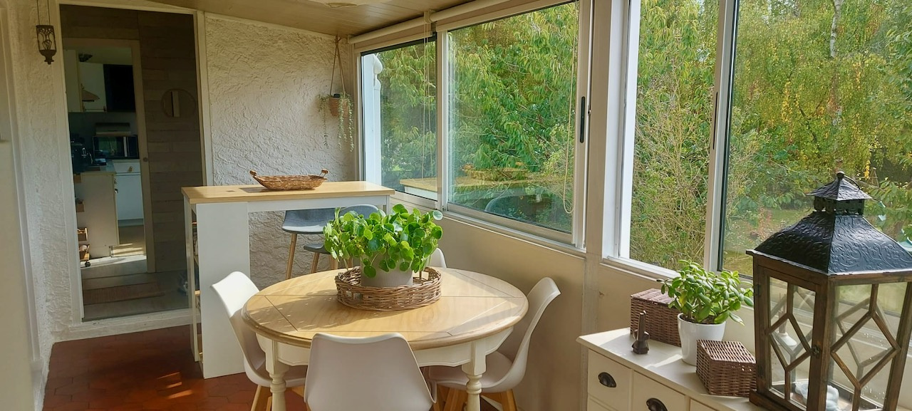 Le Fidelaire (27190)Sur la commune du Fidelaire, petit village avec écoles et commerces situé à moins de 10 min de Conches à proximité de la forêt. Maison de 88 m2 à l'atmosphère apaisante édifiée sur un charmant terrain de 1 300 m2. Ce jardin vous offrira un joli espace de détente ombragé et fleuri. L'entrée dans la maison se fait par une véranda ayant usage de salle à manger. La vue dégagée sur le jardin y est très reposante. La véranda s'ouvre ensuite sur le séjour-salon avec cheminée insert. Un dégagement dessert la cuisine aménagée et équipée, 2 chambres, la salle d'eau et un WC séparé. En rez-de-jardin et accessible par le séjour, vous trouverez une belle chambre de 20 m2. S'ensuivent une buanderie, un atelier et une partie garage. Fenêtres double vitrage, volets électriques, assainissement individuel. Fibre. Abri de jardin sur le terrain.