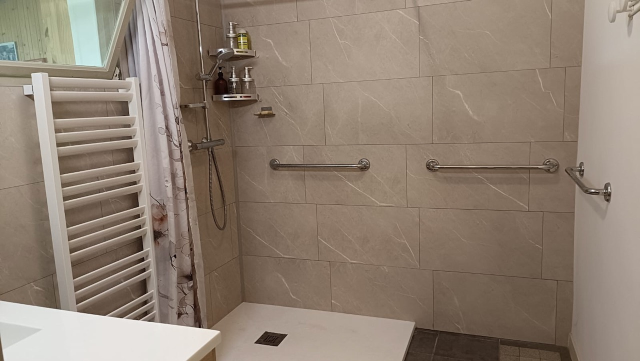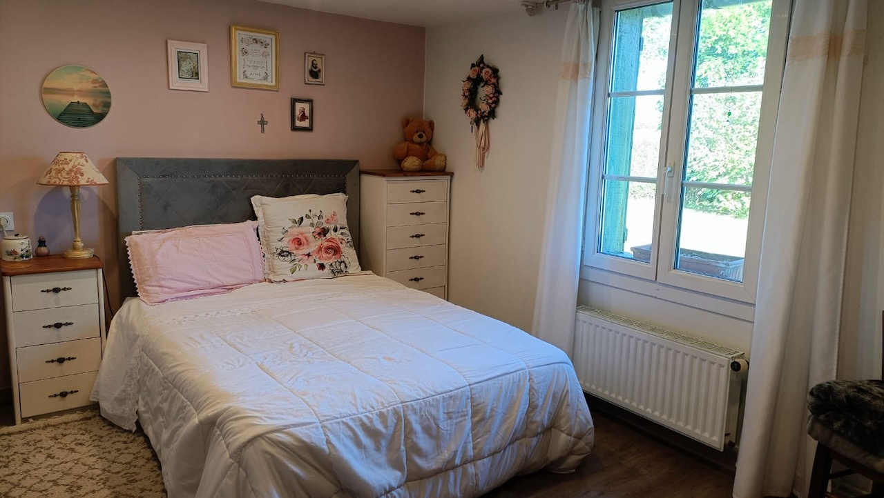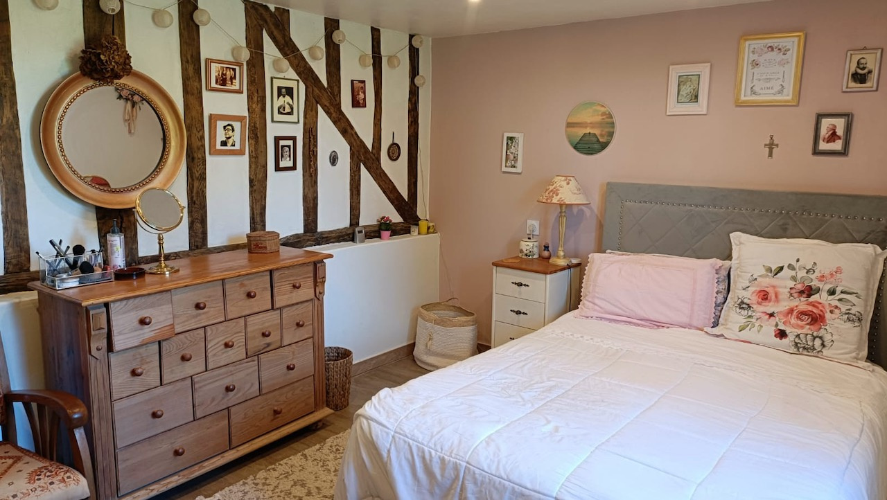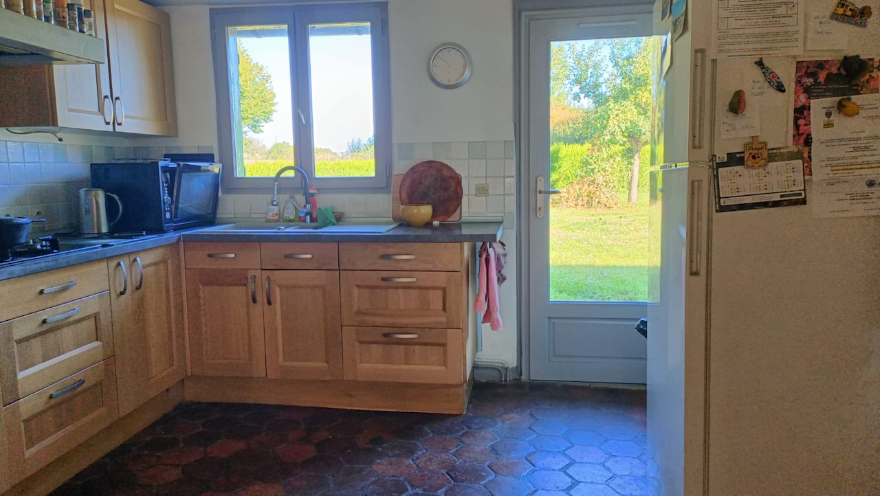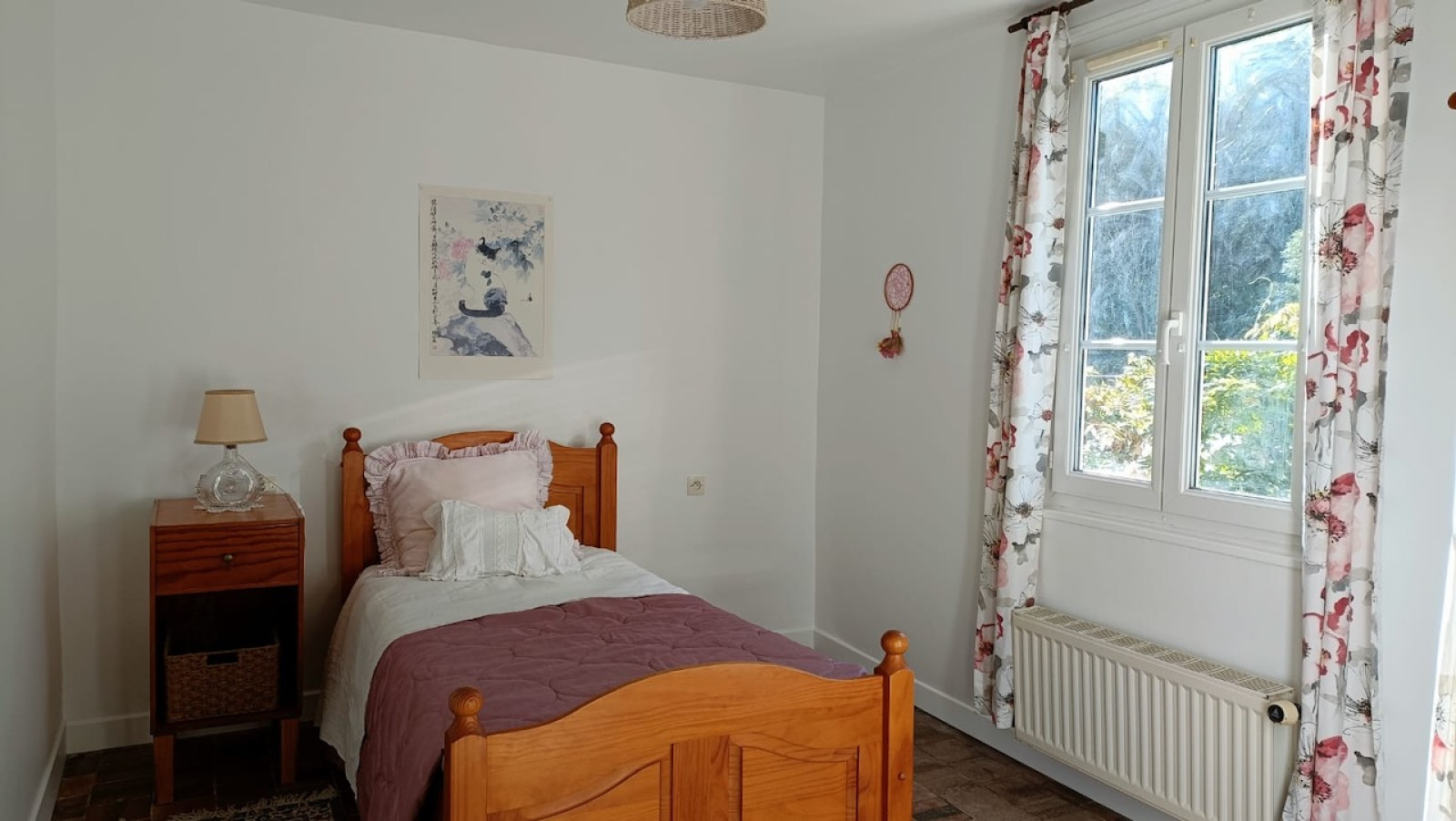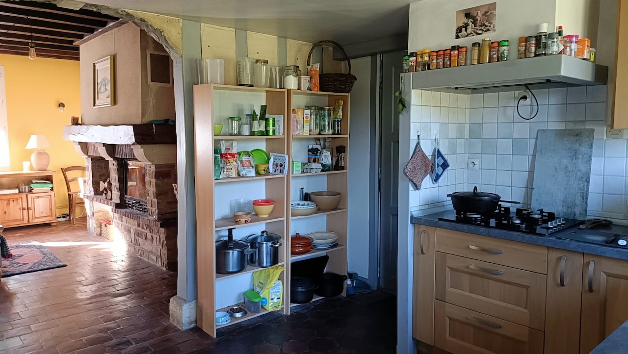 Le Fidelaire (27190)Sur la commune du Fidelaire, maison à colombages de plain pied, parfaitement adaptée aux personnes à mobilité réduite. Dépendance de plain pied avec studio de 46 m2 également accessible PMR. La maison principale, de 95 m2, se compose d'une cuisine équipée, une arrière cuisine - buanderie, un espace repas avec baie donnant sur le jardin, un séjour double avec cheminée insert, deux chambres, une salle d'eau avec douche à l'italienne. Cellier attenant avec accès à un beau grenier aménageable. Chauffage gaz, fenêtres double vitrage, assainissement par fosse toutes eaux. L'annexe abrite un studio permettant une seconde habitation (cuisine ouverte sur vaste pièce à vivre et salle d'eau réalisée pour PMR) et un garage de plus de 40 m2. Bûcher à l'arrière. Autre petit garage sur le terrain. L'ensemble sur un terrain de 1476 m2 avec fruitiers . Idéal pour un artisan souhaitant allier son activité et sa résidence (visibilité).