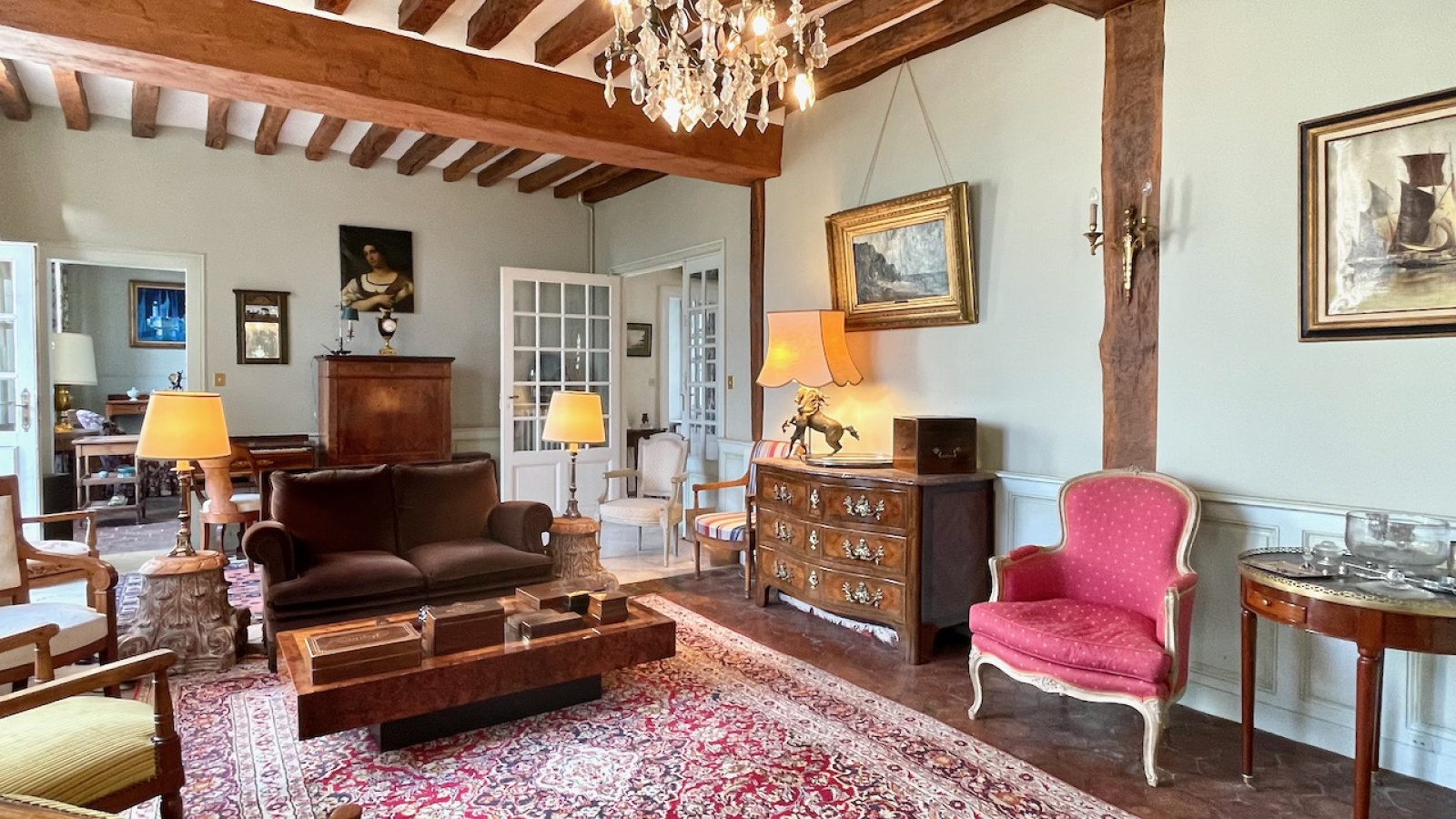 Exposée Est-Ouest, la propriété chargée d'histoire offre de beaux volumes avec des matériaux authentiques. D'une surface de 183 m2, la maison principale s'ouvre au rdc sur un vestibule d'entrée desservant 2 pièces de réception de 30 m2 avec cheminées, poutres et tomettes, une cuisine dinatoire, une arrière cuisine, un local chaufferie, un bureau et WC indépendant. À l'étage sur parquet massif, une pièce palière distribue 3 chambres (dont 2 de 20 m2) et une salle de bains avec WC. Au 2d, un grenier aménageable avec sa superbe charpente offre un très beau potentiel d'agrandissement. S'ajoutent une cave voutée et un garage attenant. Huisseries en bois simple vitrage. Toitures en petites tuiles. Assainissement individuel. Fibre.