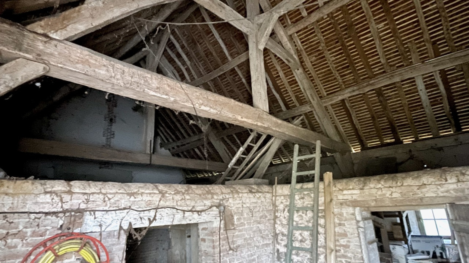 En dépendance : une belle grange abritant deux fruitières, un atelier et plusieurs remises. A sa suite, une maison de 3 pièces à rénover d'environ 45 m2. Une belle cave vient compléter cette partie. Vous serez à 1 km d'une gare axe Paris St Lazare et commerces de proximité.