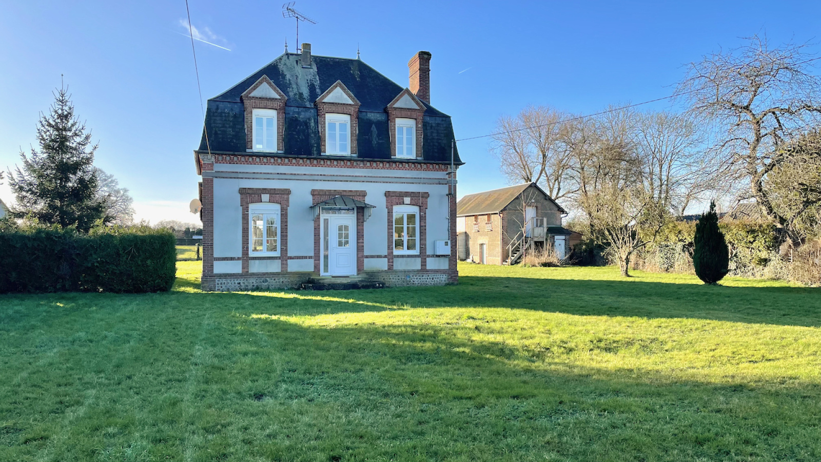 La Vieille-Lyre (27330)A 15 minutes de Conches et à 1h30 de Paris dans le village de la Vieille Lyre, charmante maison de bourg et dépendance édifiées sur un terrain clos de 1 867 m2. La maison comprend au rdc une lumineuse pièce de vie avec un salon sur parquet et une cuisine équipée ouverte, WC séparé et une terrasse couverte exposée Sud. A l'étage, un palier dessert 3 chambres et salle de bains avec WC. Des travaux de rénovation ont été réalisés récemment. Chauffage électrique. Double vitrage PVC. Electricité refaite. Raccordée au tout à l'égout. Fibre déployée.