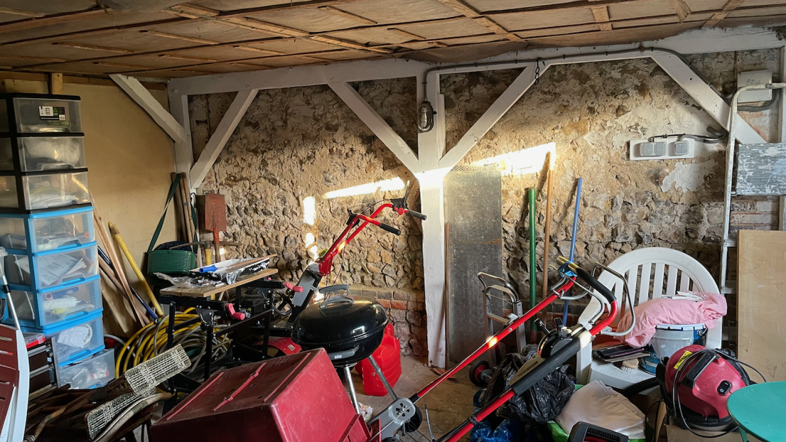 En dépendance : un batiment abritant garage sur pavés avec grenier au-dessus, cave et par escalier extérieur un studio à finir d'aménager avec salle de douche et WC séparé. Terrain de 1 867 m2. A pied des commerces et école du village.