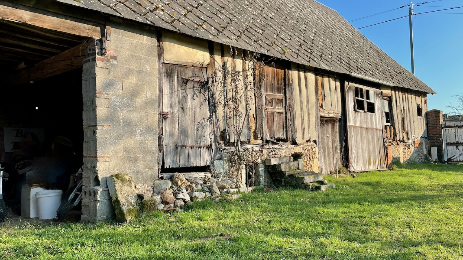 Collandres-Quincarnon (27190)une grange et un pressoir à réhabiliter avec eau et électricité sur 1060 M2 clos de murs.