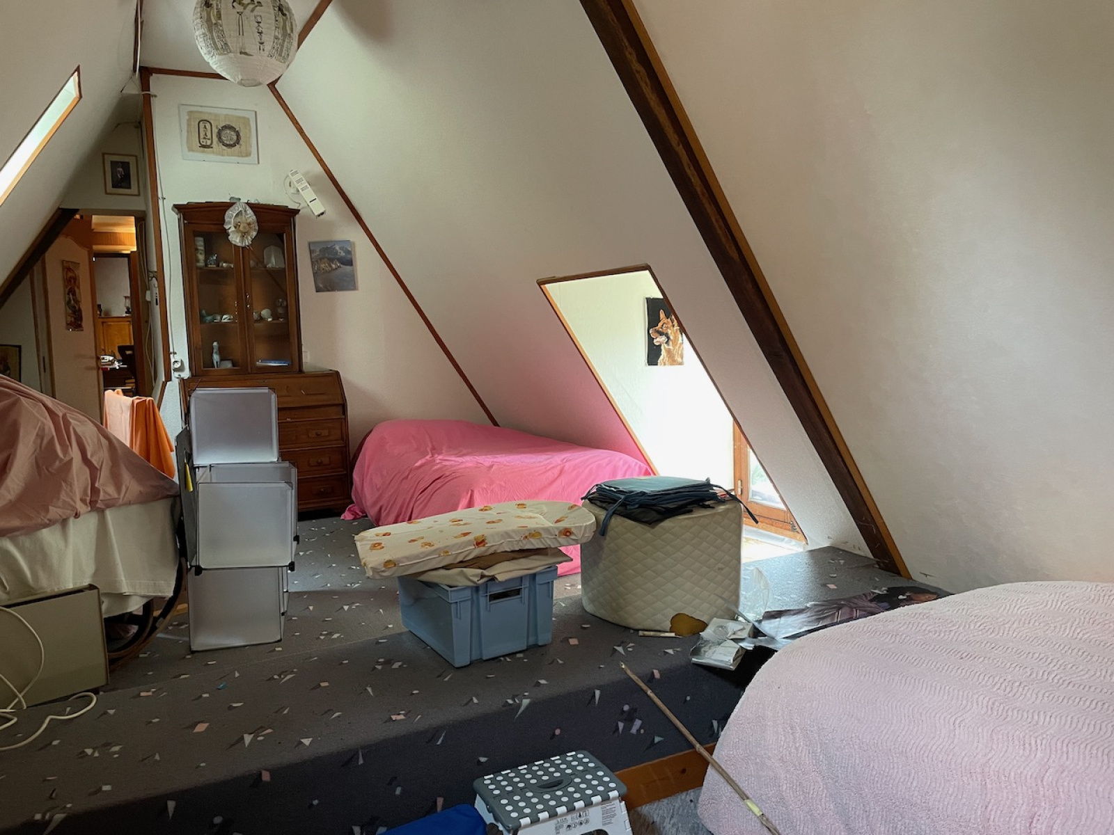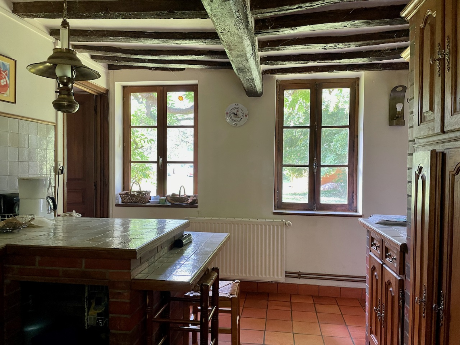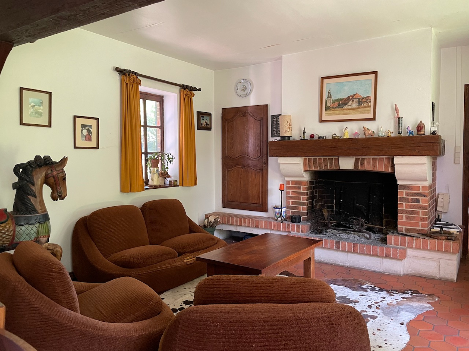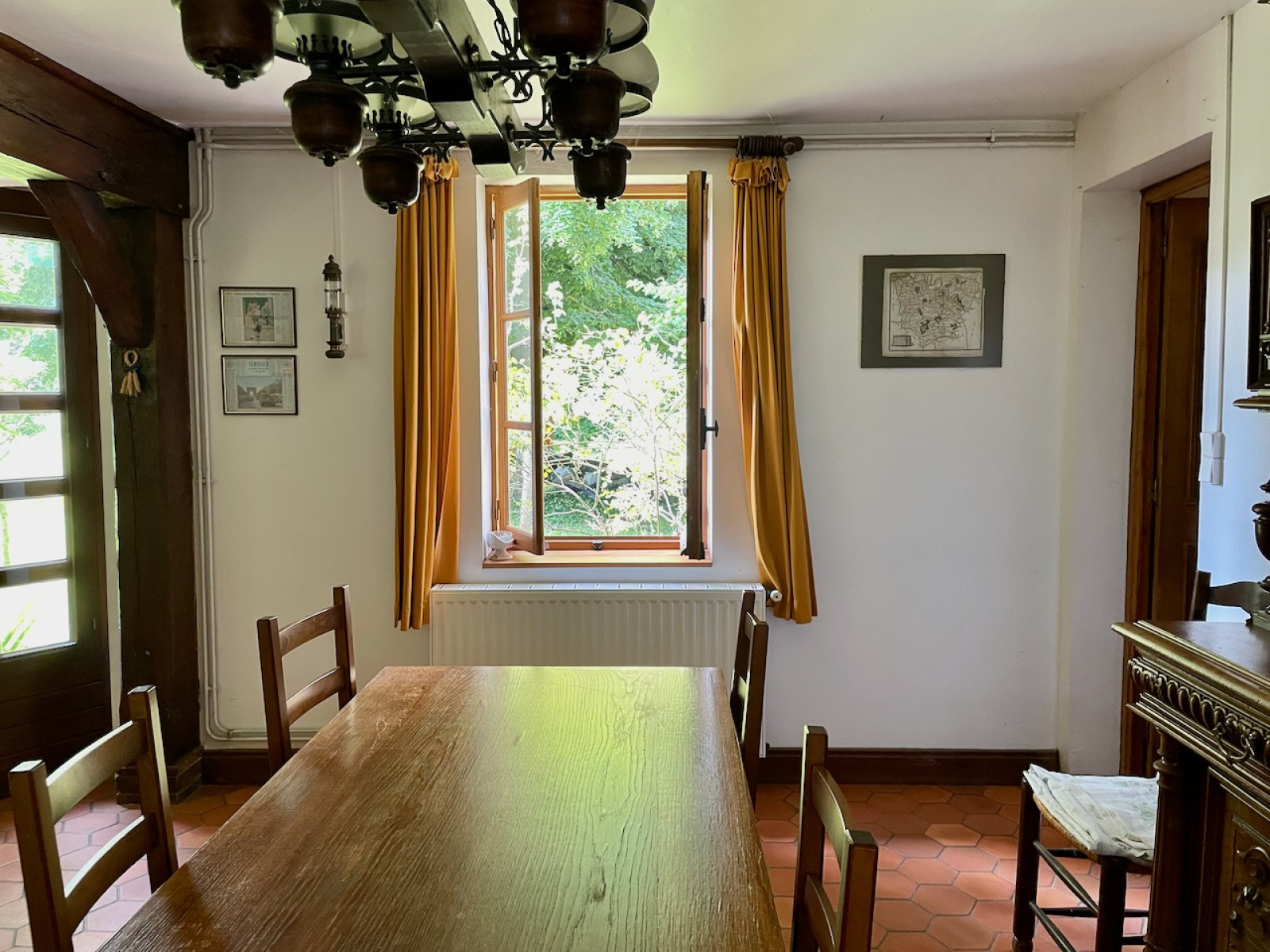 La Houssaye (27410)Vallée de la Risle, à proximité du charmant village de la Ferrière sur Risle, maison normande mitoyenne d'un côté implantée sur un joli terrain arboré de 1 840m2, sans vis à vis. La maison est composée au rdc d'une entrée, une cuisine équipée avec accès direct au jardin, un salon avec cheminée de 32 m2, deux chambres, une véranda, une petite salle d'eau, wc et un cellier. A l'étage mansardé : un pallier utilisé en bureau dessert deux chambres en enfilade. Chauffage gaz (citerne enterrée). Fenêtres bois simple et double vitrage. Assainissement par fosse septique. Cabanon bois de jardin sur le terrain. Fibre déployée.