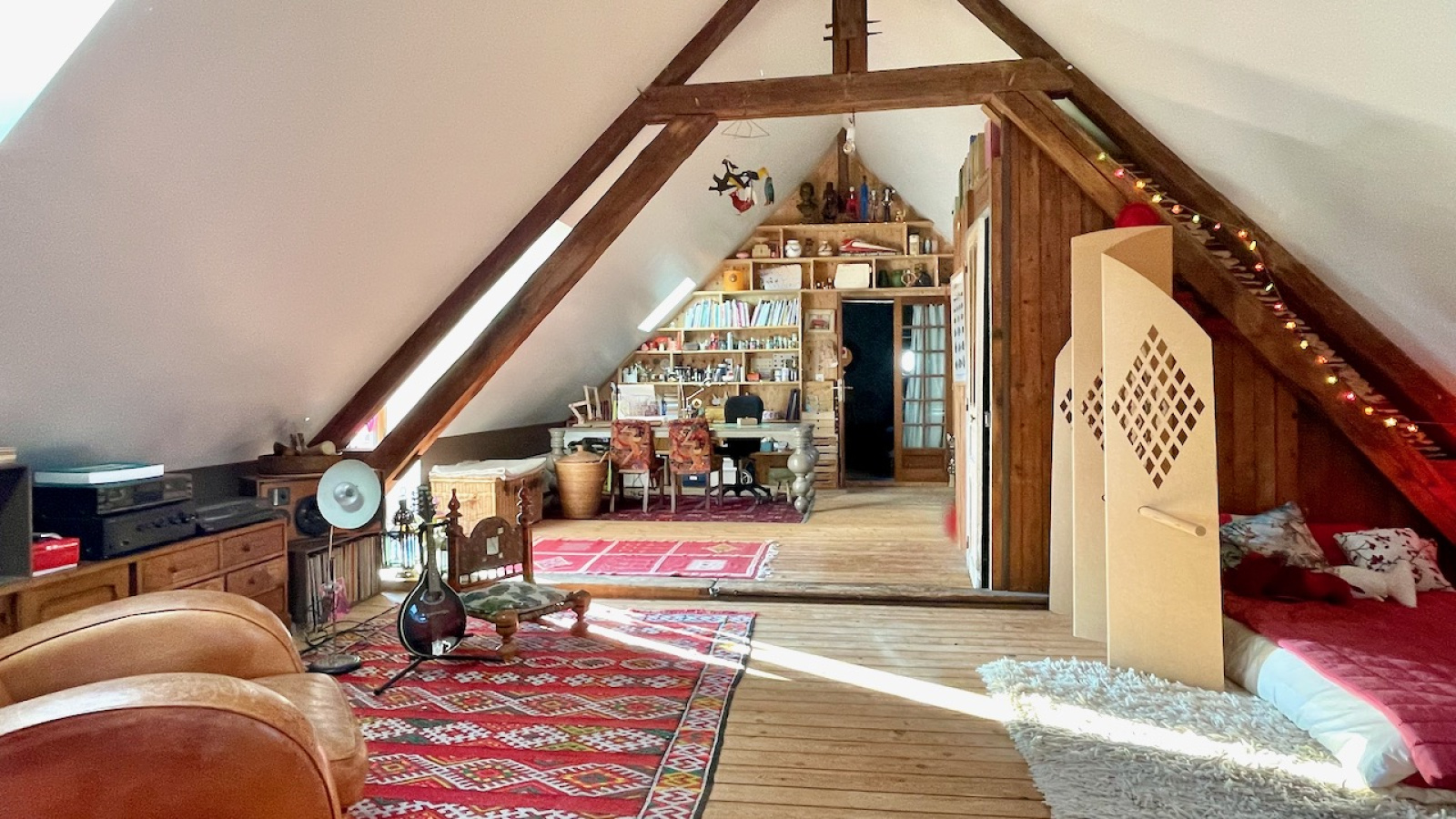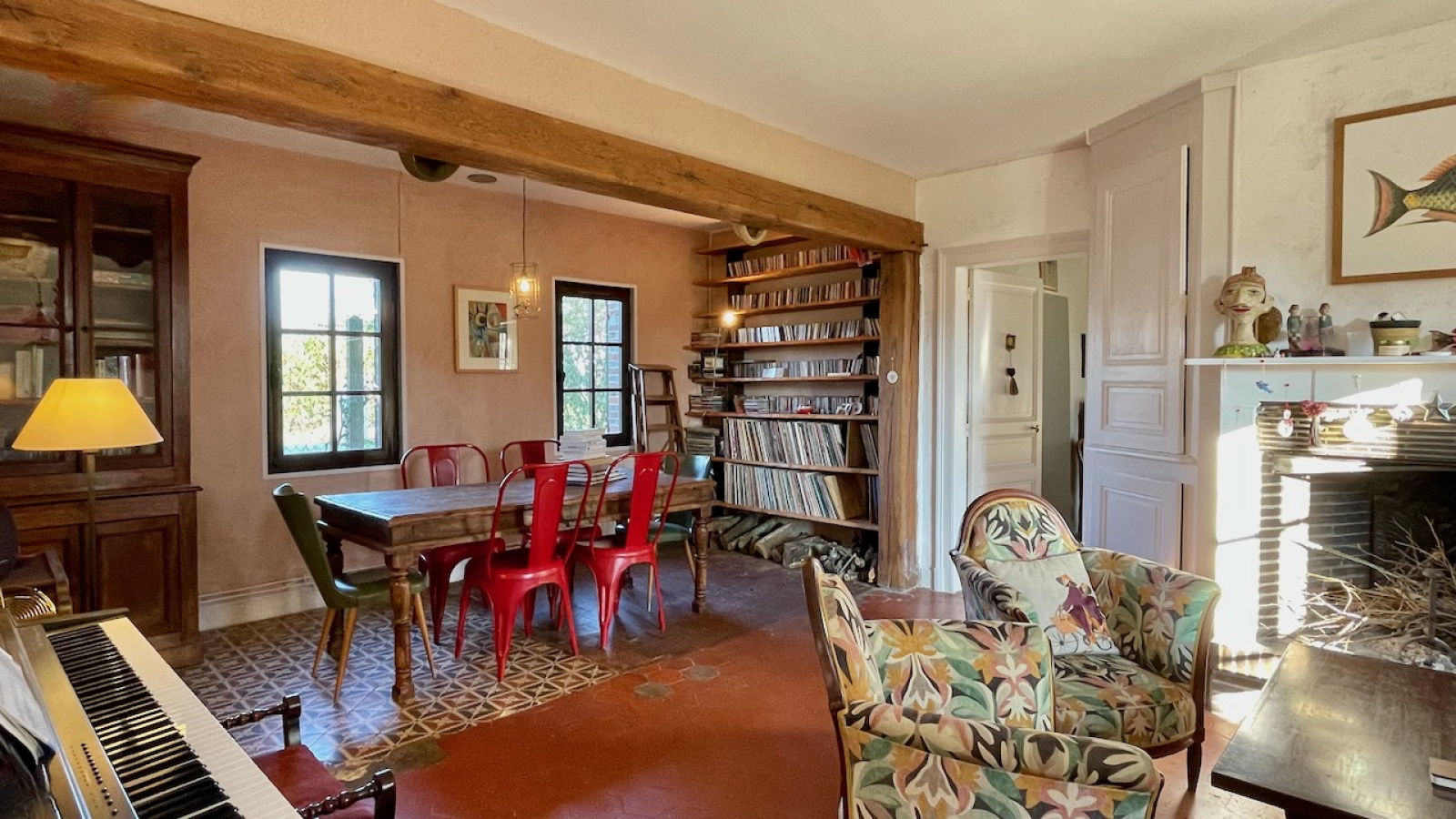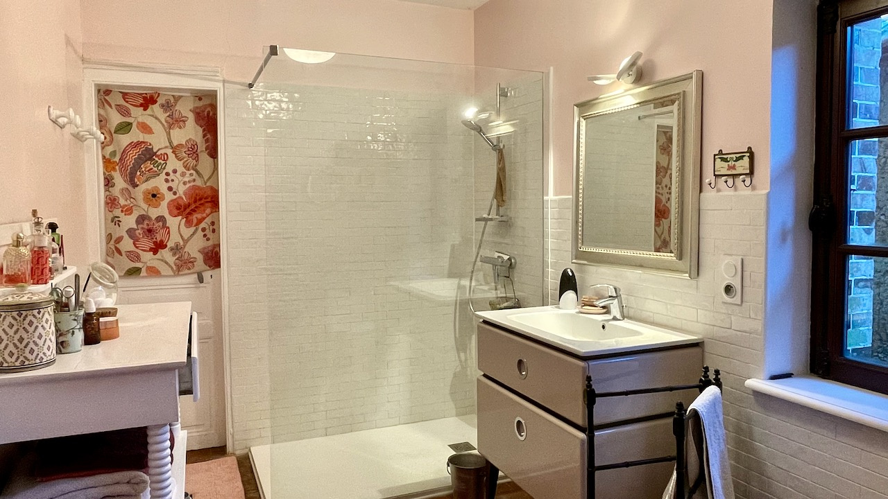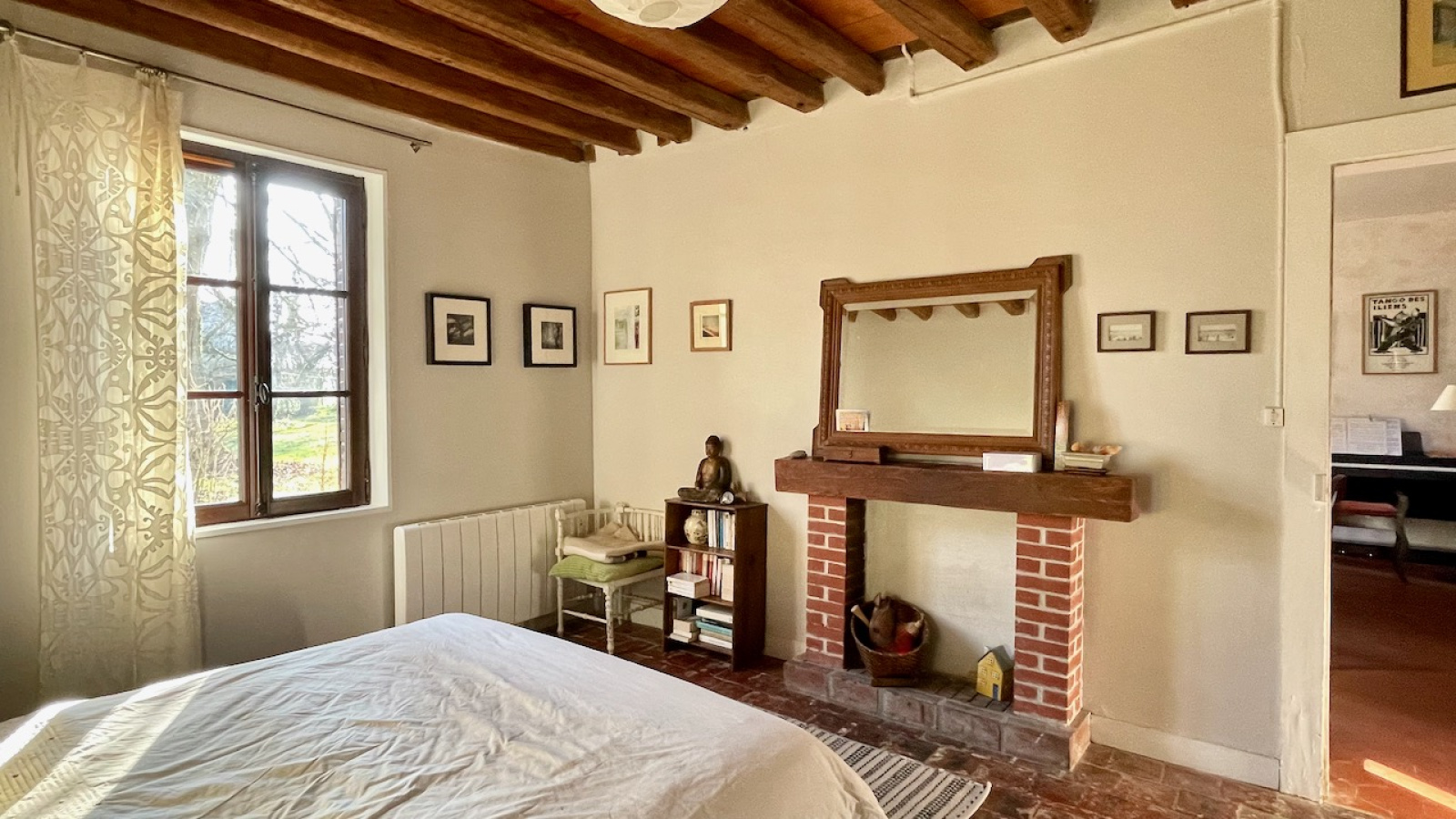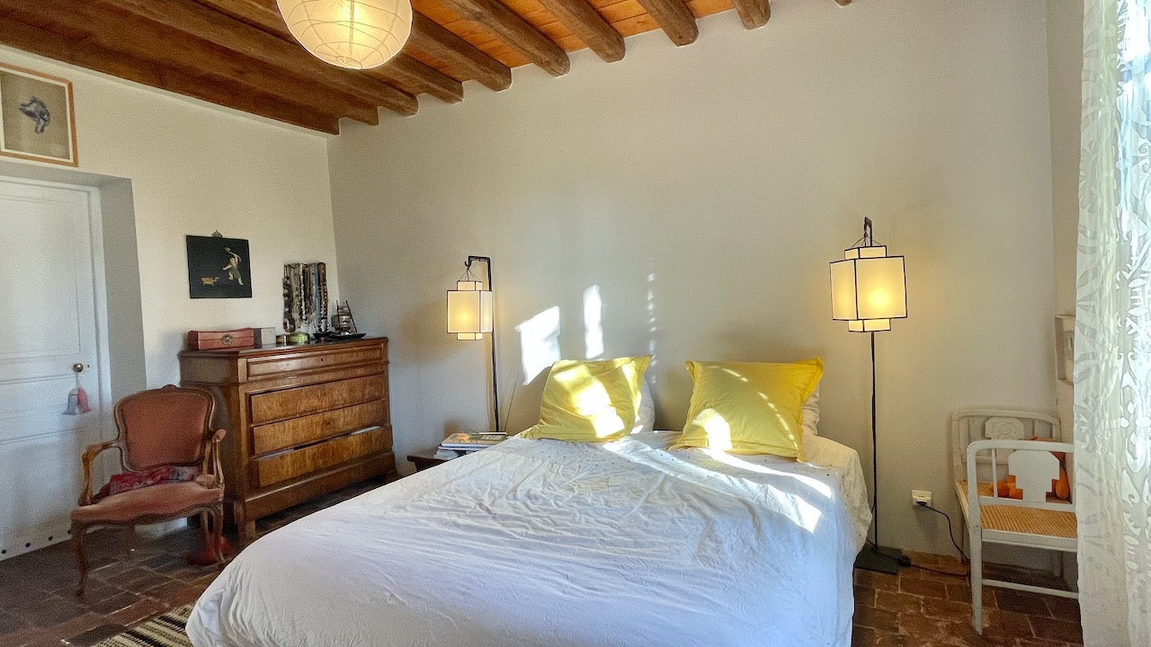 La maison principale bénéficie d'une vie de plain pied avec de beaux matériaux. Au rdc l'entrée distribue, un double salon traversant avec cheminée, une chambre avec dressing attenant, un salon avec cheminée, une cuisine équipée dinatoire donnant sur la terrasse, une buanderie/cellier et une salle d'eau avec WC. A l'étage sur parquet, une grande pièce palière accueillant différents espaces et 2 grandes chambres. Chauffage électrique et fenêtres en chêne double vitrage. Assainissement individuel récent.