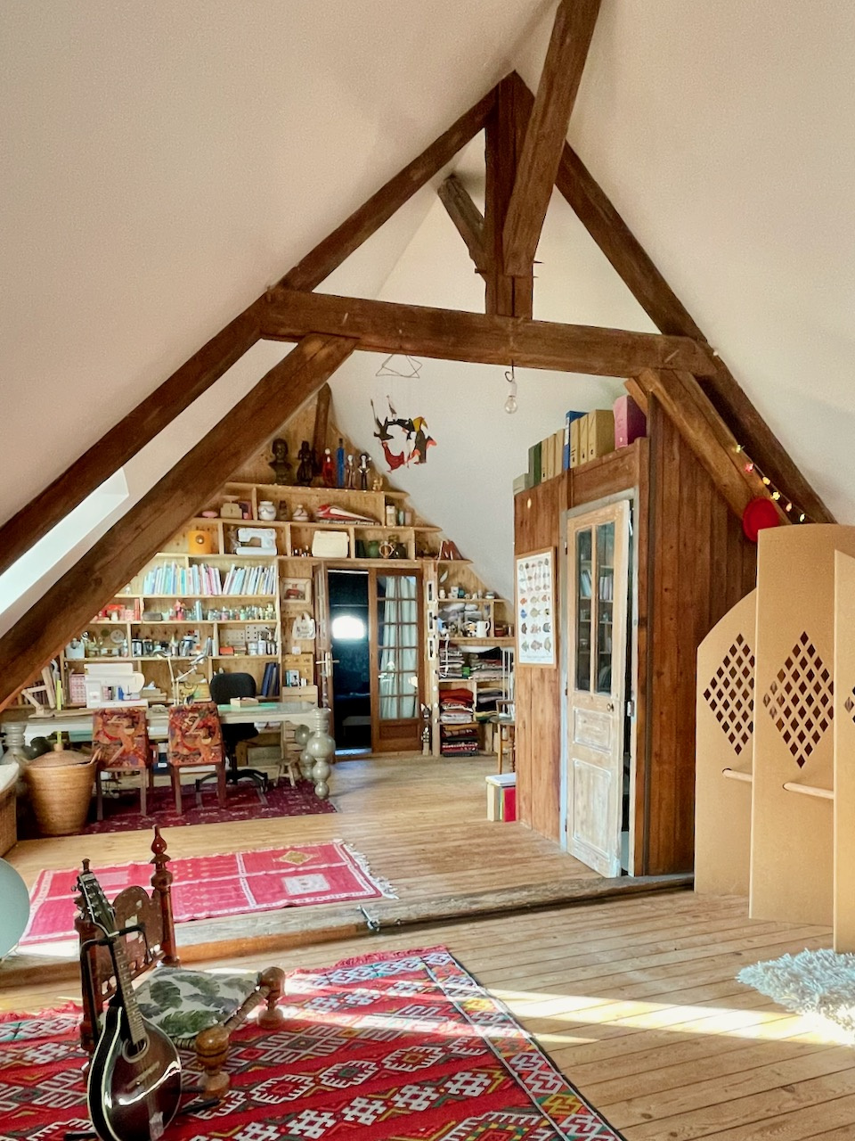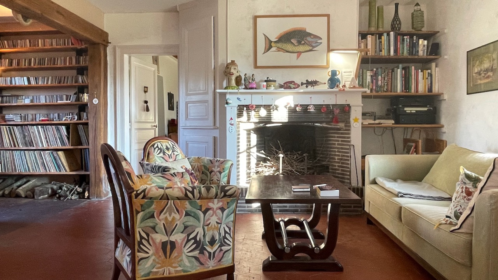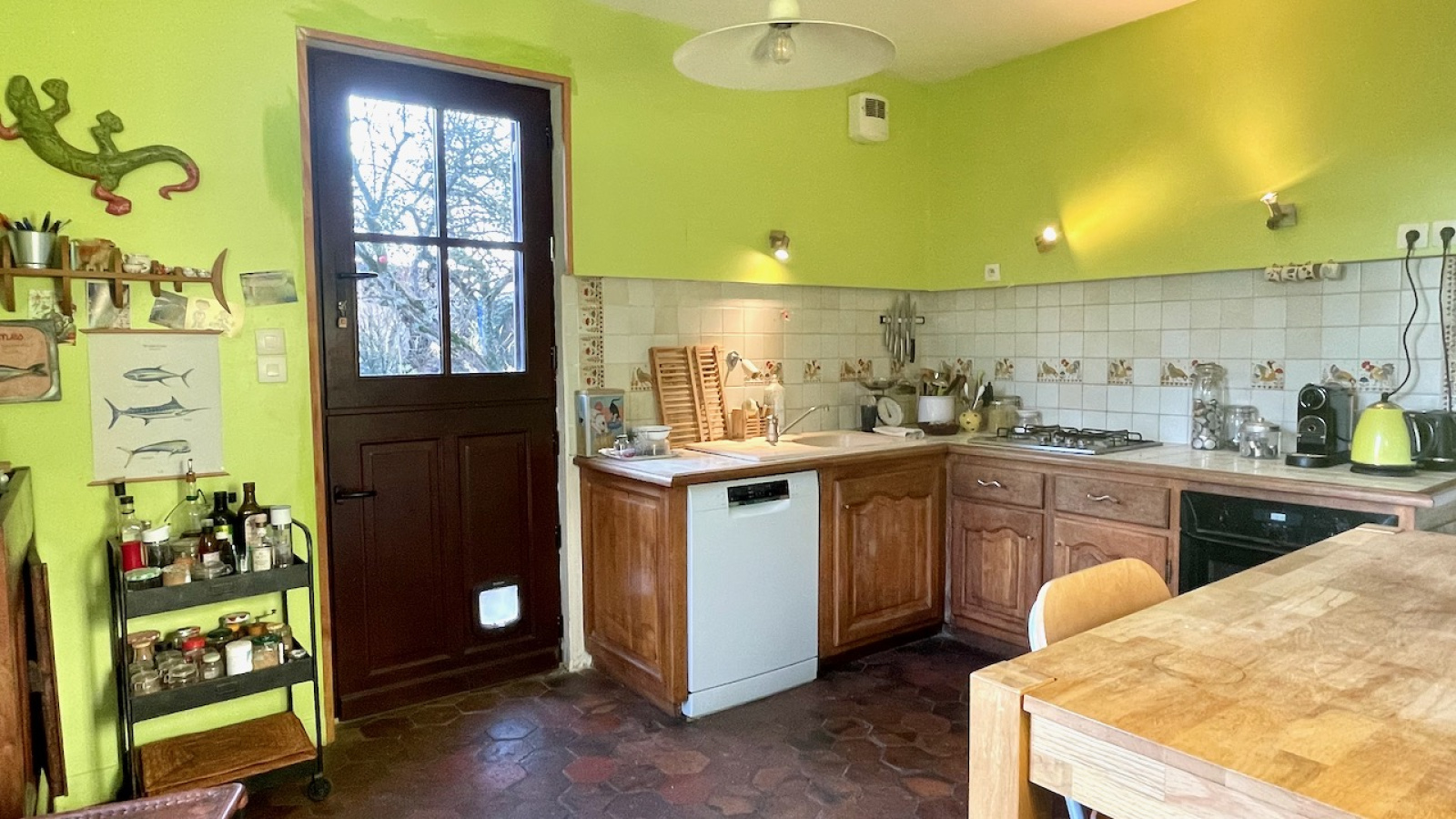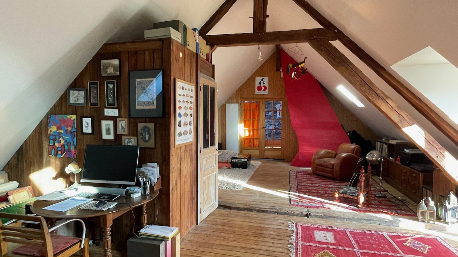 La maison principale bénéficie d'une vie de plain pied avec de beaux matériaux. Au rdc l'entrée distribue, un double salon traversant avec cheminée, une chambre avec dressing attenant, un salon avec cheminée, une cuisine équipée dinatoire donnant sur la terrasse, une buanderie/cellier et une salle d'eau avec WC. A l'étage sur parquet, une grande pièce palière accueillant différents espaces et 2 grandes chambres. Chauffage électrique et fenêtres en chêne double vitrage. Assainissement individuel récent.