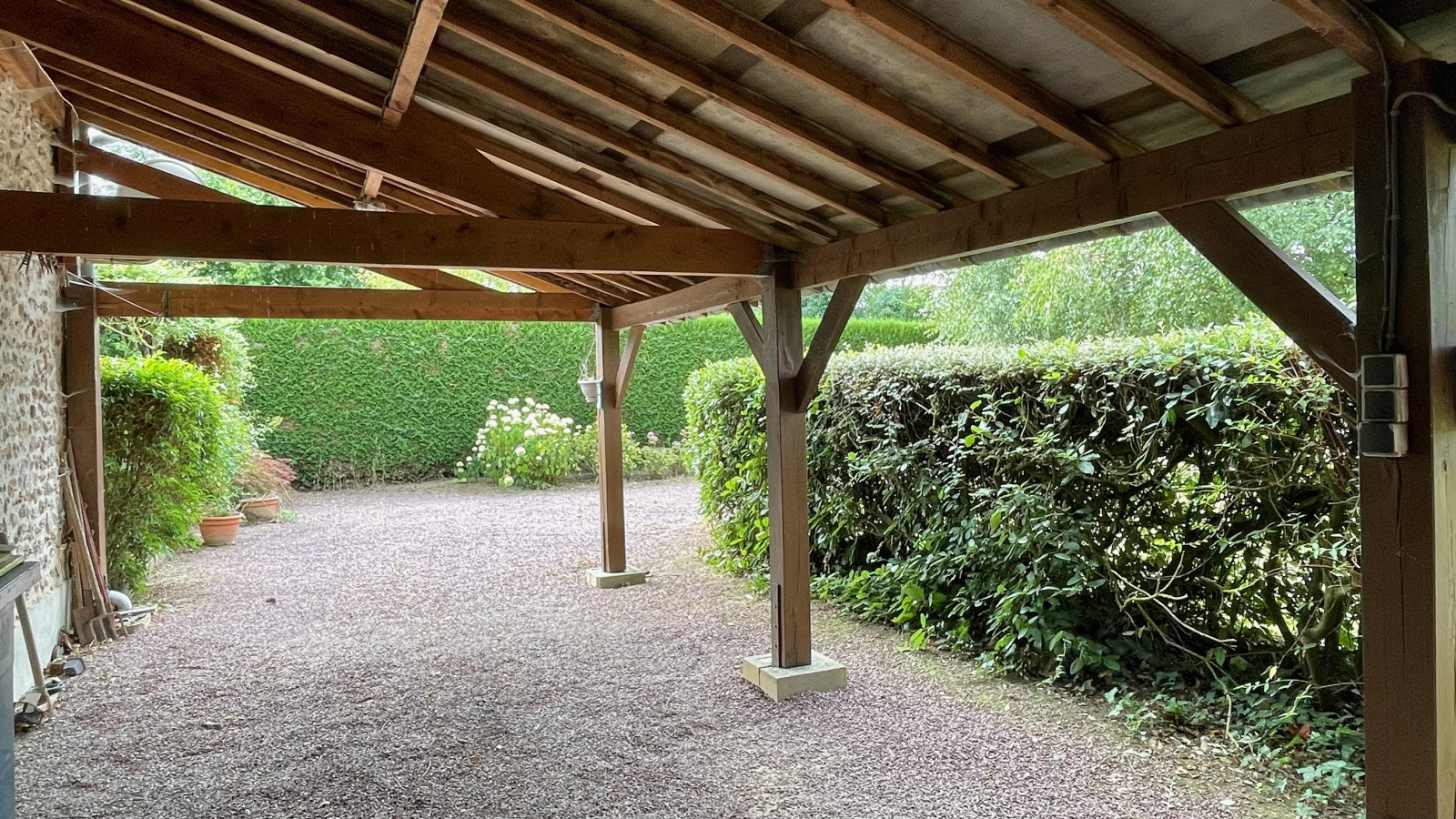 Le terrain de 880 m2 est clos de murs, doté d'un portail électrique et une terrasse plein Sud. Couverture en tuiles de pays. Assainissement individuel. Fibre déployée.