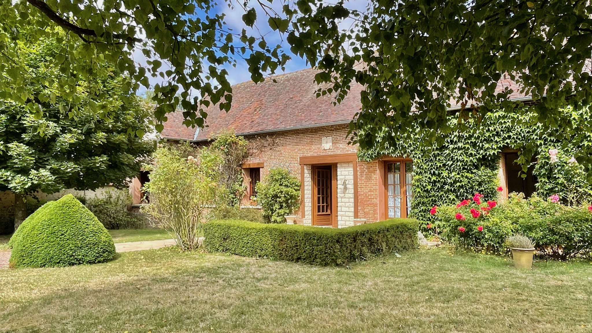 Grossoeuvre (27220)A 10 km d'Evreux, dans le village de Grossoeuvre au calme et sans vis à vis. Cet ancien pressoir transformé en une charmante maison vous offre une vie entièrement de plain pied. L'entrée distribue un vaste séjour-salon avec cheminée ouverte, une cuisine séparée aménagée et un cellier puis 3 chambres, une salle de bains avec baignoire et douche, une buanderie et 2 WC séparés. Le grenier aménageable offre un fort potentiel d'agrandissement. Attenant à la maison, un garage carrelé et un carport pouvant abriter 2 véhicules. Chauffage électrique et fenêtres double vitrage bois.