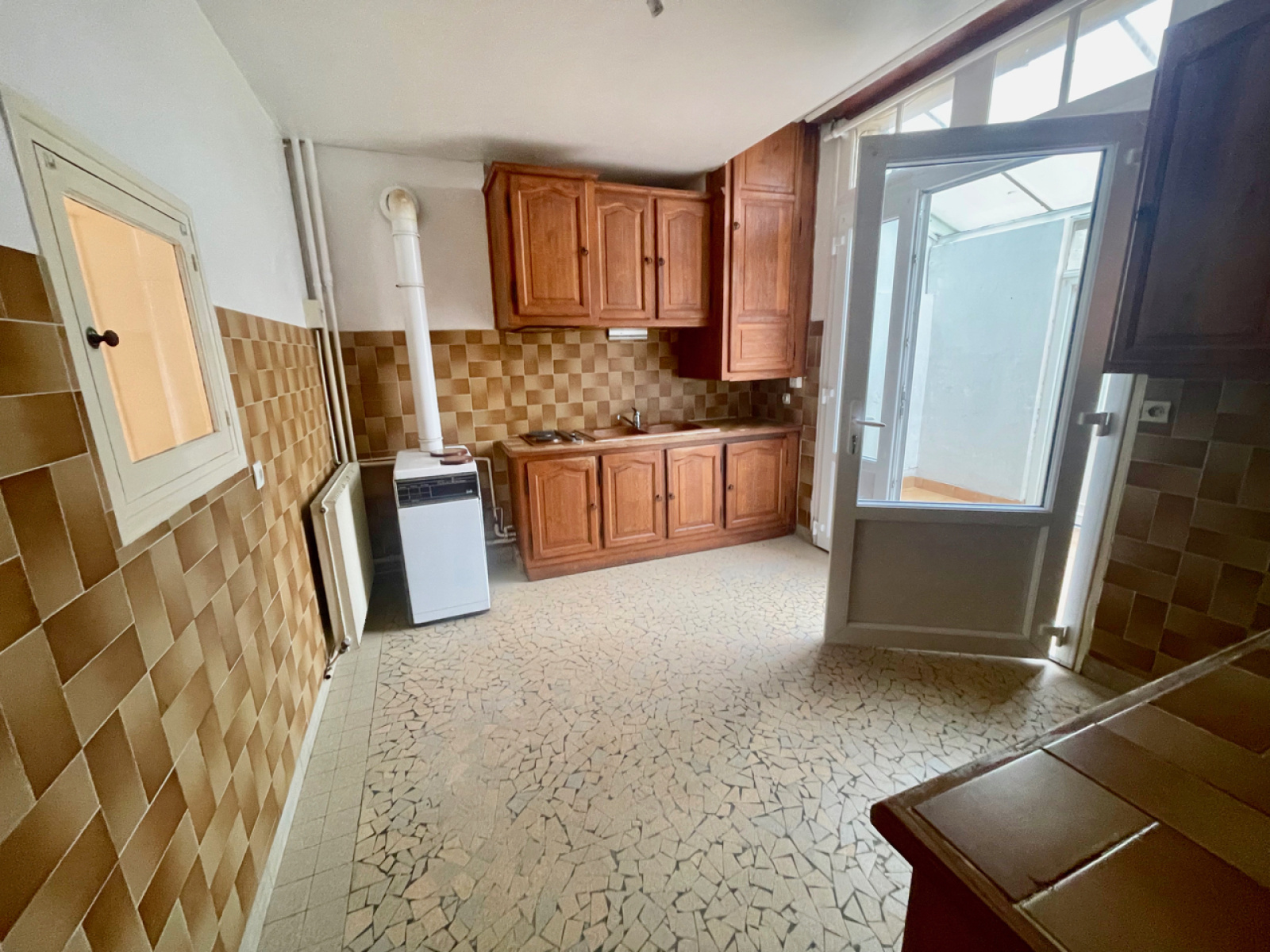 La Ferrière-sur-Risle (27760)Dans le centre de la Ferriere sur Risle, bourg avec commerces, maison en silex édifiée sur un terrain de 302 m2. La maison sur trois niveaux se compose au rdc d'un salon, d'une cuisine donnant sur une véranda et Wc séparé. Au 1er étage, un palier distribue deux chambres, une salle d'eau et Wc séparé. Au 2e étage, deux chambres en enfilade. Fenêtres PVC double vitrage. Chauffage central au fioul. Sur le terrain, un garage et un atelier.