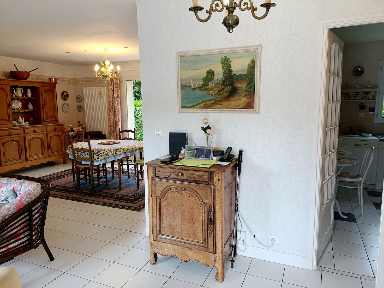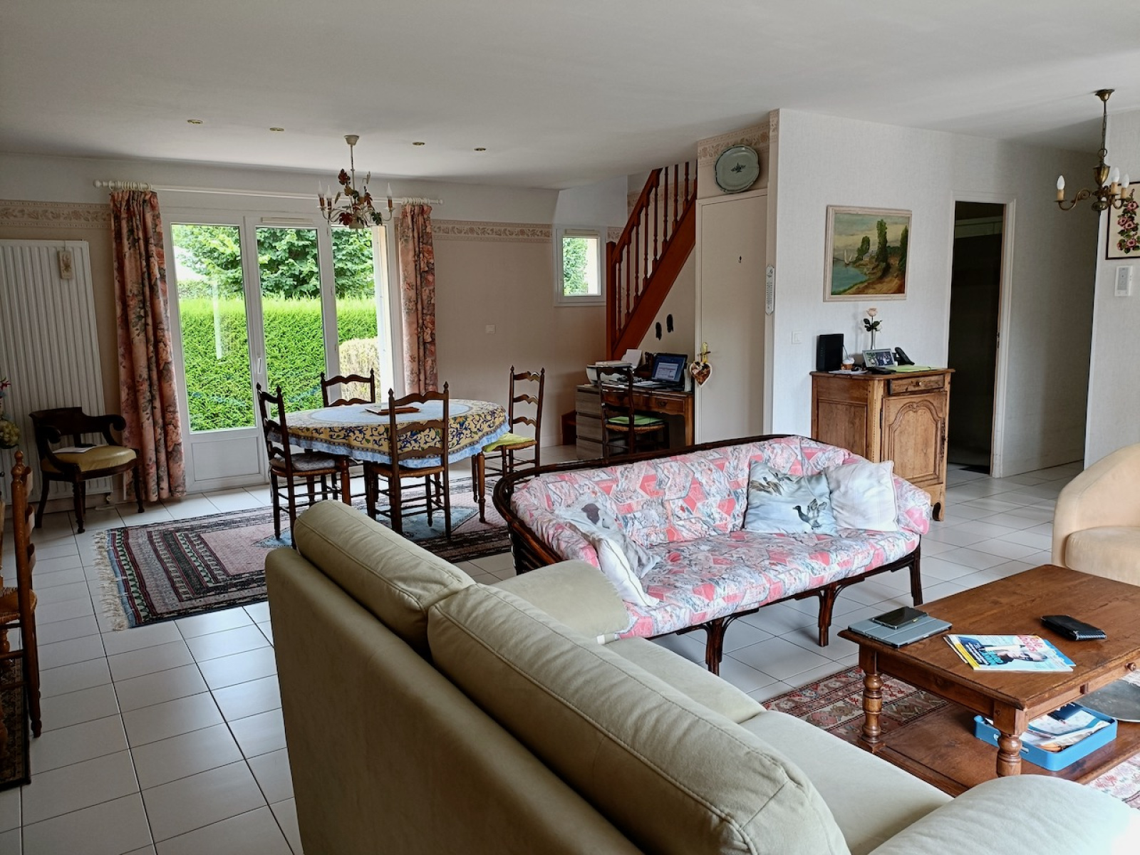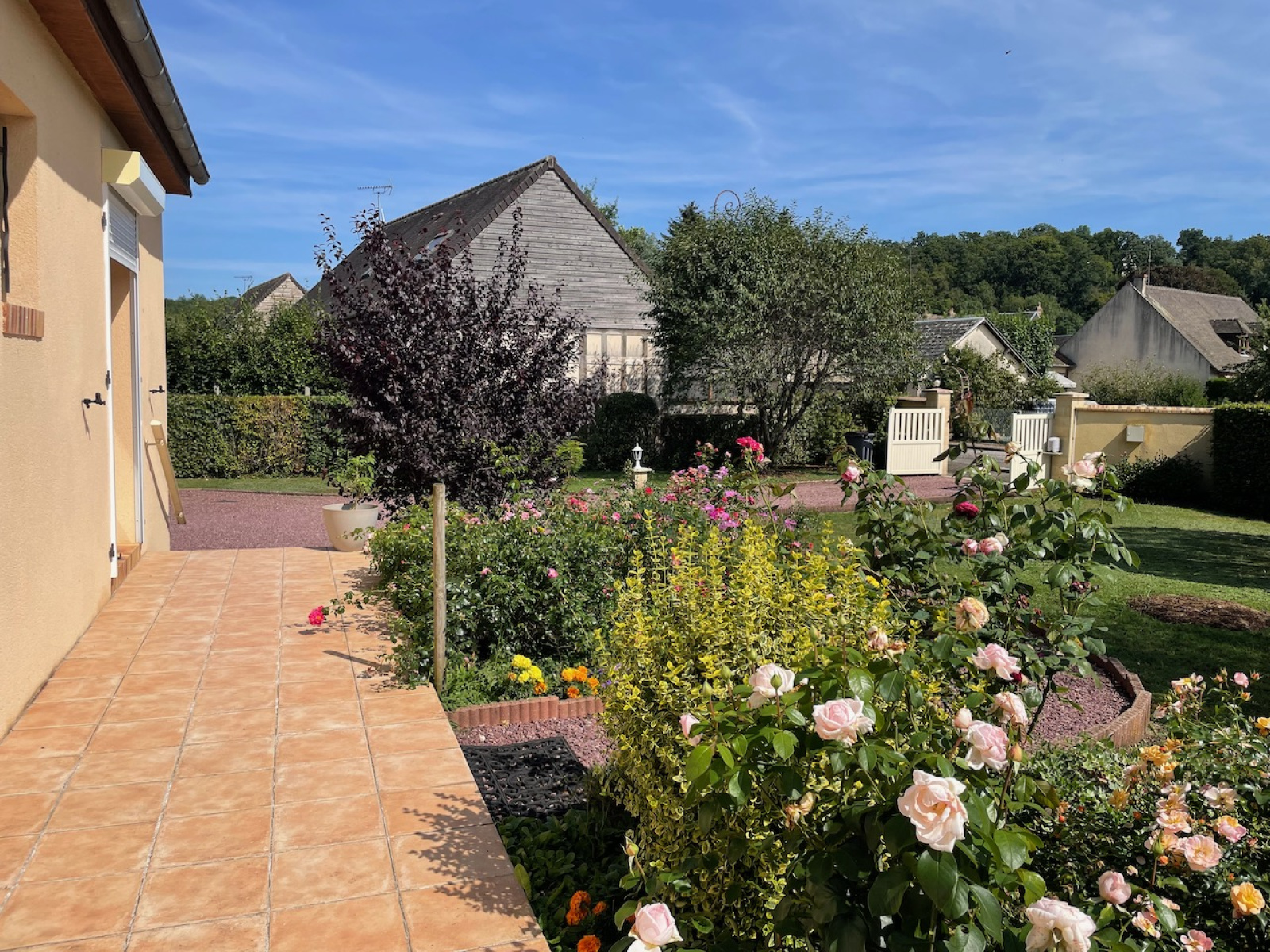La Ferrière-sur-Risle (27760)Dans le charmant village de La Ferrière sur Risle, proche de ses commerces, construction de 1999 sur 120 m2, en parfait état sur un terrain clos de 1106 m2, avec portail automatisé. La maison comprend au rdc : entrée avec placard s'ouvrant sur un lumineux double séjour de 39 m2 (conduit de cheminée existant) donnant sur la terrasse (store banne électrique), une cuisine équipée, un dégagement vers une chambre de plain pied avec placard, une salle de bain avec placard (douche + baignoire), wc séparés. A l'étage, une pièce palière distribue 2 belles chambres ainsi qu'un cabinet de toilette (pouvant accueillir une douche supplémentaire). Garage attenant avec porte automatisée. Fenêtres double vitrage PVC et volets roulants électriques, chauffage fioul au rdc (chaudière de 2018), électrique à l'étage. Deux terrasses complètent et prolongent la pièce de vie, exposées sud-est et ouest. Dans le jardin, un chalet bois pour ranger les outils et mobilier extérieur. Fibre déployée.