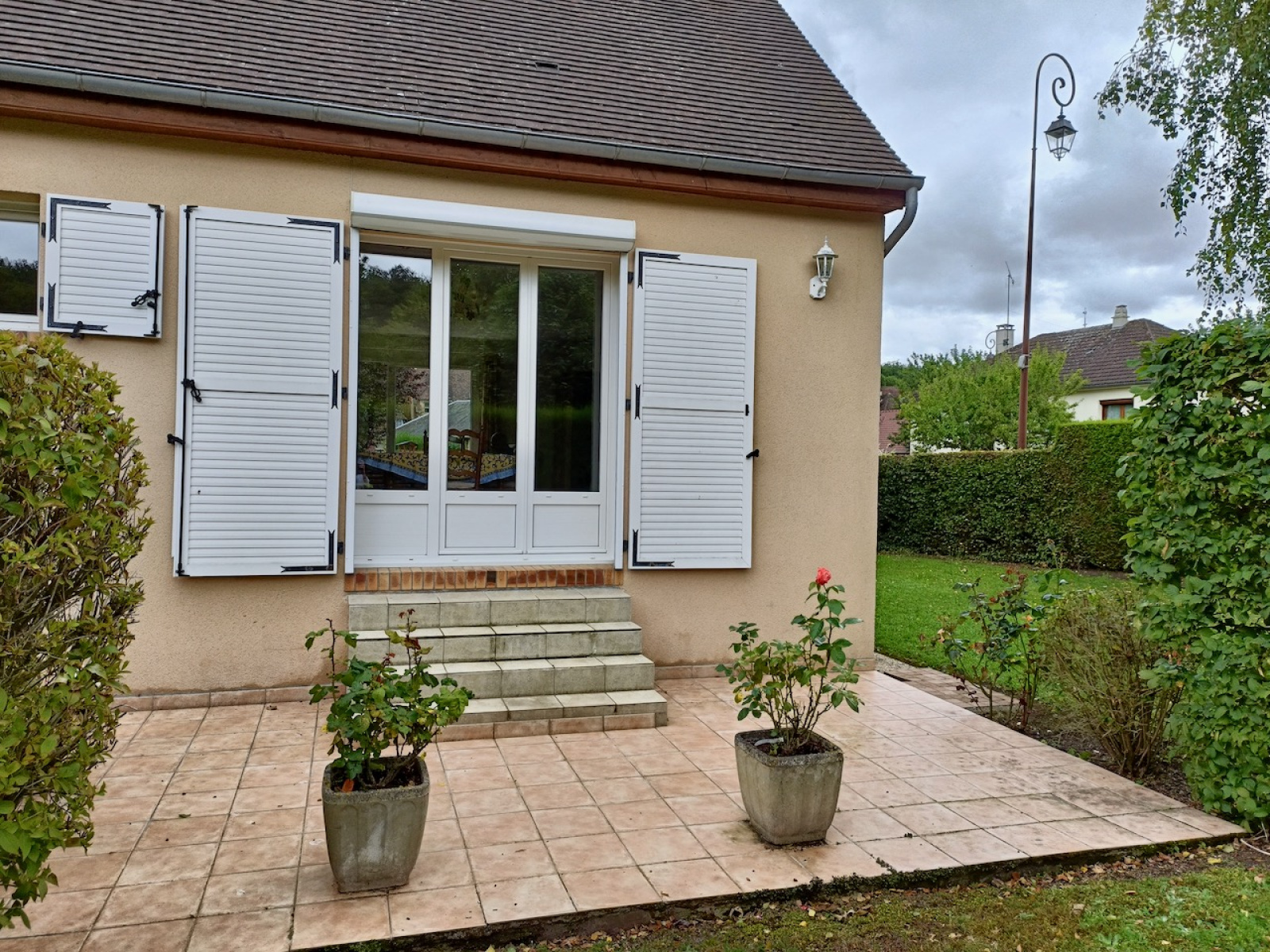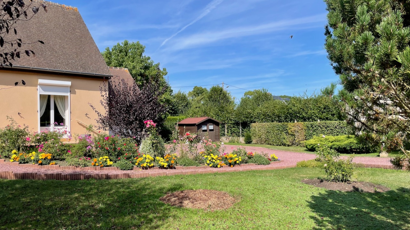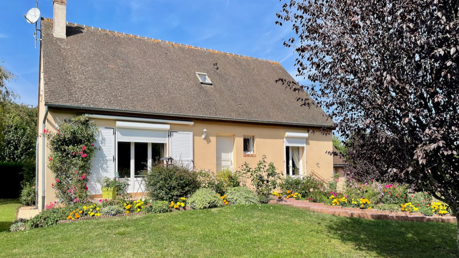 La Ferrière-sur-Risle (27760)Dans le charmant village de La Ferrière sur Risle, proche de ses commerces, construction de 1999 sur 120 m2, en parfait état sur un terrain clos de 1106 m2, avec portail automatisé. La maison comprend au rdc : entrée avec placard s'ouvrant sur un lumineux double séjour de 39 m2 (conduit de cheminée existant) donnant sur la terrasse (store banne électrique), une cuisine équipée, un dégagement vers une chambre de plain pied avec placard, une salle de bain avec placard (douche + baignoire), wc séparés. A l'étage, une pièce palière distribue 2 belles chambres ainsi qu'un cabinet de toilette (pouvant accueillir une douche supplémentaire). Garage attenant avec porte automatisée. Fenêtres double vitrage PVC et volets roulants électriques, chauffage fioul au rdc (chaudière de 2018), électrique à l'étage. Deux terrasses complètent et prolongent la pièce de vie, exposées sud-est et ouest. Dans le jardin, un chalet bois pour ranger les outils et mobilier extérieur. Fibre déployée.