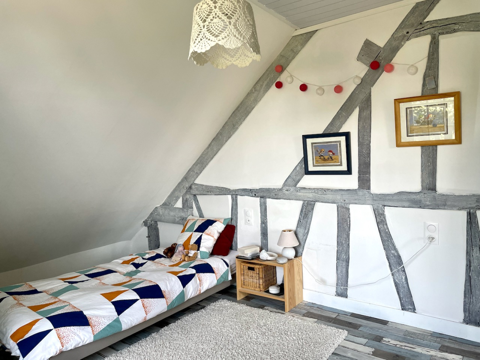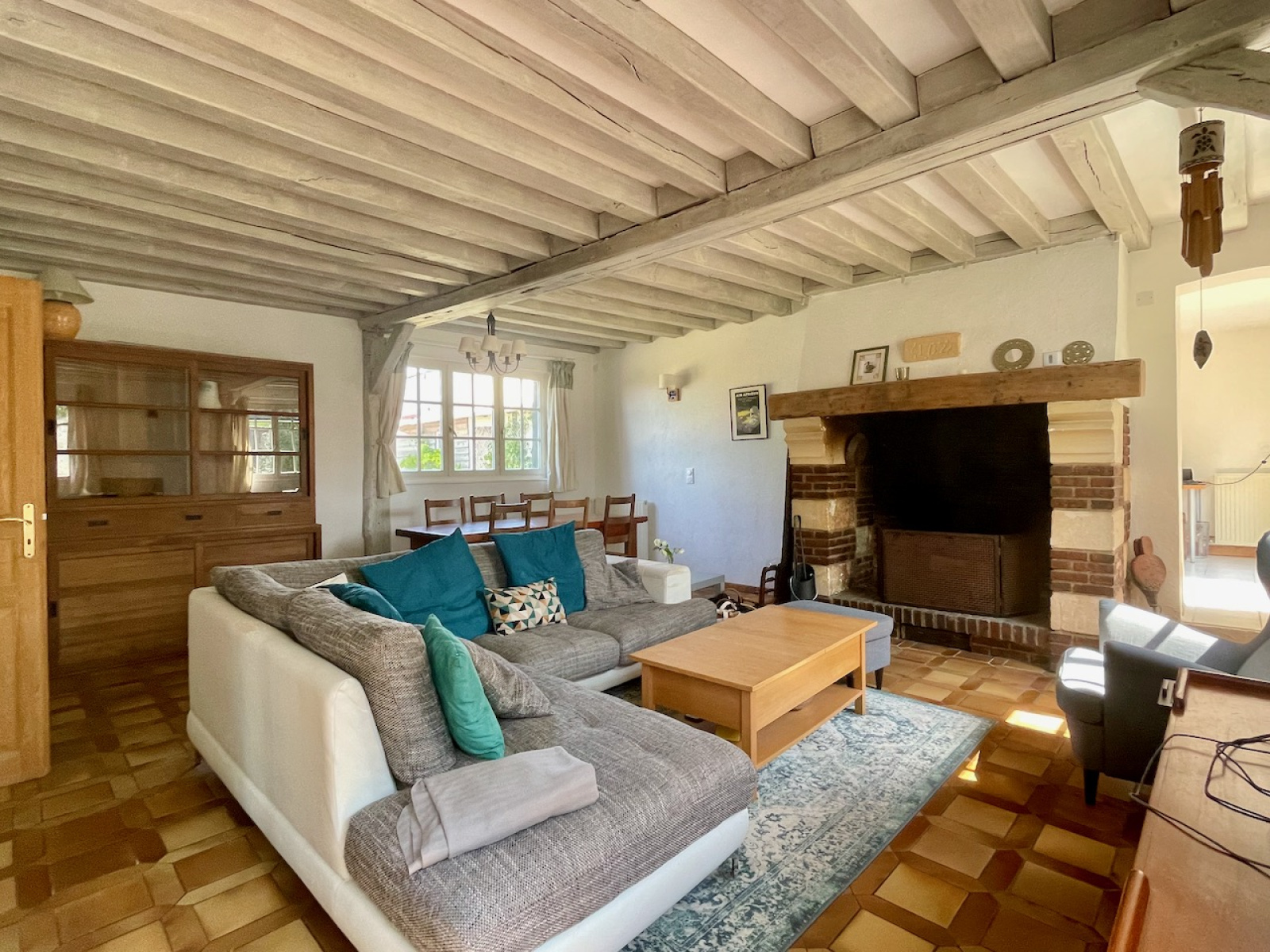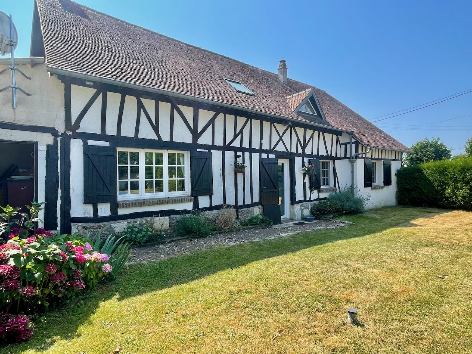 Faverolles-la-Campagne (27190)Dans un village à 5 minutes de Conches et à 1h30 de Paris, au calme, charmante maison normande de 161 m2 offrant de beaux volumes et 5 chambres. Construite sur un terrain clos et arboré de 946 m2 avec une piscine enterrée, la maison se compose au rdc d'une grande entrée distribuant un beau salon lumineux avec cheminée, une cuisine équipée avec accès au jardin, une suite parentale de 20 m2 avec salle d'eau, une seconde chambre, WC séparé et une buanderie-chaufferie. A l'étage, un palier dessert 3 chambres dont une avec balcon, une salle de bains (baignoire et double vasque) et wc séparé.