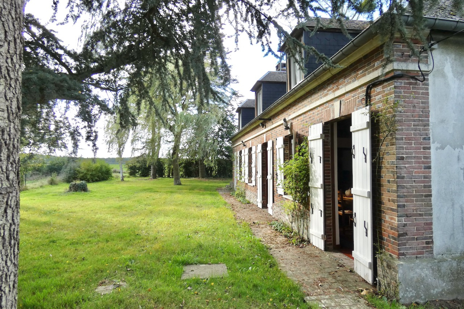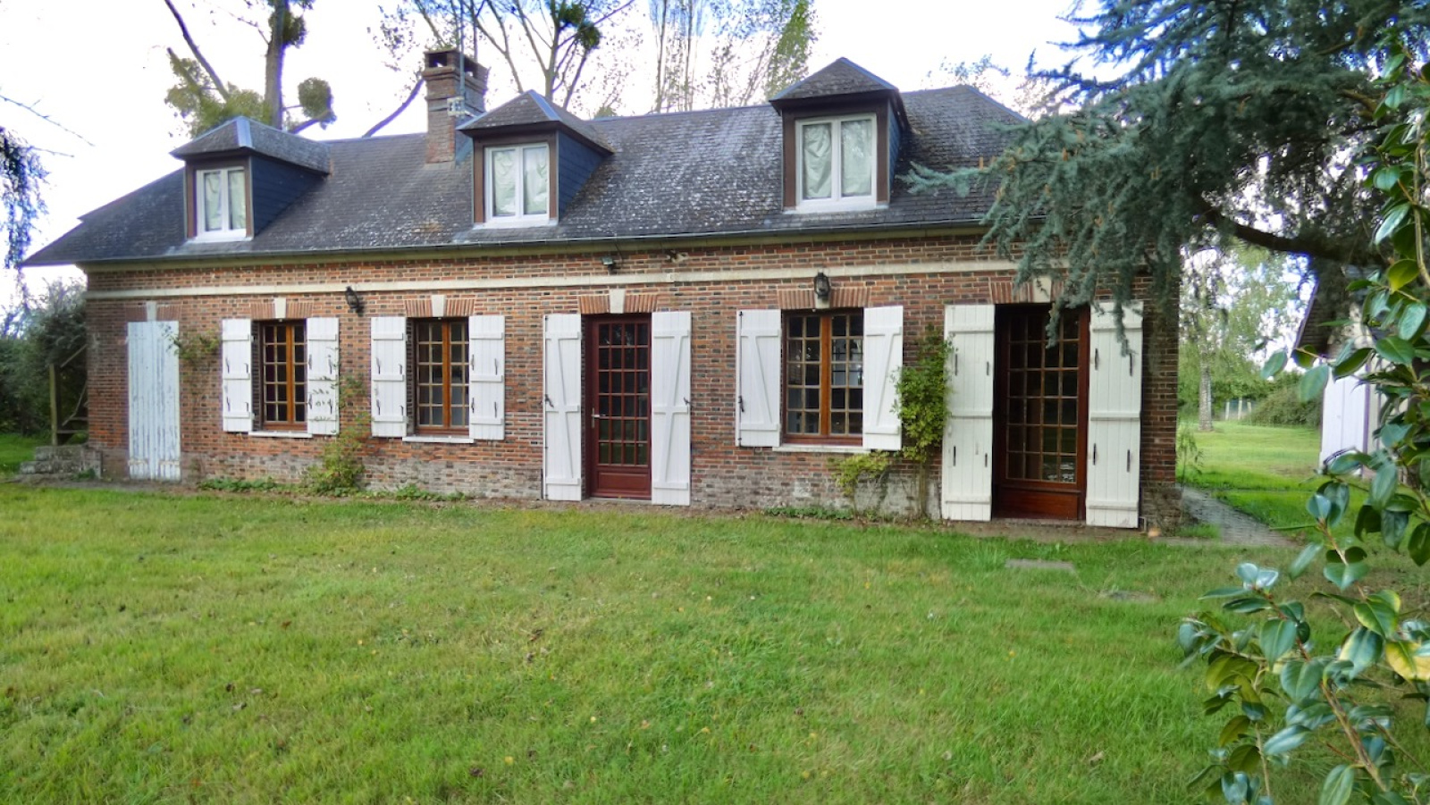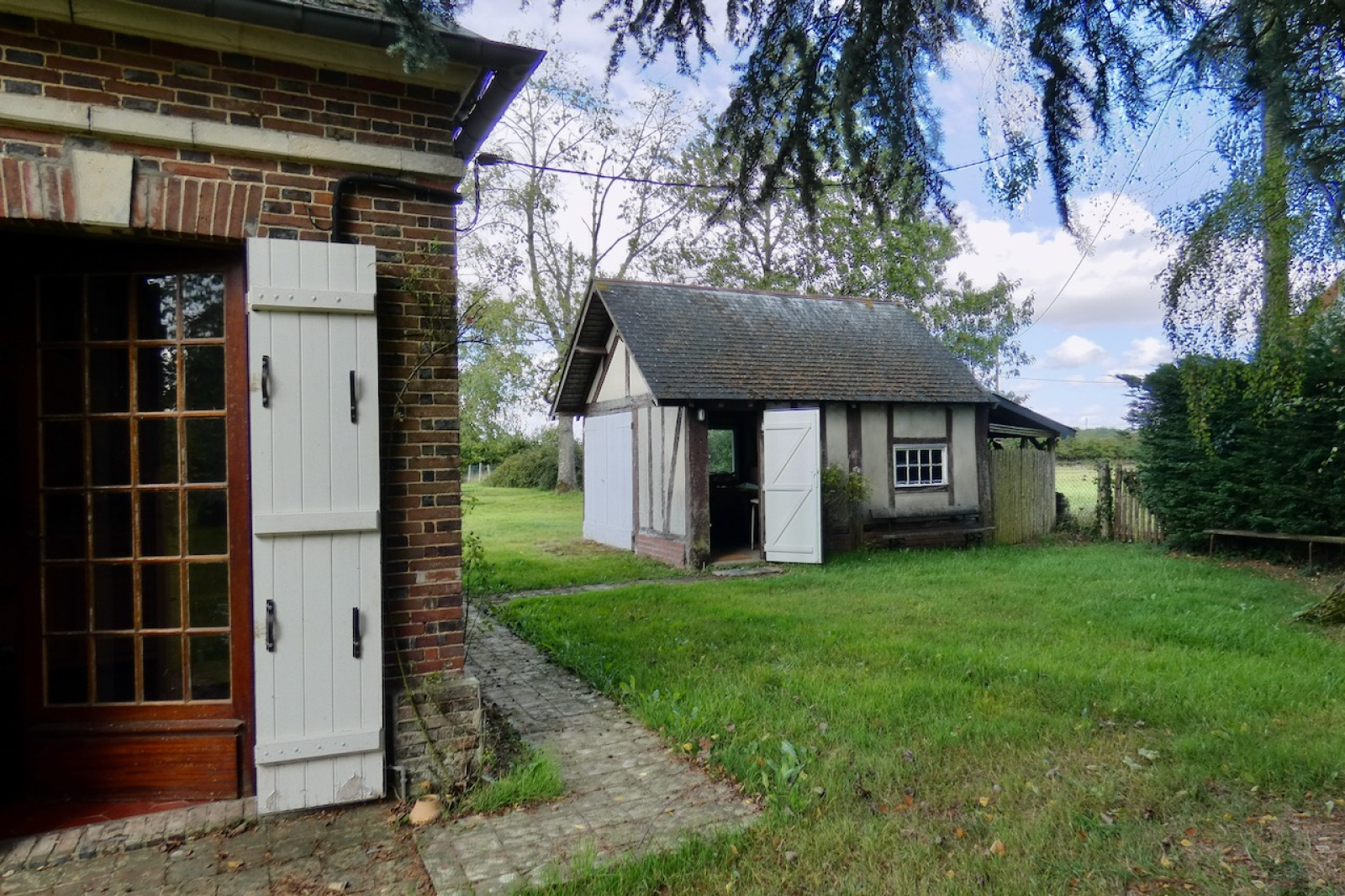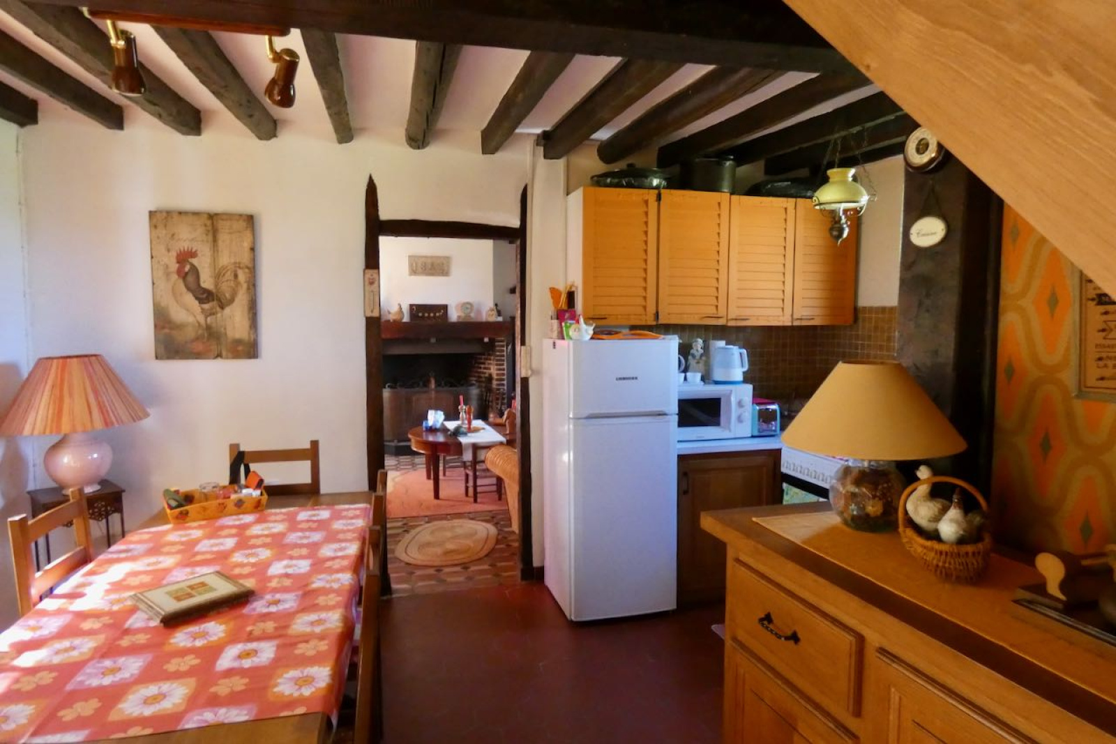 Romilly-la-Puthenaye (27170)Réf 4626. Entre Conches et la Ferrière sur Risle, sur un terrain boisé et clôturé de 2743 m2, longère de 1852 avec 3 chambres. Au rdc, salon traversant avec cheminée, cuisine salle à manger avec accès au jardin, grande chambre et salle d'eau avec WC. A l'étage entièrement parqueté, palier pouvant servir de bureau et 2 chambres en enfilade. Un escalier extérieur dessert une des 2 chambres de l'étage. Toiture ardoises. Simple vitrage au rdc. Double vitrage à l'étage. Assainissement par fosse sceptique. Eau chaude par chaudière gaz de 2012. Carport sur le terrain. Et un garage sur dalle ciment pouvant être aménagé en pièce supplémentaire. Aucun vis à vis, très au calme. Commerces à 5 km et gare axe Paris Caen à 1 km.