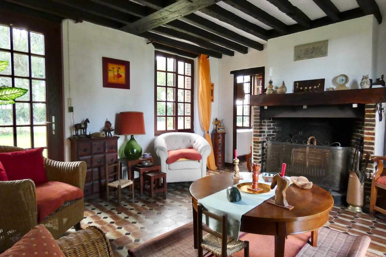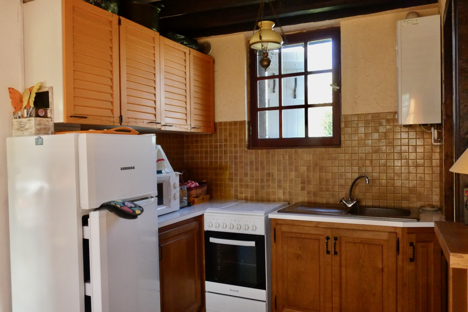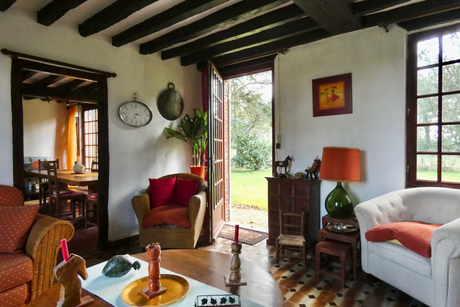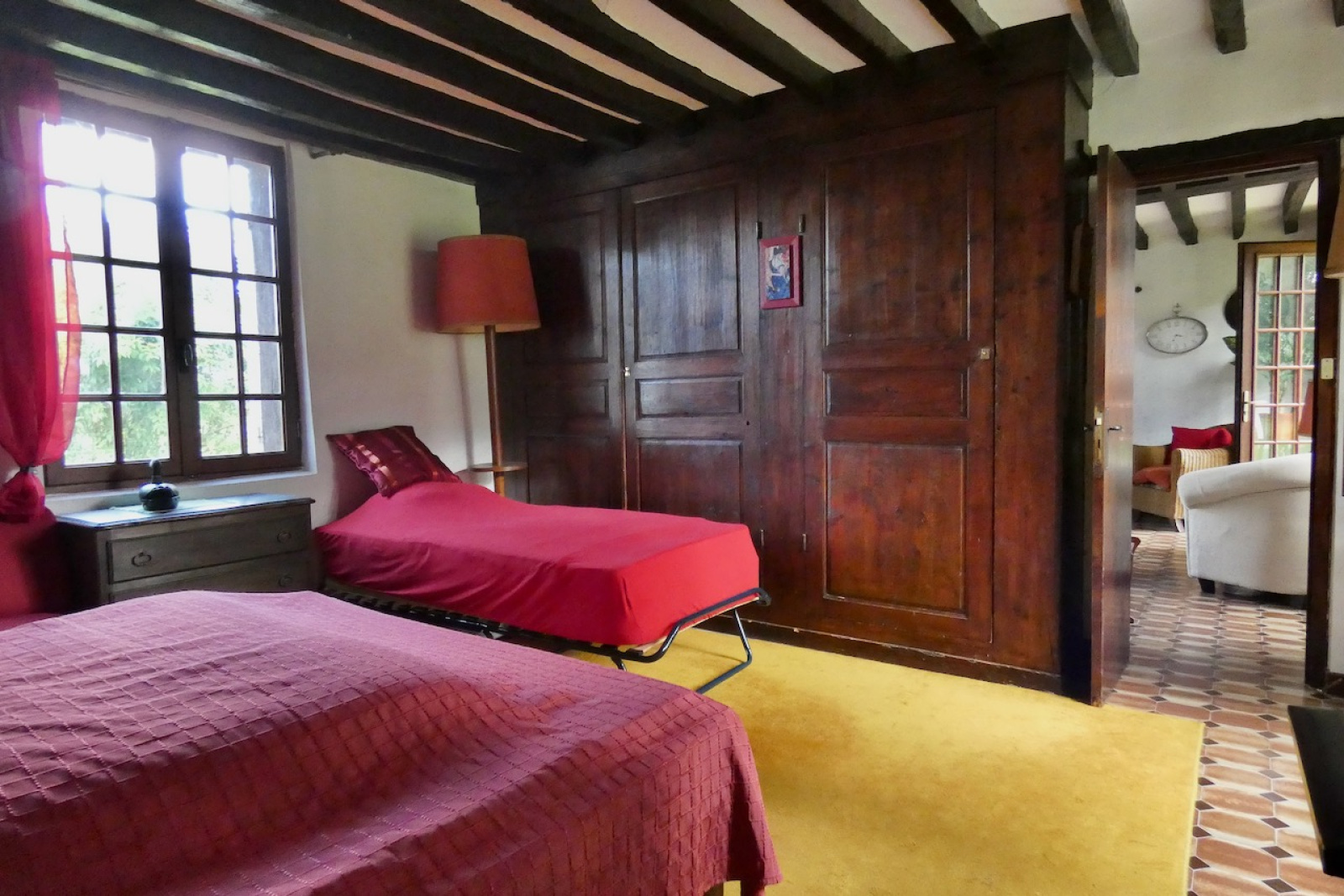 Romilly-la-Puthenaye (27170)Réf 4626. Entre Conches et la Ferrière sur Risle, sur un terrain boisé et clôturé de 2743 m2, longère de 1852 avec 3 chambres. Au rdc, salon traversant avec cheminée, cuisine salle à manger avec accès au jardin, grande chambre et salle d'eau avec WC. A l'étage entièrement parqueté, palier pouvant servir de bureau et 2 chambres en enfilade. Un escalier extérieur dessert une des 2 chambres de l'étage. Toiture ardoises. Simple vitrage au rdc. Double vitrage à l'étage. Assainissement par fosse sceptique. Eau chaude par chaudière gaz de 2012. Carport sur le terrain. Et un garage sur dalle ciment pouvant être aménagé en pièce supplémentaire. Aucun vis à vis, très au calme. Commerces à 5 km et gare axe Paris Caen à 1 km.