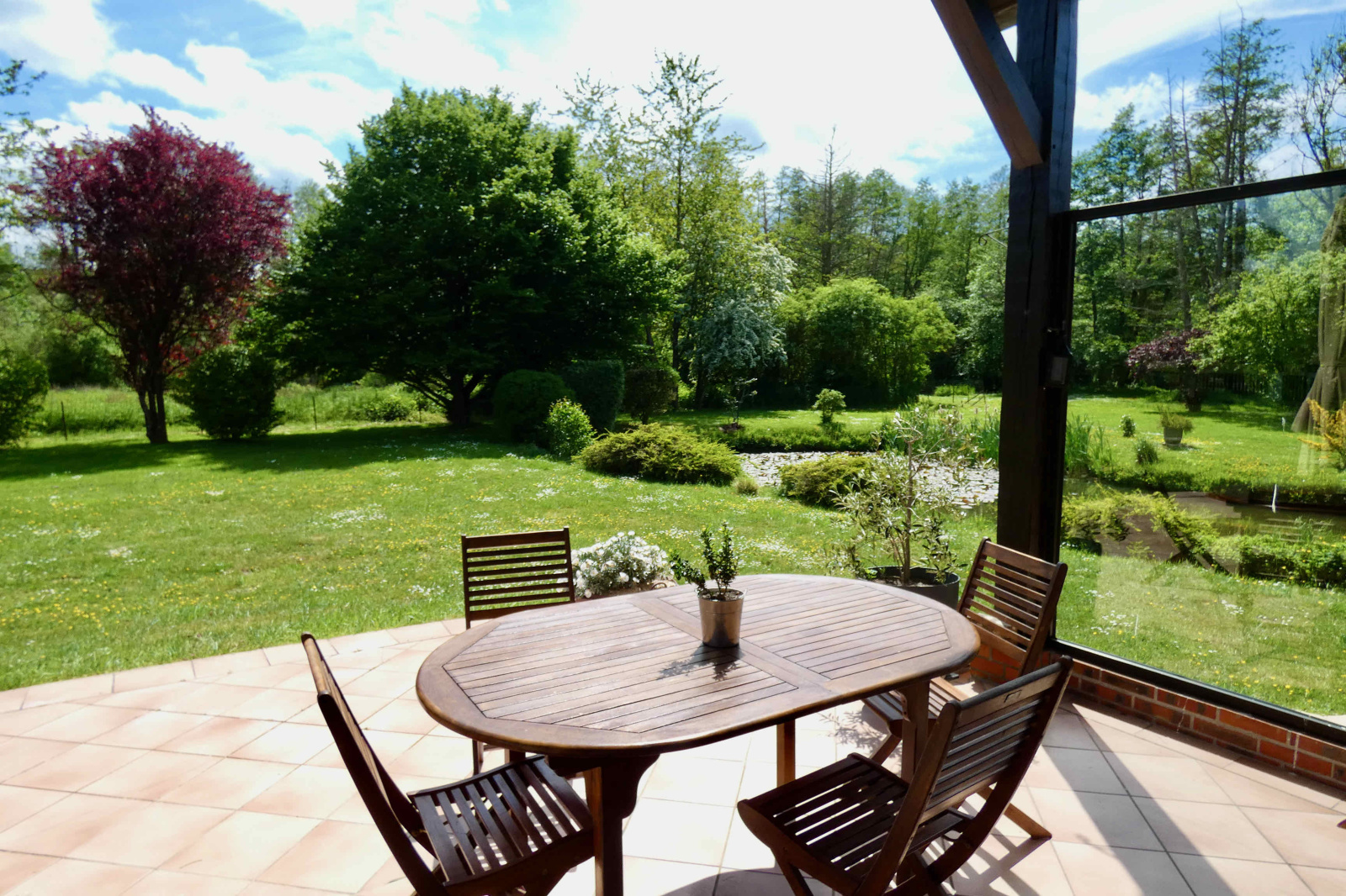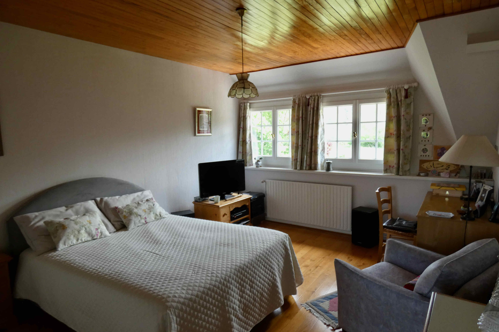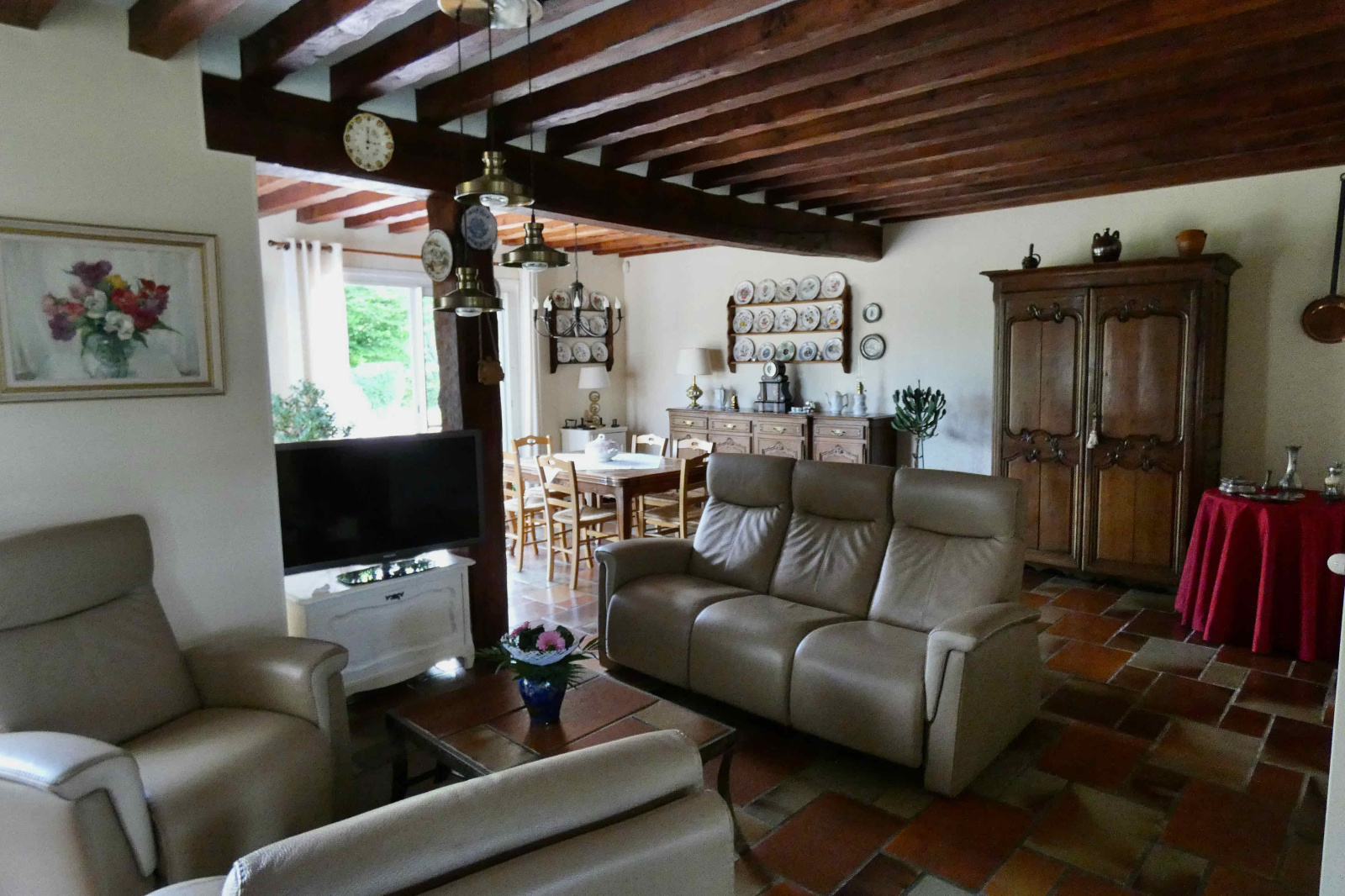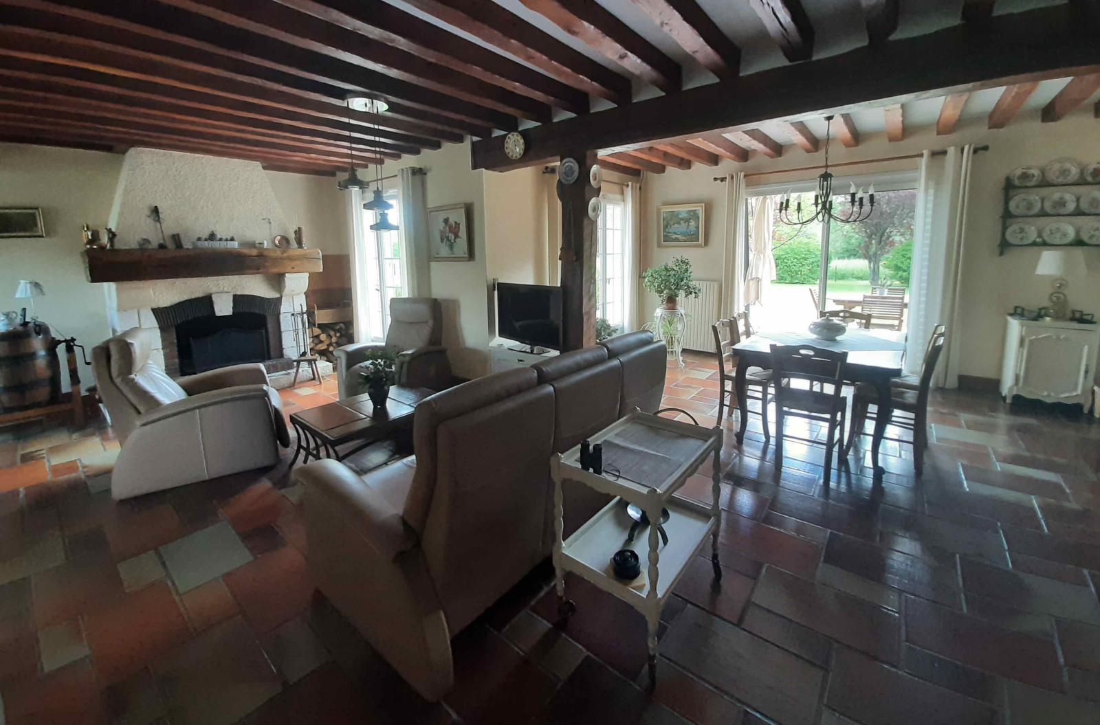 Dans un evironnement de qualité, à quelques minutues d'Evreux, maison traditionelle normande. Son parc, de 4335 m2 bénéficie d'un bord de rivière et d'un joli plan d'eau. La maison, sur 2 niveaux est composée au rez-de-chaussée d'une cuisine équipée, un séjour double avec cheminée, un bureau, un wc, une buanderie et un double garage en pignon. A son étage, un vaste dégagement distribue 4 chambres, une salle de bains avec douche et baignoire, un dressing et une salle d'eau avec wc. Grenier au dessus possiblement aménageable. En dépendances se trouvent un triple appenti d'environ 50 m2 ainsi qu'un chalet.