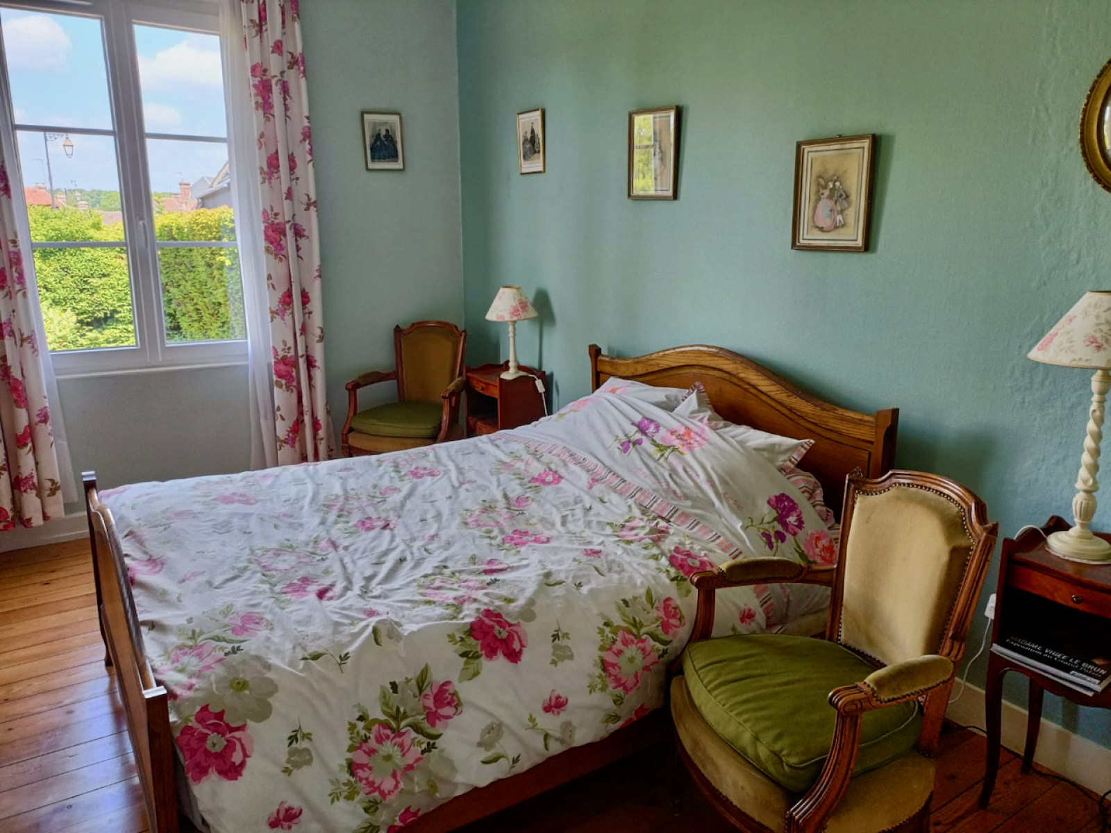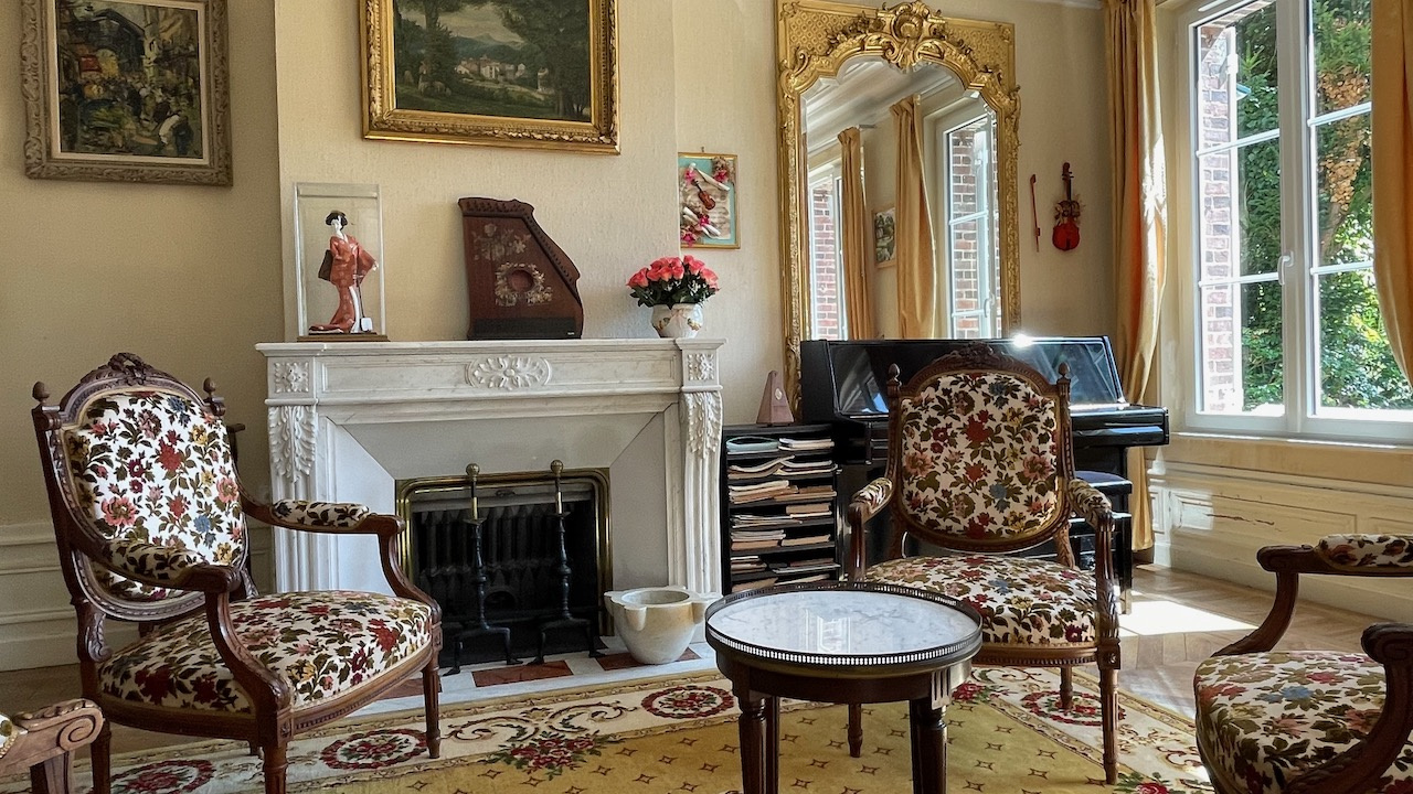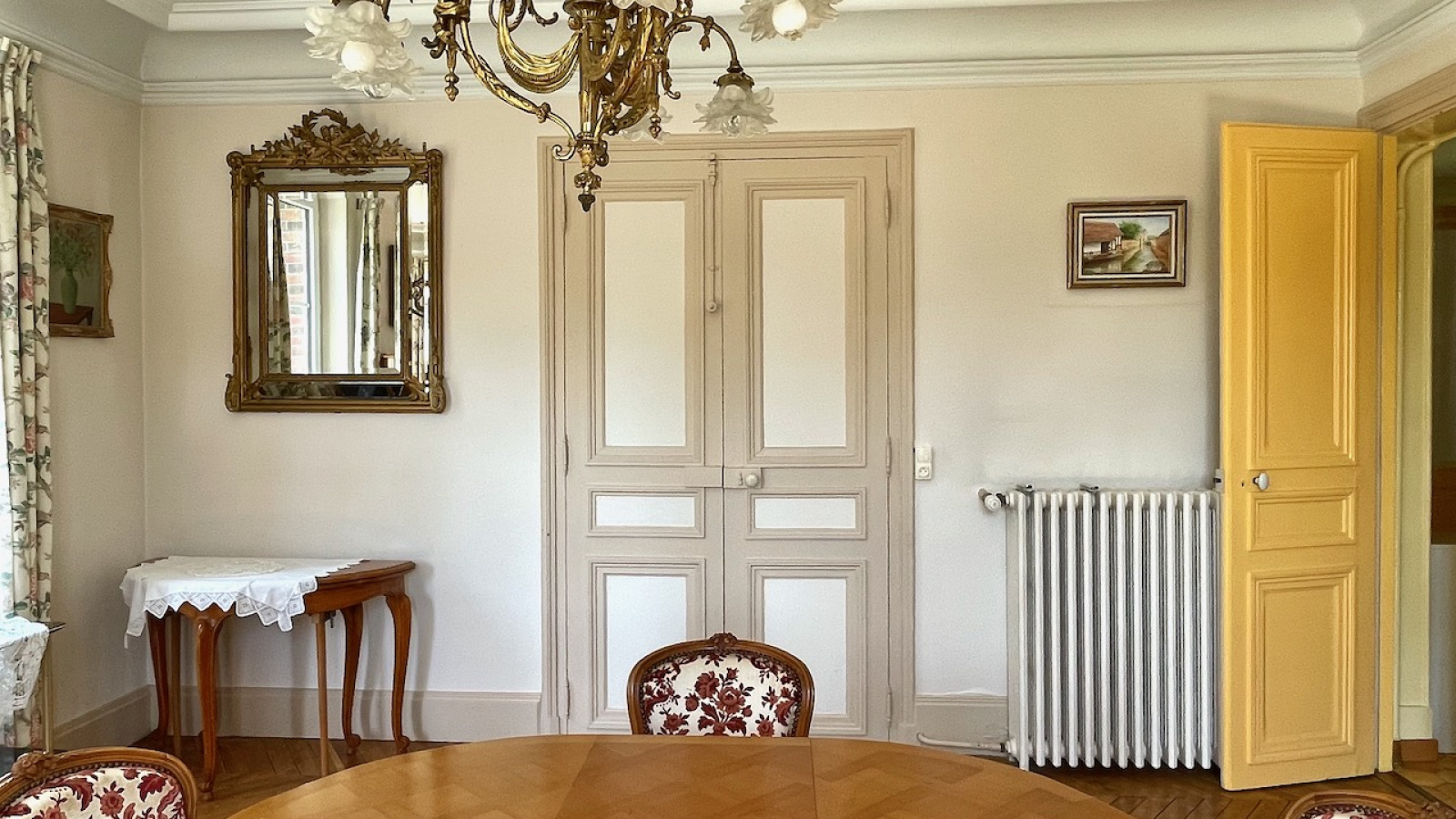 Rdc: entrée, cuisine, arrière-cuisine, séjour parqueté et cheminée, salon parqueté et cheminée avec fenêtre en saillie donnant sur le parc, pièce pouvant avoir usage de chambre, WC.