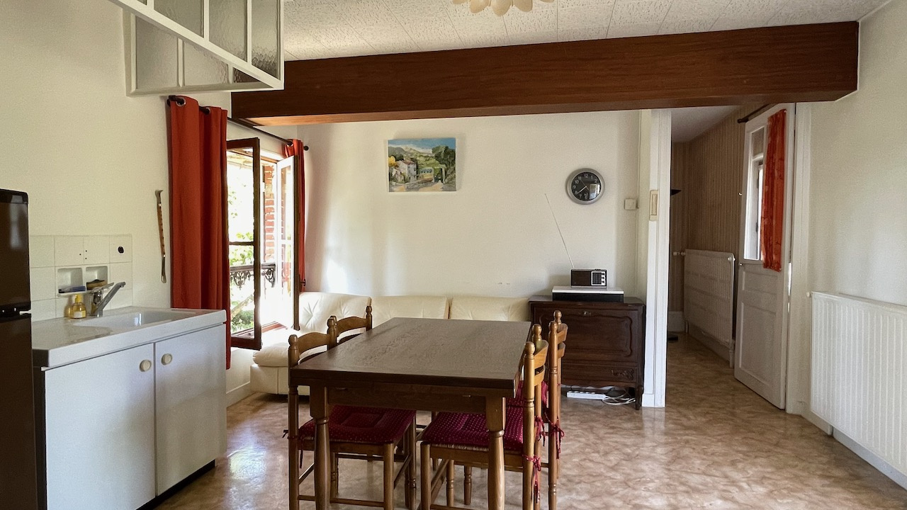 La maison d'amis offre 45 m2 habitables et comprend une cuisine, un salon, une chambre et une salle d'eau avec WC. Chauffage fioul, assainissement individuel. Cave en sous-sol.