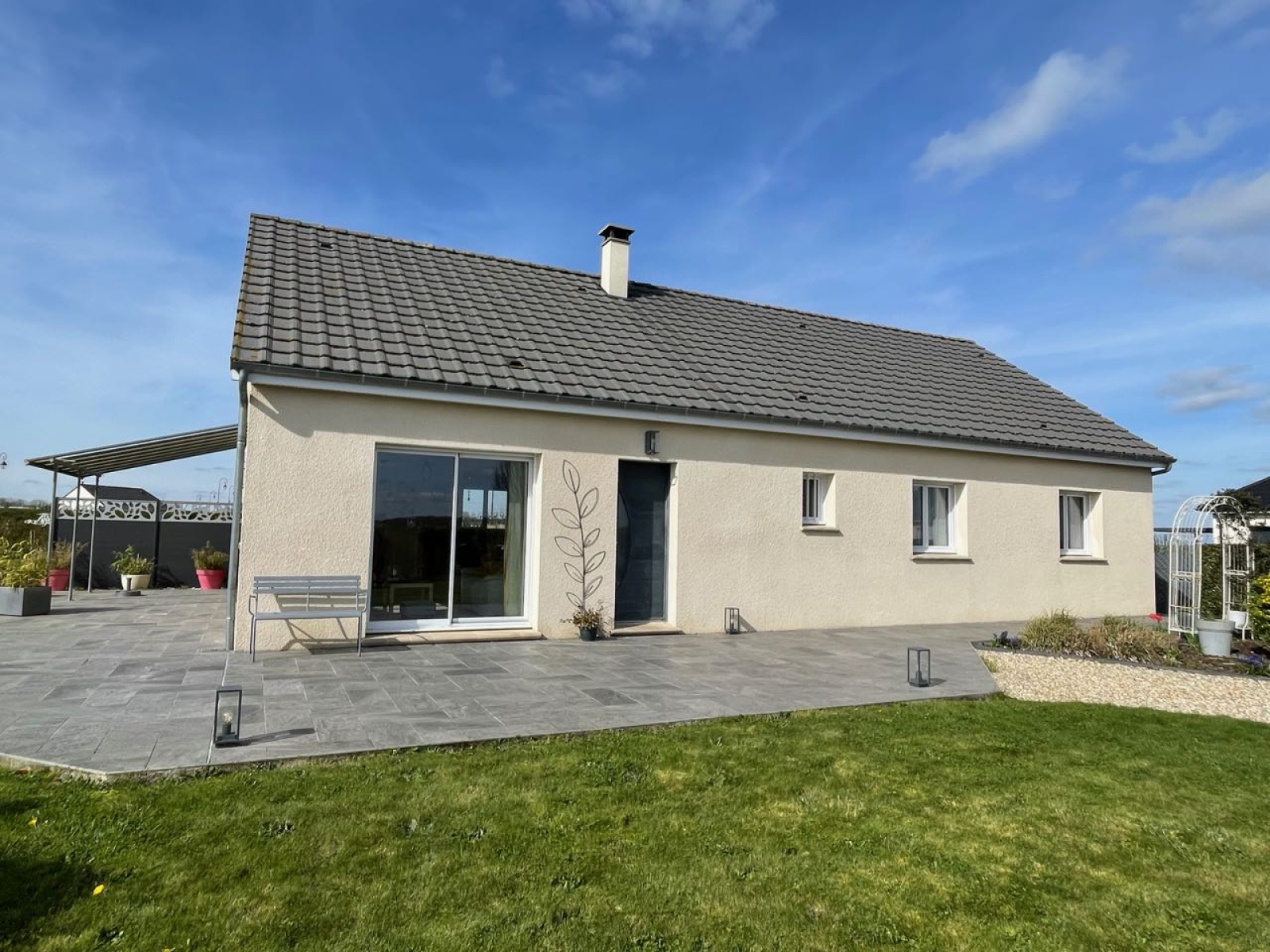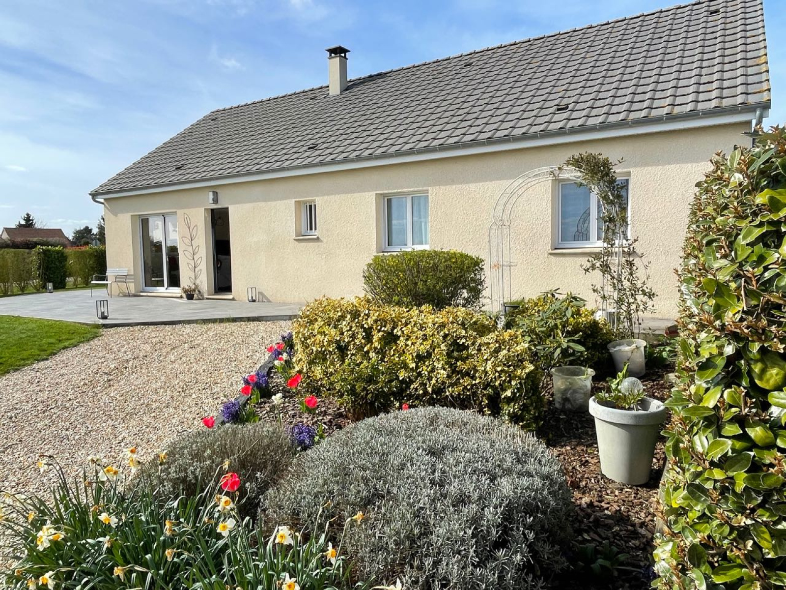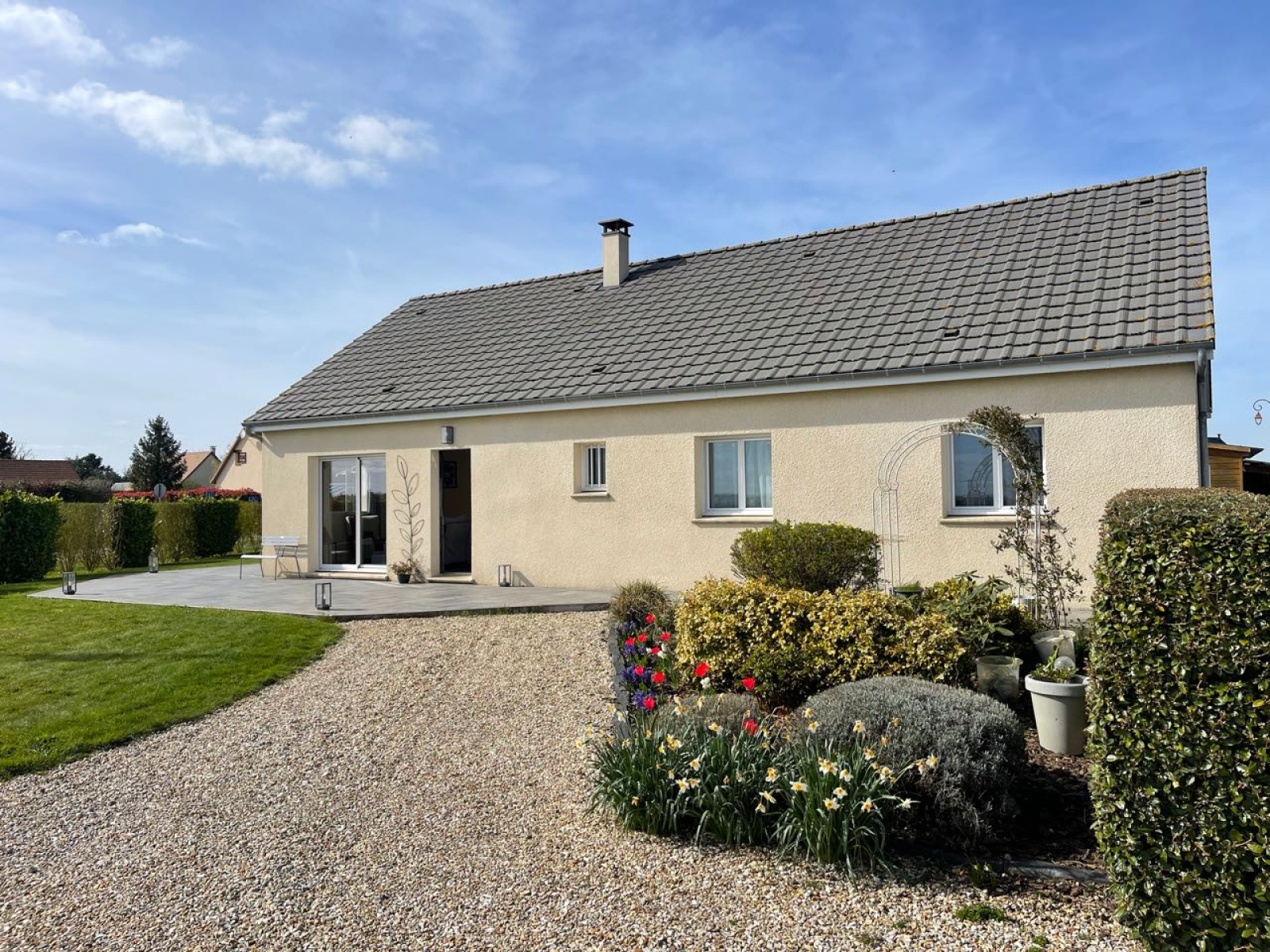 Le Fresne (27190)REF 4664 Sélection de l'agence St Clair.Pavillon de plain pied en parfait état sur un terrain de 1201m2 avec garage. Cuisine ouverte sur le salon de 45 m2 avec poêle à bois, 4 chambres, salle d'eau, wc, chauffage au sol.