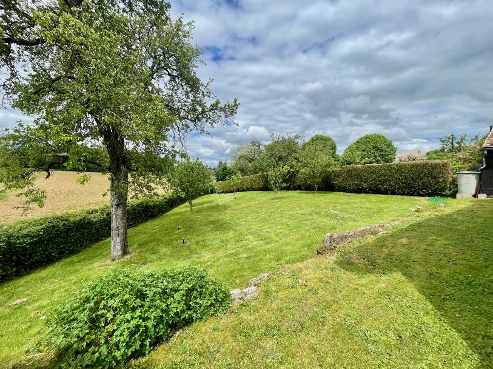 Sur le terrain clos doté de plusieurs fruitiers, un bûcher et remise couverts en petites tuiles, un bassin et une terrasse sous pergola complètent l'extérieur. Fibre déployée.