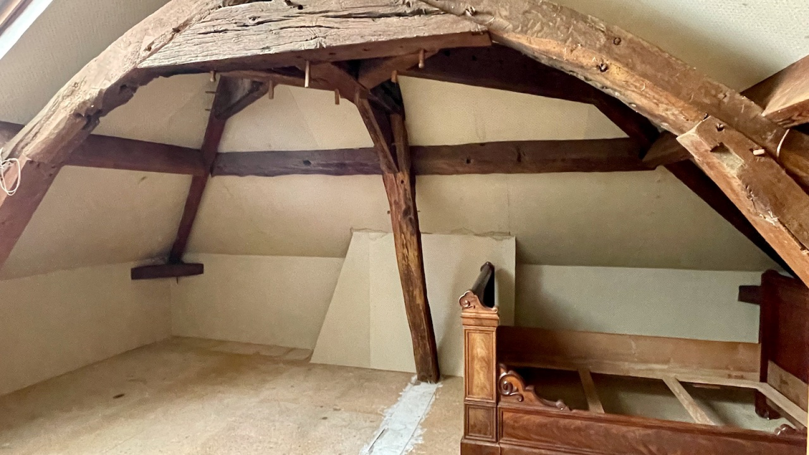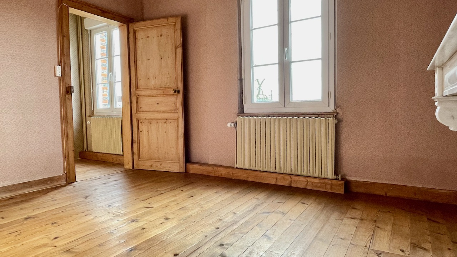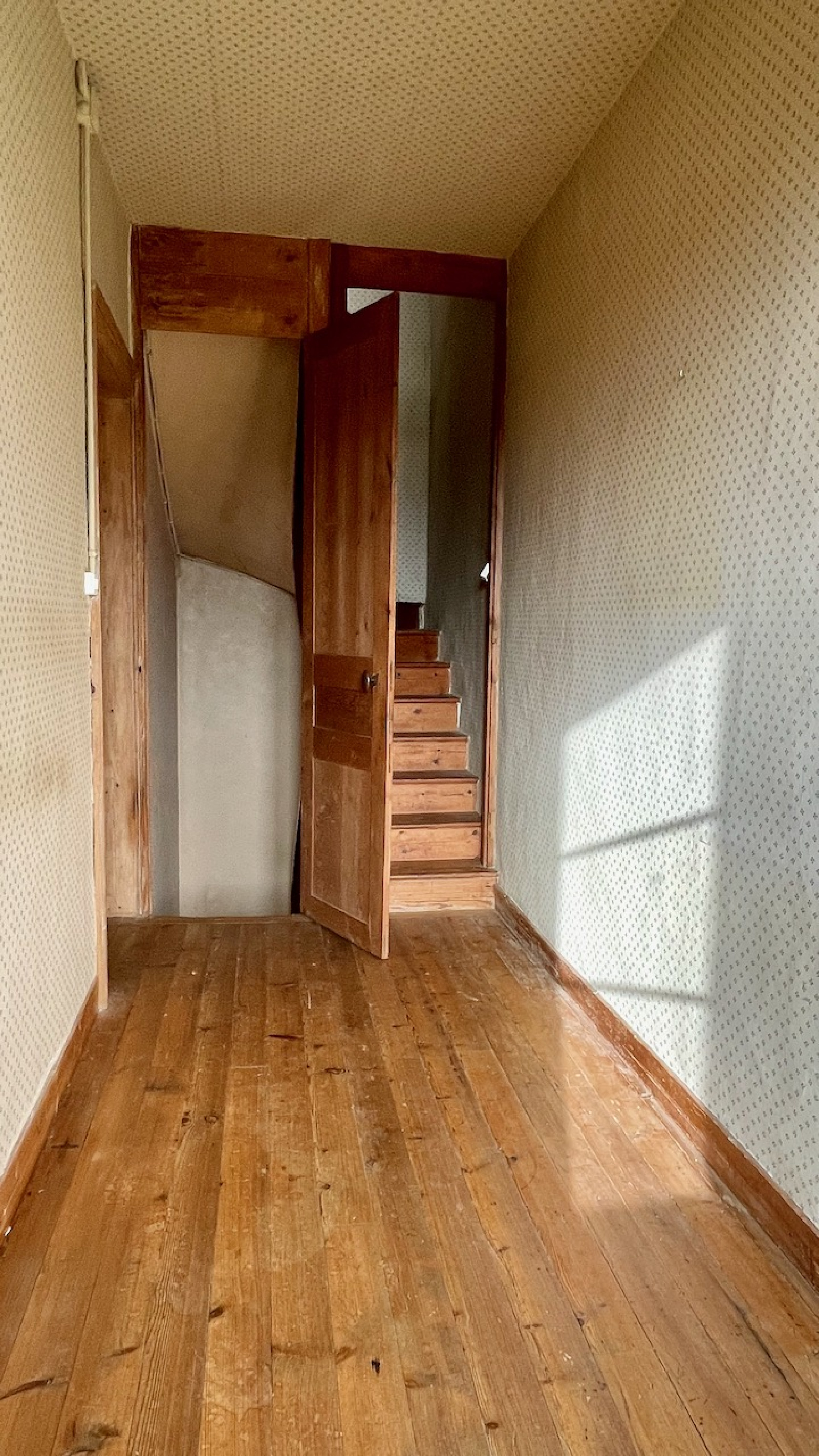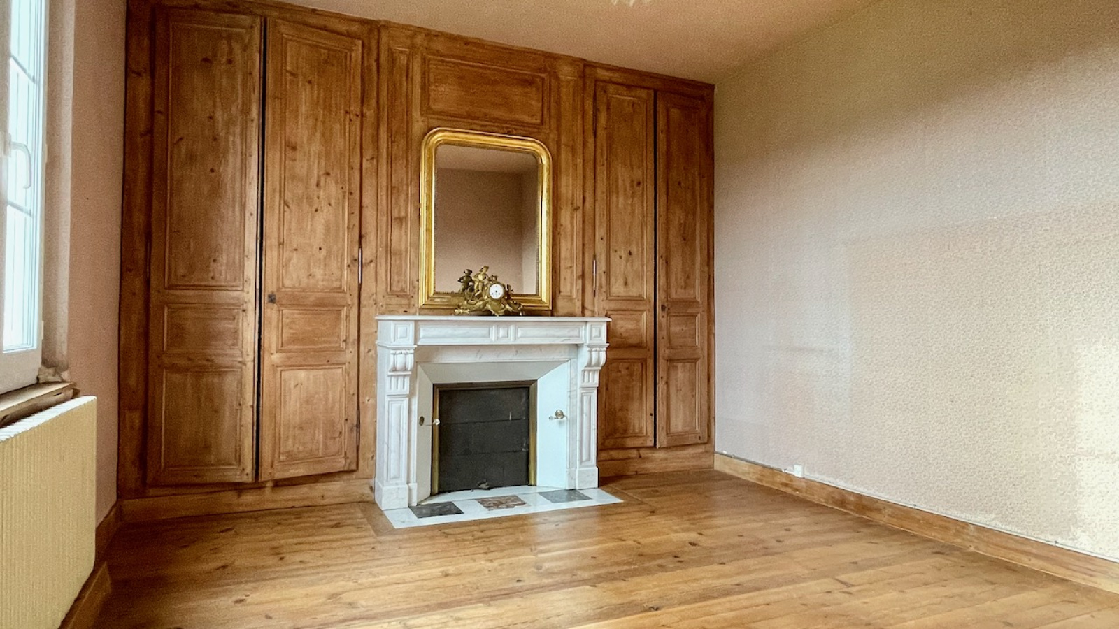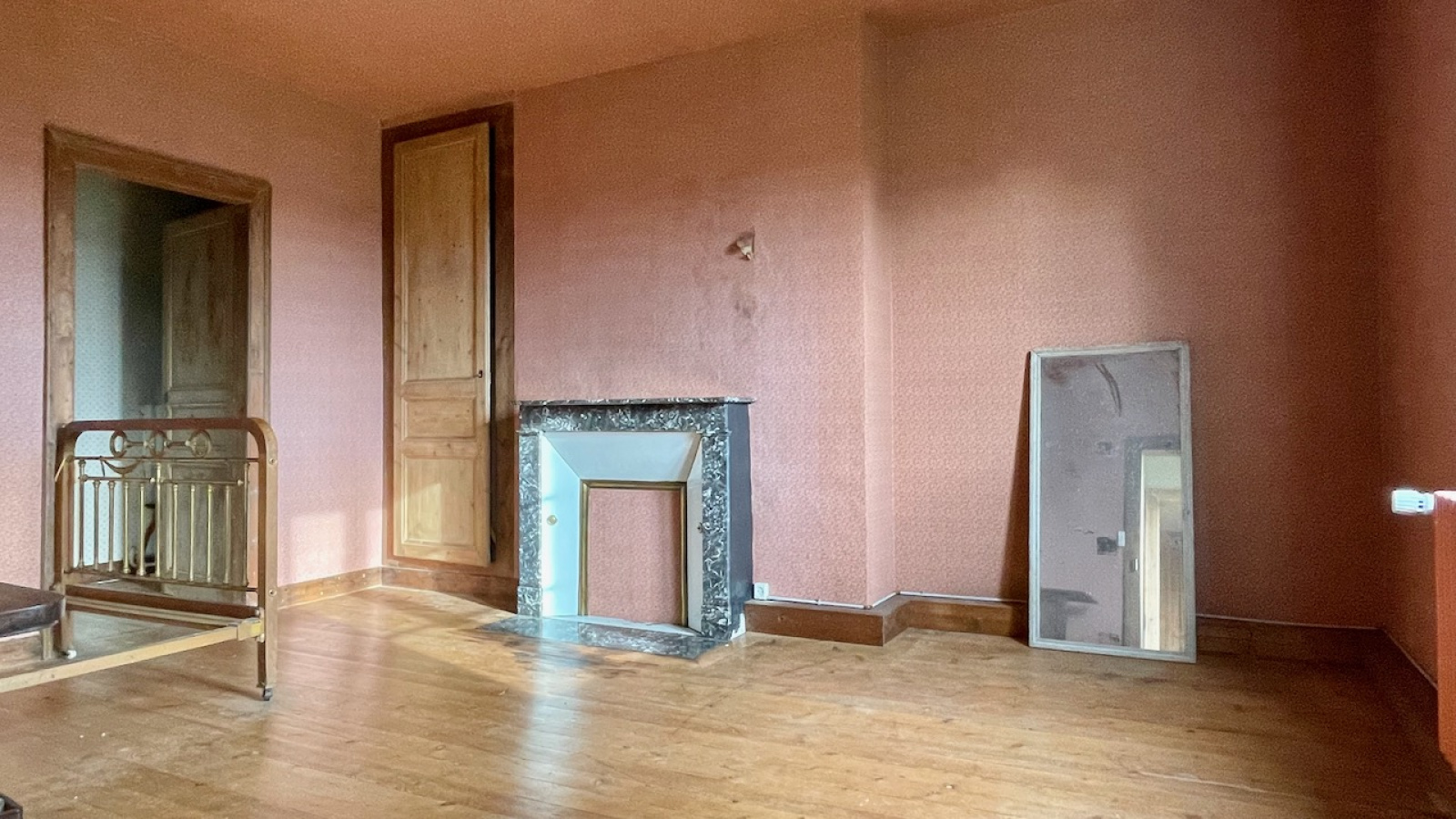 La maison de maître s'ouvre sur une entrée avec escalier central, cuisine aménagée, salle à manger et un salon disposant chacun d'éléments authentiques (parquets, boiseries, cheminée), un bureau, wc séparé, chaufferie-buanderie. Au 1er étage un hall parqueté distribue 3 chambres (parquets, cheminées) et un wc séparé. Le second étage, découvre la belle charpente et peut permettre deux autres chambres. Chauffage central au fioul, assainissement individuel, couverture en ardoises.