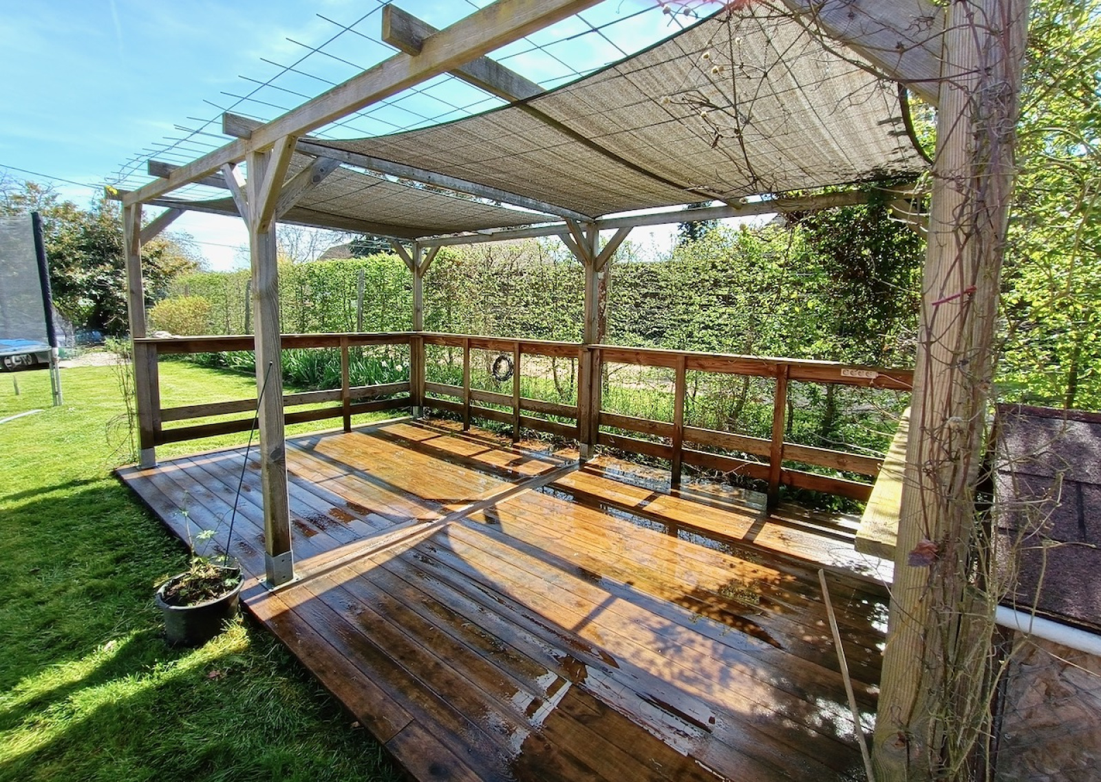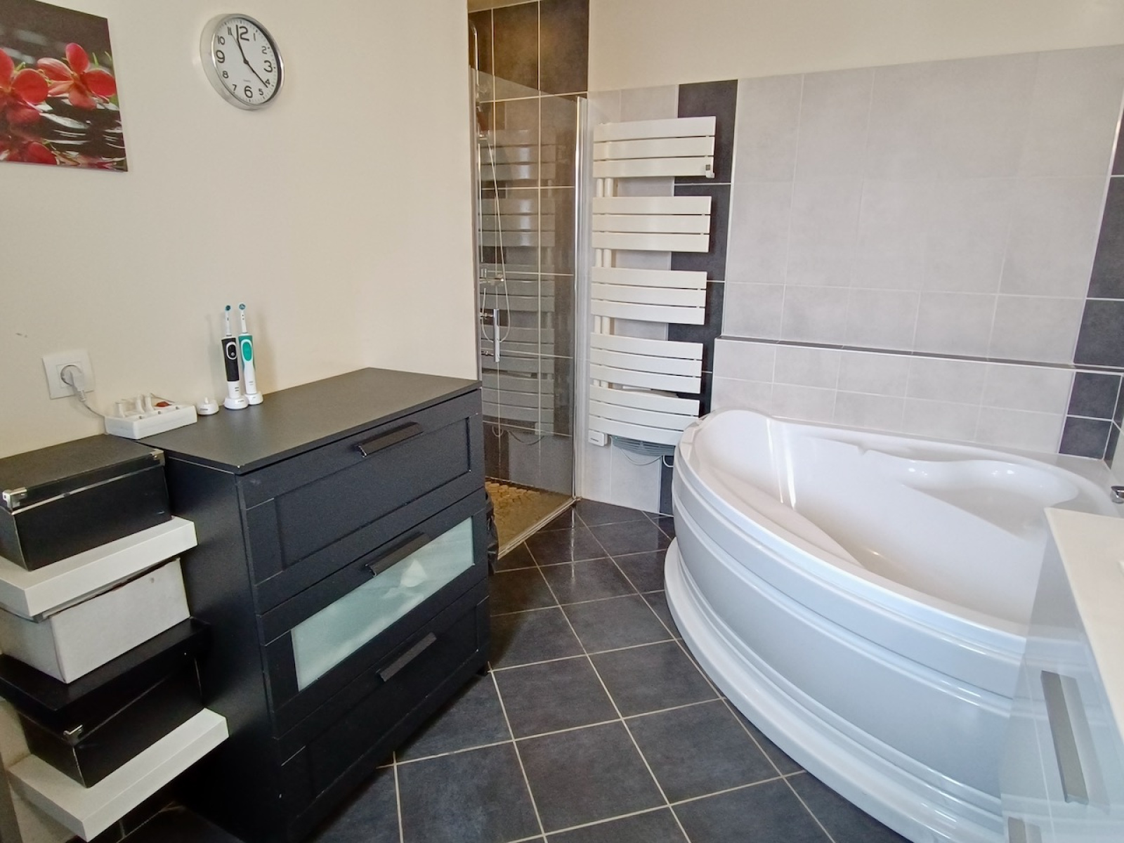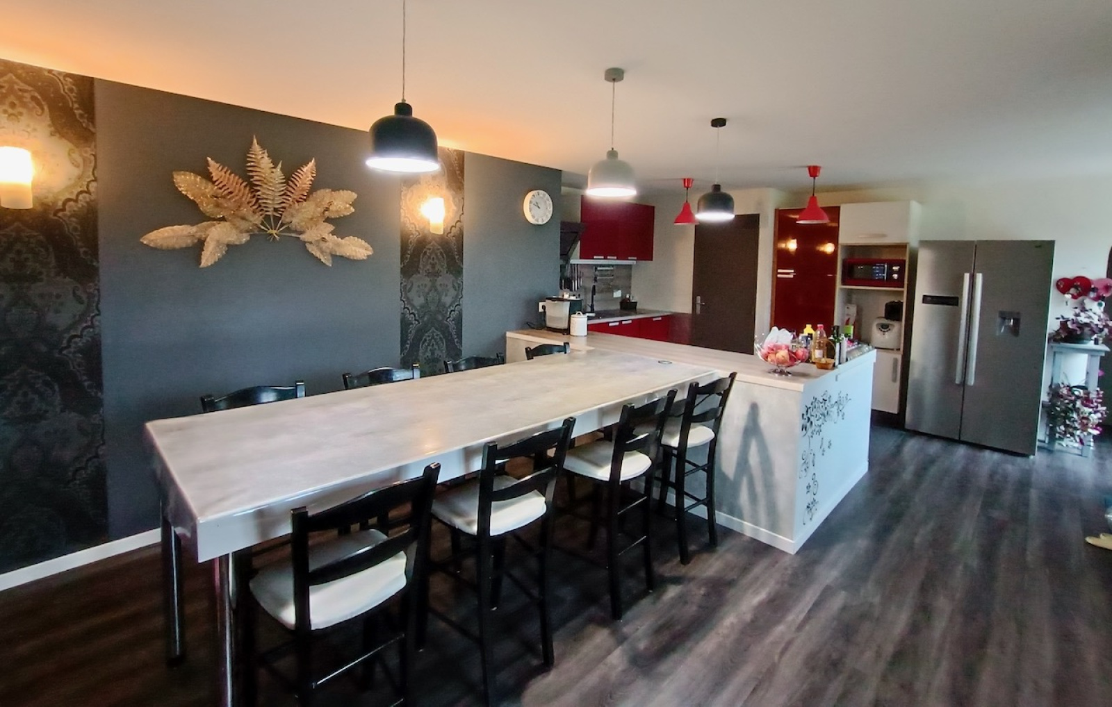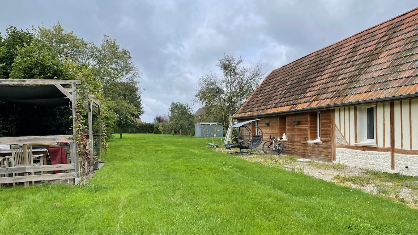 Bémécourt (27160)Située à 3 km de Breteuil, longère rénovée de 7 pièces sur un terrain clos de 1891 m2. Couverte en tuiles, la maison est exposée plein sud et sans vis à vis. Elle se compose d'une pièce de vie lumineuse de plus de 50 m2 avec salon cathédrale et poêle à granulés, une cuisine ouverte toute équipée, une buanderie, une salle de bains avec baignoire, douche, double vasque et Wc séparé. Un couloir dessert 4 chambres dont une suite avec dressing aménagé. Une pièce en mezzanine surplombant le salon peut accueillir une salle de jeux, bureau ou chambre d'amis. Chauffage par poêle à granulés. Double vitrage PVC sur l'ensemble. DPE C. Assainissement individuel aux normes. Fibre raccordée. Attenante à la maison, une pièce raccordée en eau et électricité peut accueillir un atelier ou une chambre indépendante. De plus, une remise sur dalle béton permet du stockage supplémentaire. Sur le terrain, une terrasse en bois avec pergola, un abri de jardin et nombreux fruitiers. Ecole primaire à pied. Gare de Verneuil (axe Paris Montparnasse) à 14 km.